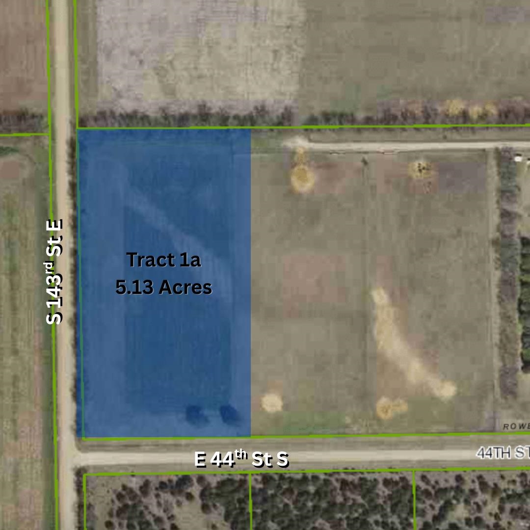 - Directions: Traveling South on S 143rd St E, cross over E 39th St S & travel 0.6 miles, turning East on E 44th St S. Property will be on N side of the road. (Tract 1a is the 5 acre lot closest to 143rd St.)