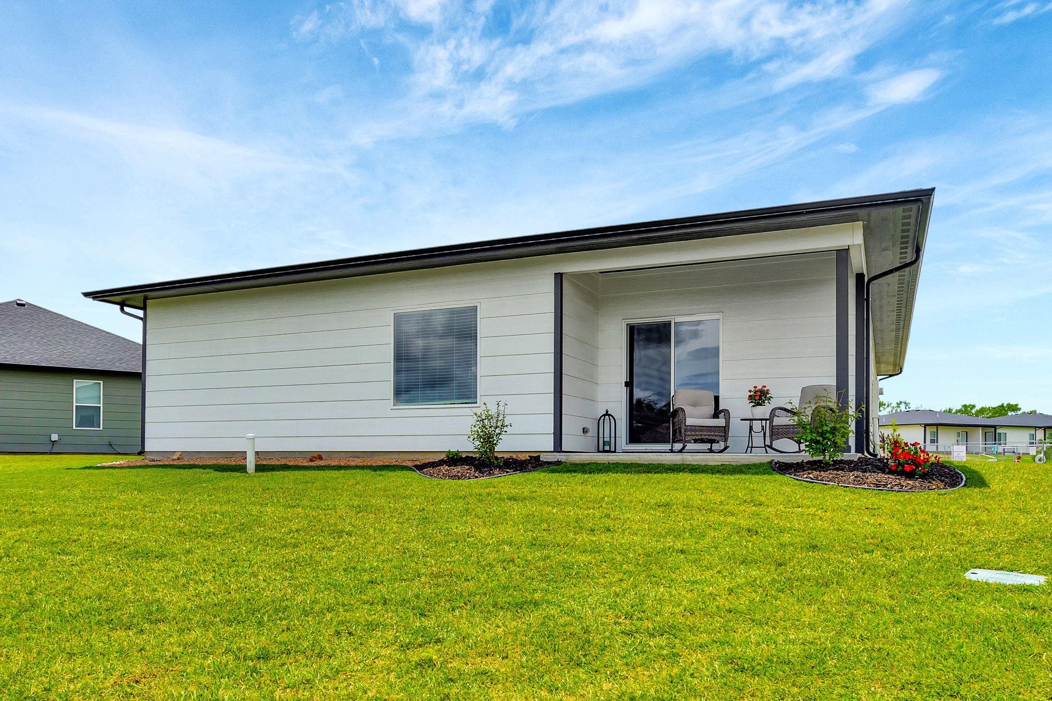 - Exterior Amenities: Guttering - ALL, Sprinkler System, Zero Step Entry, Frame w/Less than 50% Mas