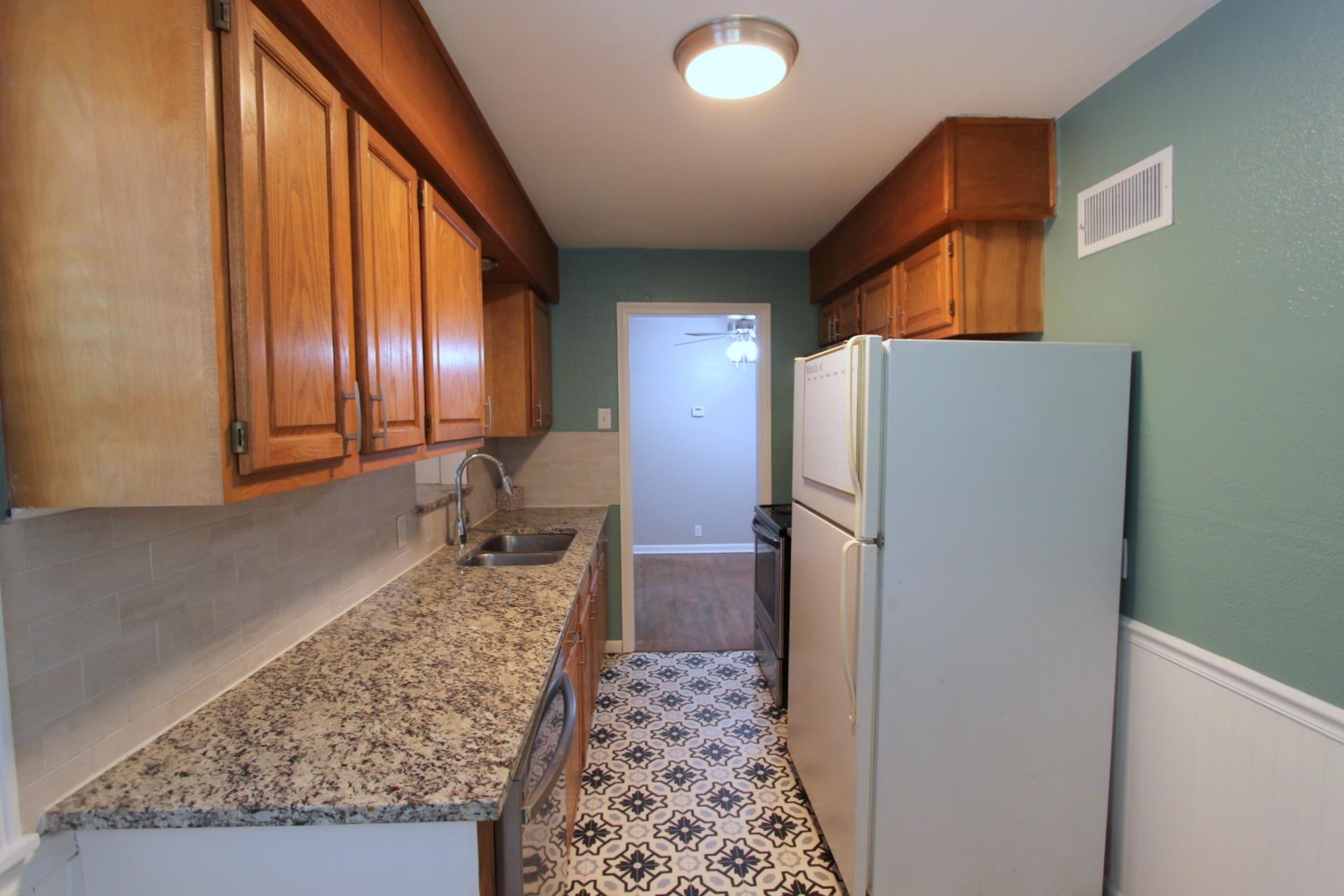 - Description: This beautifully updated ranch-style brick home in SE Wichita has hardwood flooring in the living room, formal dining room, and both bedrooms. The kitchen has granite countertops, new laminate flooring, and comes with appliances. There's a large family room/den at the back of the house with a door that leads to the new backyard patio. The laundry room is located by the attached garage and can be accessed through the kitchen. The bathroom is located near the bedrooms and has a tub/shower combo. The spacious fenced backyard has a patio and is ready for your outdoor cook-outs, activities, or pets. Call today to schedule your showing appointment. Show all description