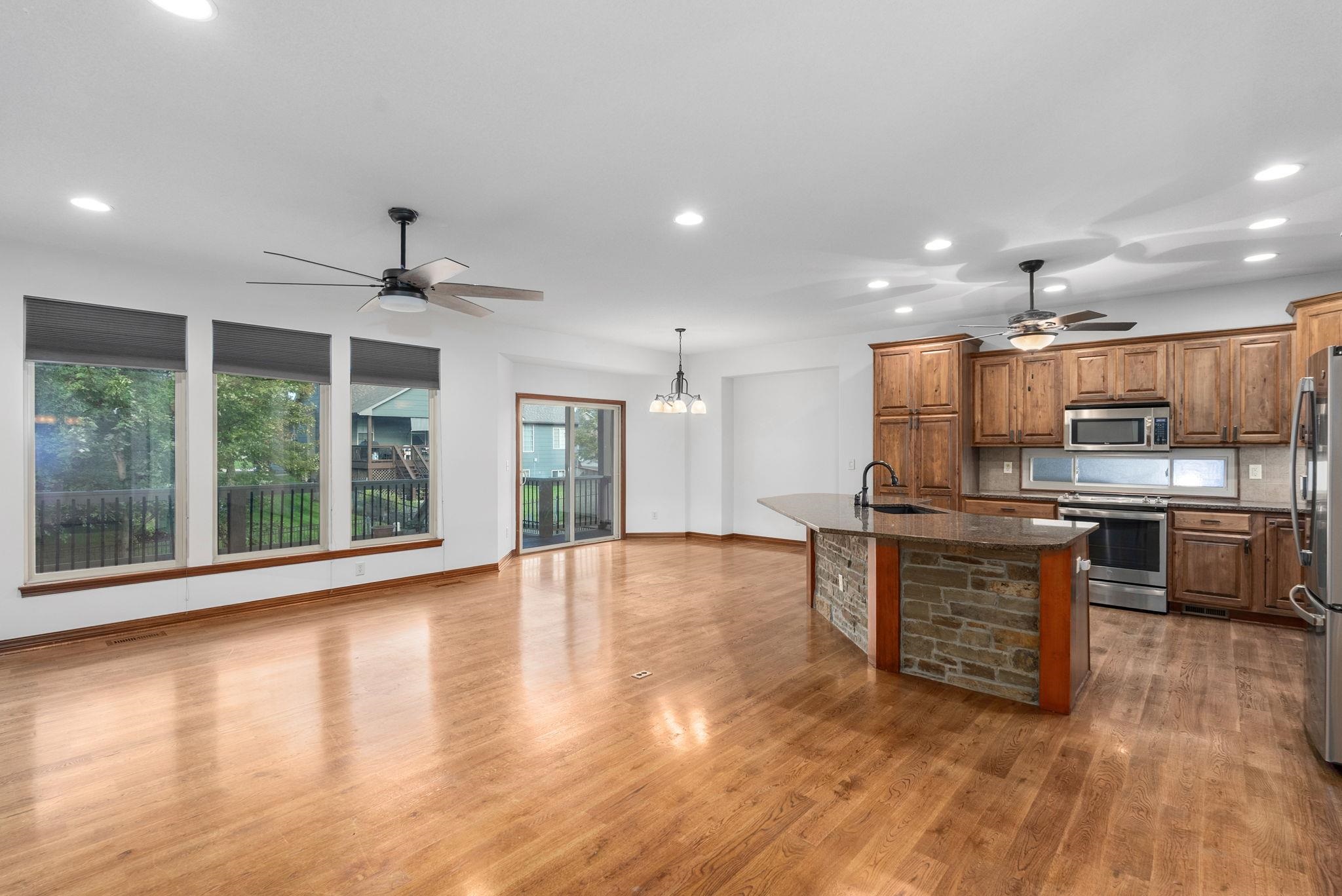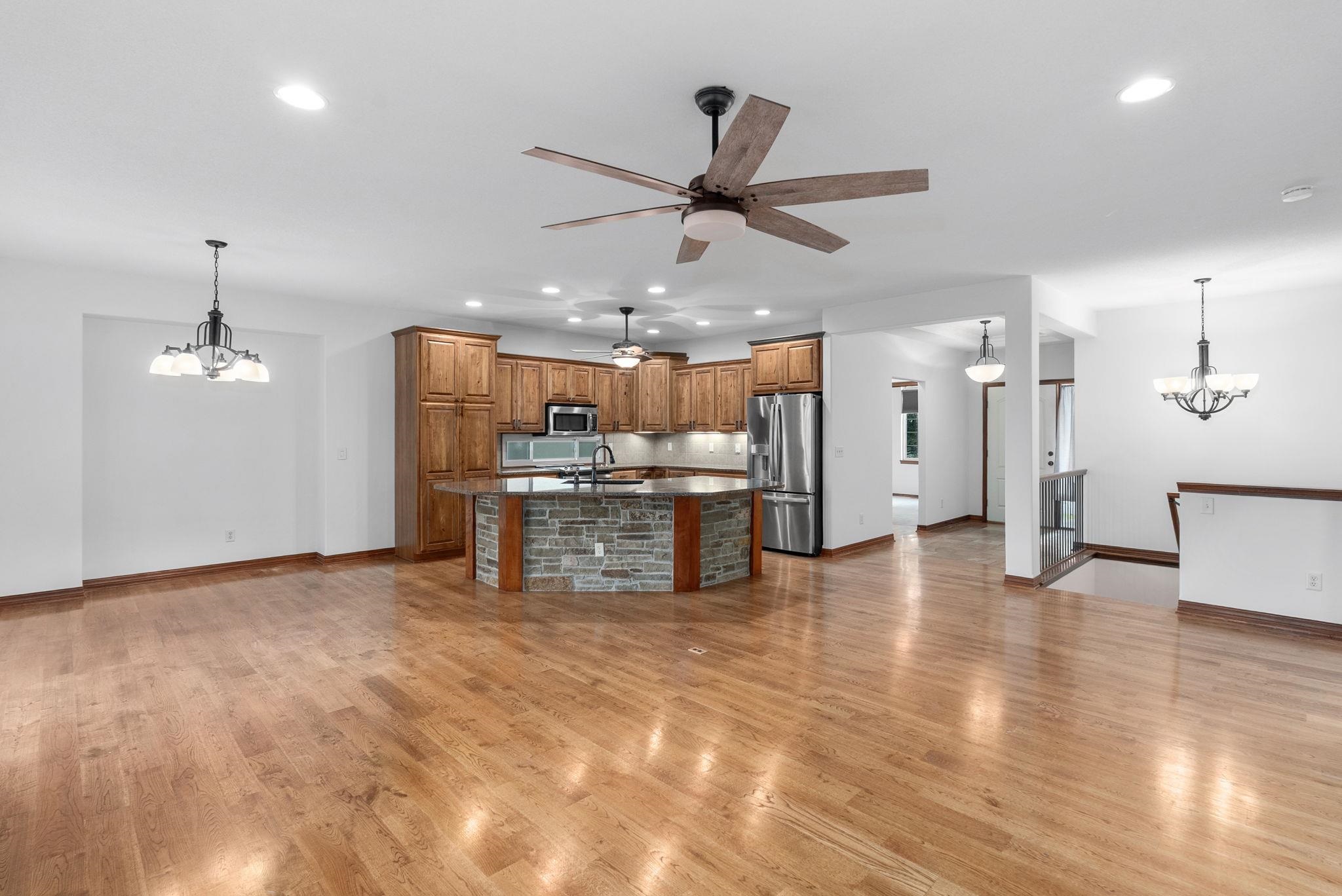 - Description: Welcome to this beautiful home tucked into the quiet, cozy Wilshire neighborhood near Seltzer Elementary. With 4 bedrooms, 3 bathrooms, and a 3-car garage, it’s the perfect blend of comfort and convenience. Inside, you’ll love the spacious open floor plan with fresh paint throughout. The kitchen, living, and dining areas are accented by rich wood floors, creating a warm and inviting space to gather. The finished basement offers plenty of room to spread out, featuring two additional bedrooms, a wet bar, and a comfortable living area that feels both inviting and functional. Step outside to the great deck with drop-down shades, giving you both shade and privacy for those relaxing evenings outdoors. This home offers generous space in a welcoming neighborhood, making it a wonderful place to call home. Show all description