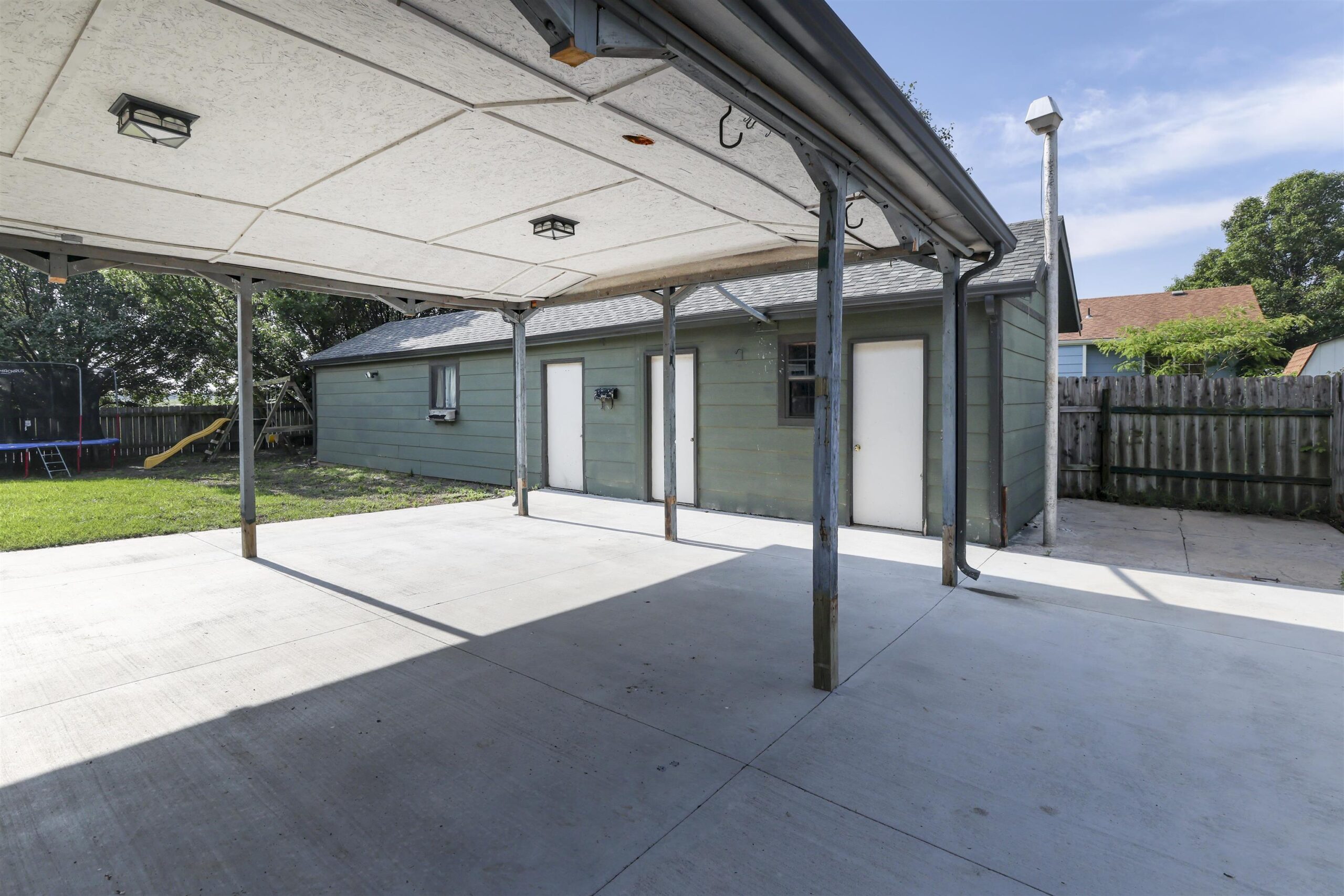 - Description: Excellent location in GODDARD with potential, potential, potential! 3-bedroom, 1 bathroom home, with full finished basement and over 1500 square feet of finished living space in main house! PLUS, a second full bathroom, one bedroom/kitchen bungalow/"mother in-law's suite" is in the back yard! ALSO, additional square footage is attached to the garage with an entertainment room/shop/multipurpose room that walks out to a huge, covered patio, in the back yard! Perfect for entertaining or extra income as a rental opportunity. The extra entertainment room and studio have not been used in years and need TLC, but fantastic potential! The entire property has great space. Location is ideal. Situated in a quiet neighborhood, in the Goddard School District, with top notch schools! Home is great for anyone looking to be in a great location at an affordable price. Schedule your showing today! Don’t miss your chance to make this home yours! Show all description