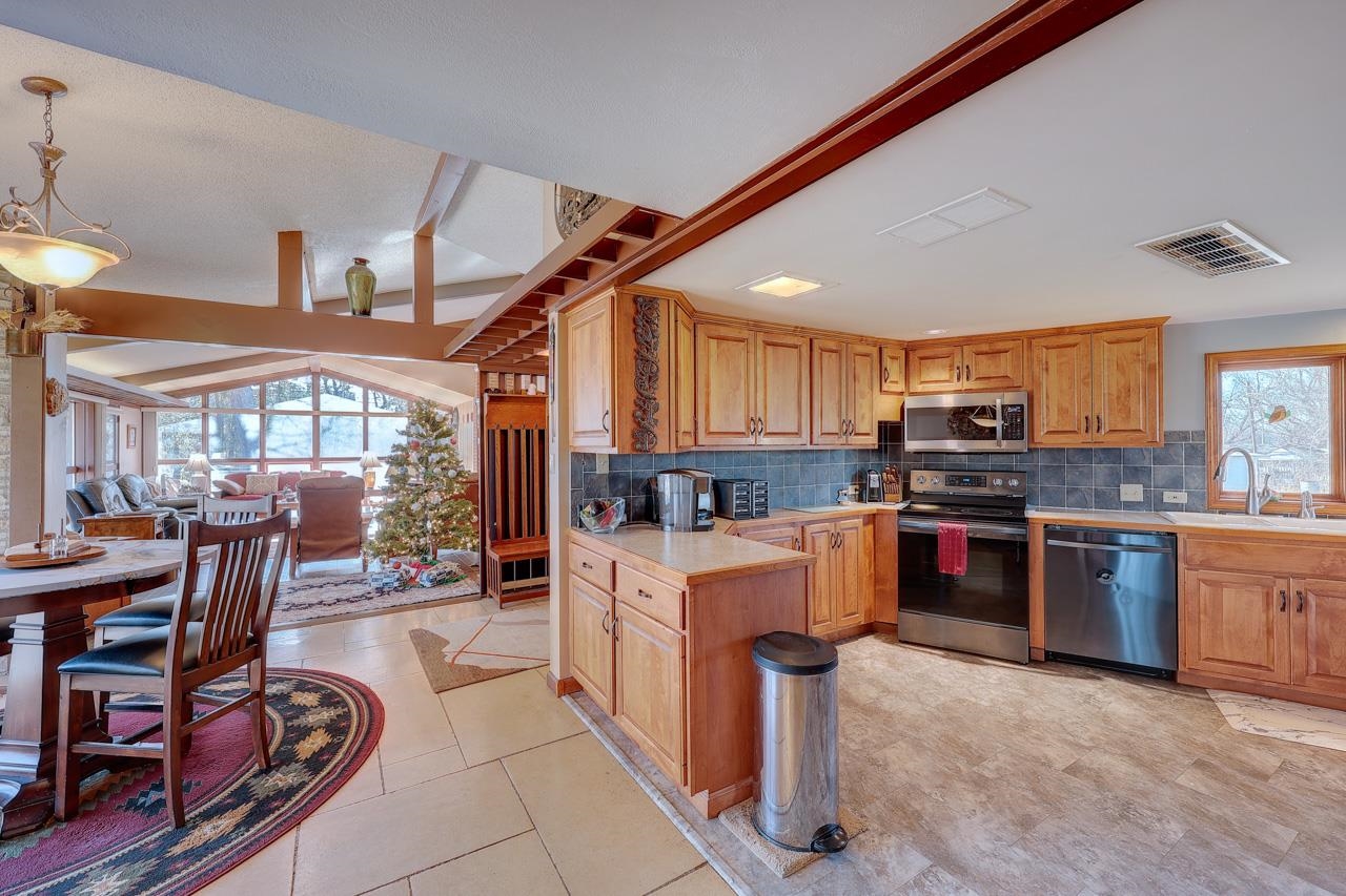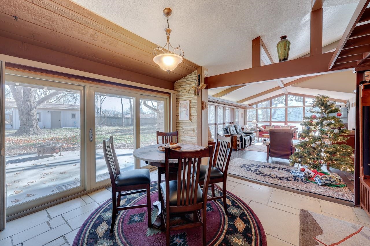 - Description: Do not miss the opportunity to own a piece of Winfield's history! This stunning home, designed and built by renowned local architect William Newton "Bill" Caton, served as his personal residence until retirement. Nestled on a spacious corner lot, this home boasts a gorgeous native limestone exterior and distinctive architecture throughout. Upon entering the home, you will move into the show-stopping living room featuring two walls full of windows, vaulted ceilings, and an amazing fireplace serving as the focal point. The fully equipped kitchen comes with all appliances. Additionally, the home includes an extra fridge, washer, and dryer, making it move-in ready. A formal dining room and a mudroom with abundant storage and laundry facilities add to the home's functionality. This home offers 3 bedrooms and two full bathrooms, including a large master suite with exterior access and a cozy wood-burning fireplace. The interior is filled with natural light from numerous windows, complemented by Hunter Douglas blinds in every room for privacy. Outside, enjoy the privacy of a backyard patio, a 2-car garage, a nice storage shed, and additional off-street parking. The bright and inviting layout, paired with the unique architectural details, creates a perfect blend of charm and practicality. This is your chance to own a truly one-of-a-kind property. Call the listing agent today for your private tour. Show all description