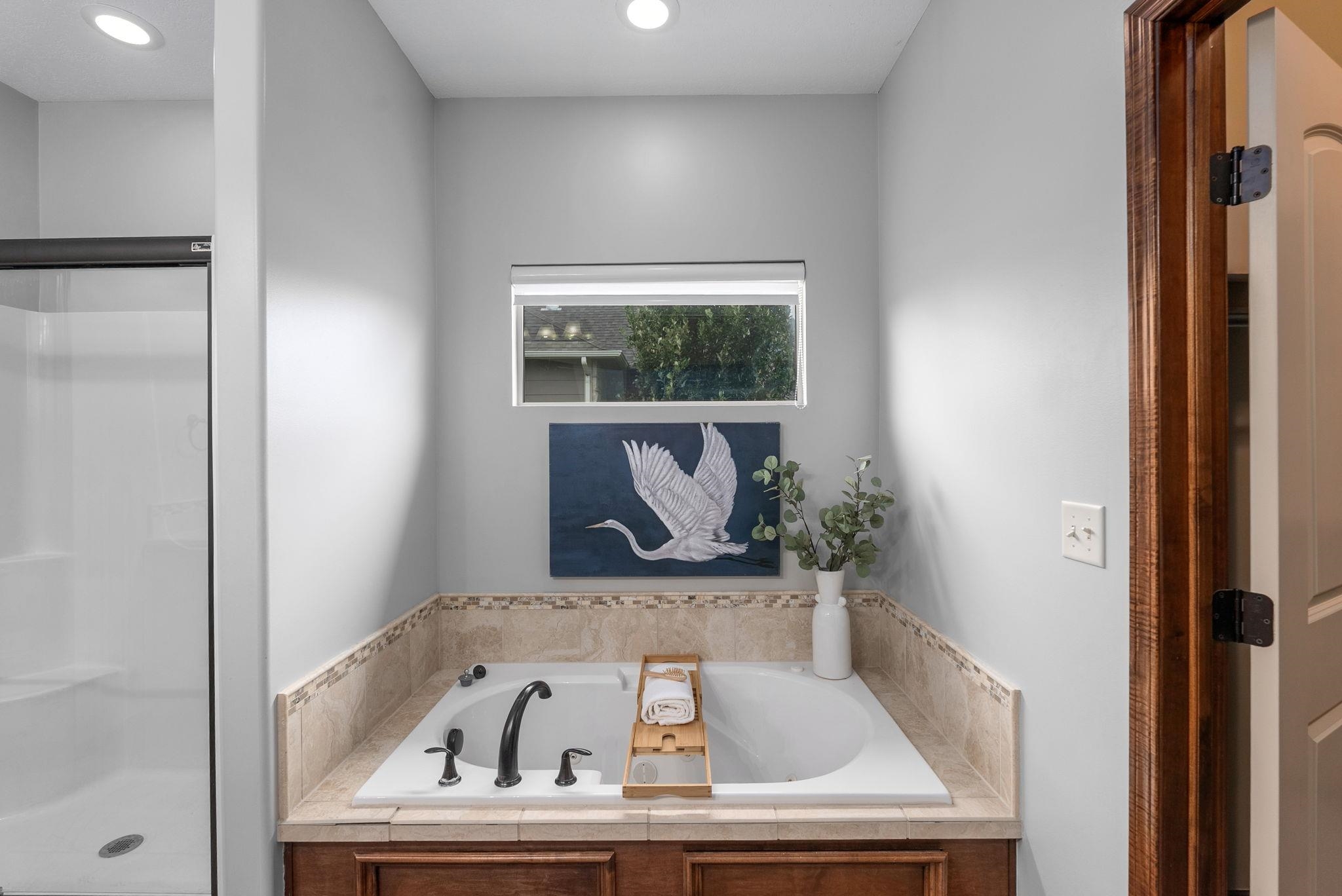 - Master Bedroom: Master Bdrm on Main Level, Split Bedroom Plan, Master Bedroom Bath, Sep. Tub/Shower/Mstr Bdrm, Two Sinks, Granite Counters