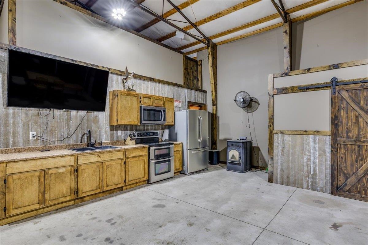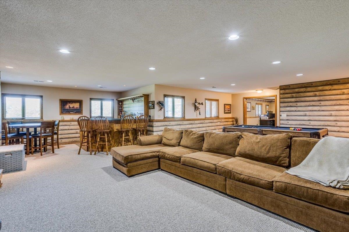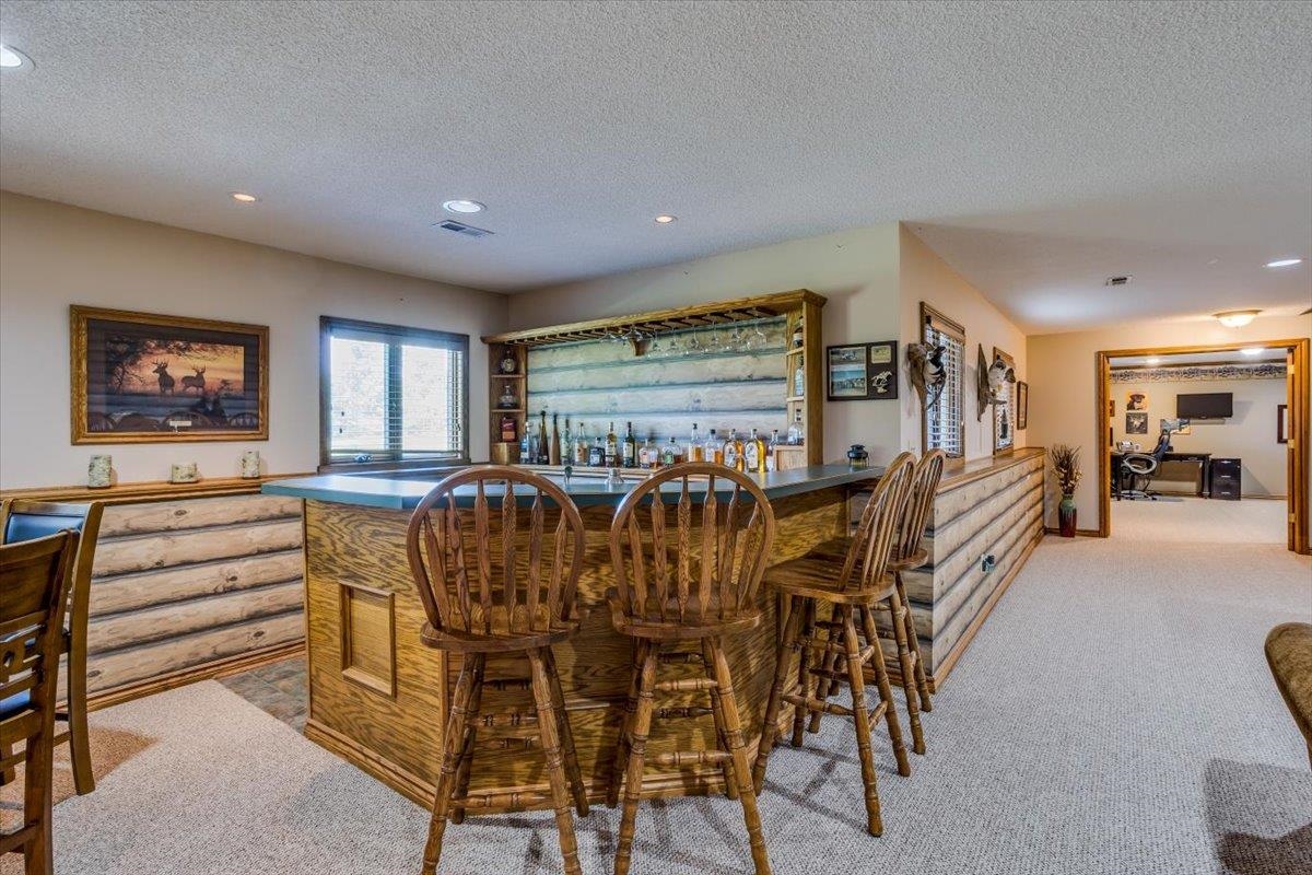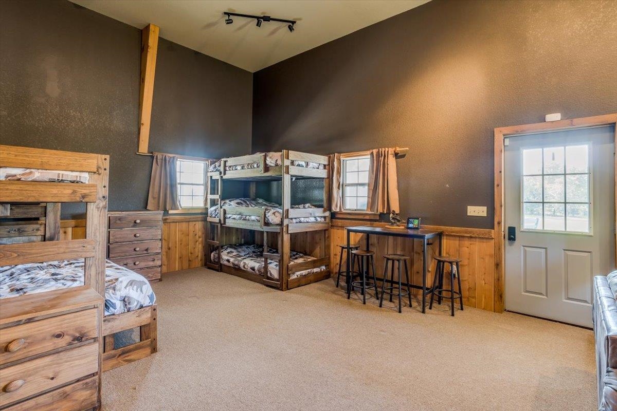 - Description: This one-of-a-kind property has so much to offer. You will search for years to find another home that can give you the lifestyle that this property has to offer. To start with a spacious, stunning quality-built home, a perfect guest house with an attached 35’ x 41’ heated (by a pellet stove), finished space that has the capability to be a fun party space with kitchen area. There is also an additional 40’ x 40’ outbuilding that has a concrete floor and front pad for all your equipment and toys. All of this is incredible but wait until you get a look at the 28 acres that has never been in production that consists of native grasses, trees, 2 ponds, a creek, and is home to deer, pheasant, quail, turkey, and dove. The land is a paradise for hunters and nature lovers. A little more about the 5 bedroom, 3 bath home. You will instantly fall in love with the chef’s kitchen with an enormous island plus a peninsula. There is an abundance of storage with a wall of pantry cabinets. The open floorplan offers a wonderful area for the family and friends to gather when they are not outside enjoying nature. The master bedroom offers a beautiful on suite and 2 closets. There are 2 additional bedrooms a full bathroom, and a large laundry room on the main floor. The view out basement offers a family room with wet bar, 2 finished bedrooms full bathroom, and a bonus room that the family uses currently as a workout room. As you walk out onto the back deck you will instantly fall in love with the serene view and incredible sunsets. Just off the back yard is the guest house that the family calls “the bunkhouse” It is a wonderful retreat with a sleeping area for 6, a living room, full bath, and a kitchen area. The bunkhouse is cooled and heated for year around comfort. It would make a perfect mother- in-law home or a living area for a college kid. The property has so much opportunity for fun including a volleyball court, basketball court, walking paths, 4-wheeler trails, walking paths, wildlife and bird watching. The home was built by a top-rated builder and has been meticulously maintained. Please review the seller’s property condition report for the endless list of upgrades and continued care that has went into this property as there is not room to list it all here. I will just say that this home has been loved and maintained since day one. Make this your forever home, your hunting cabin or weekend getaway. You do not want to miss out. Only wonderful memories will be made in your little piece of paradise. Show all description