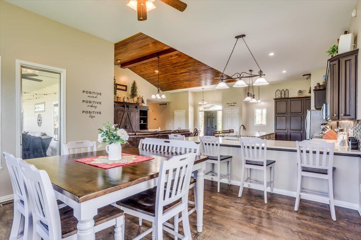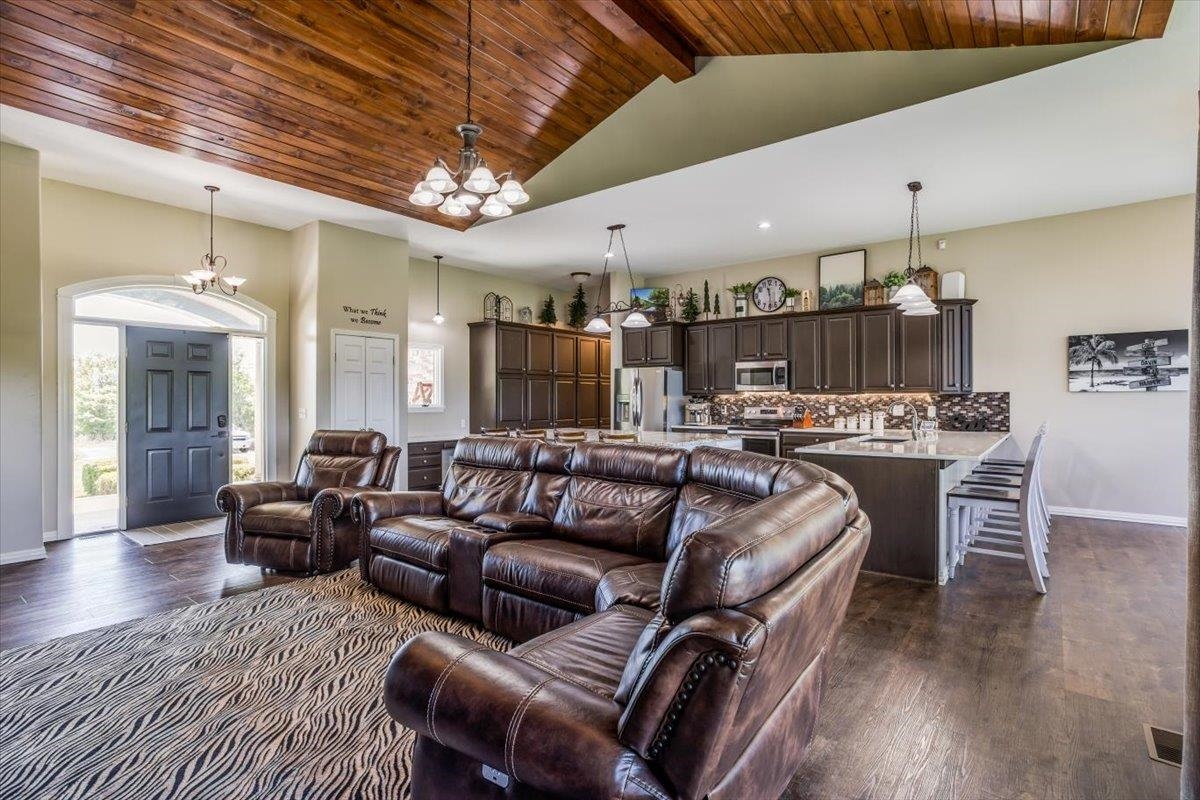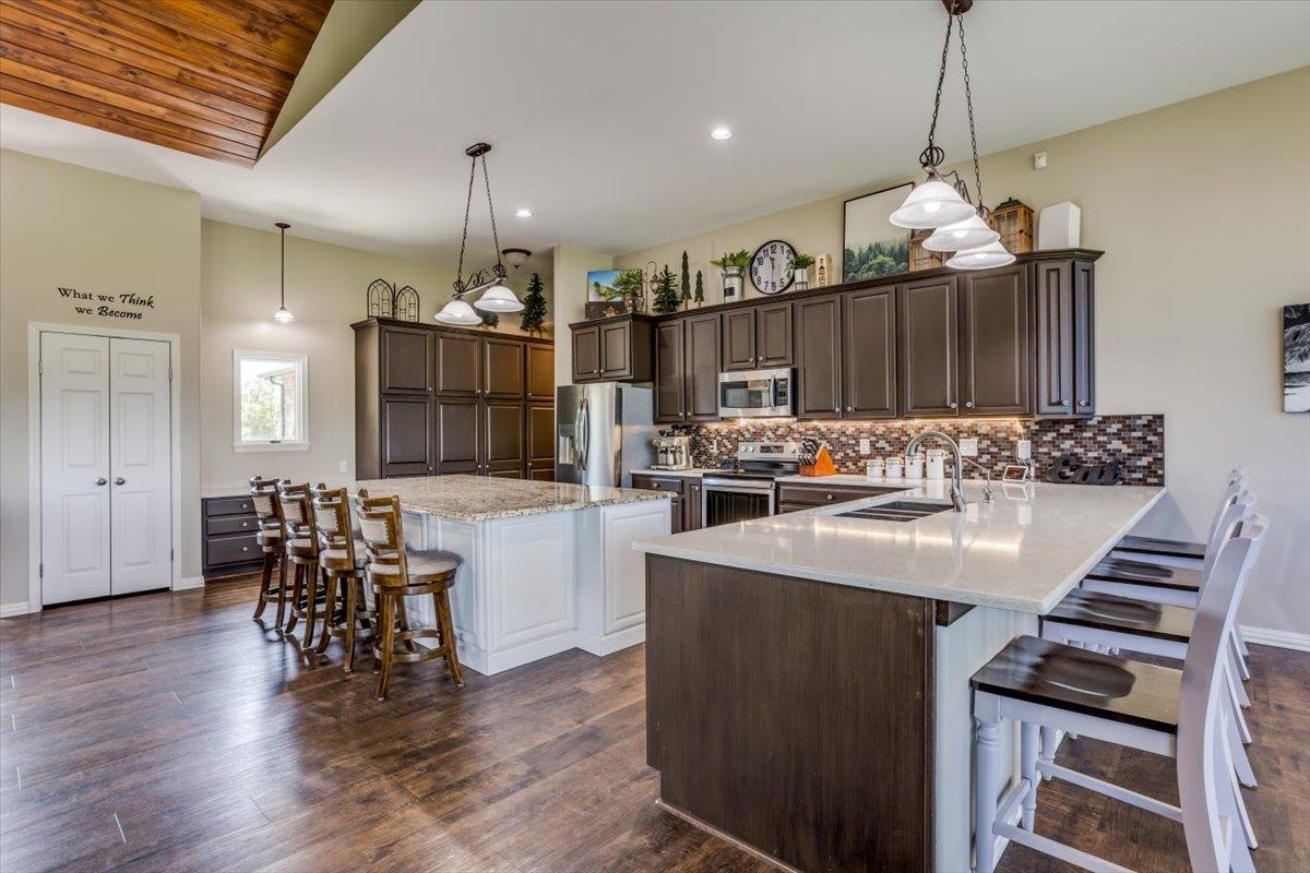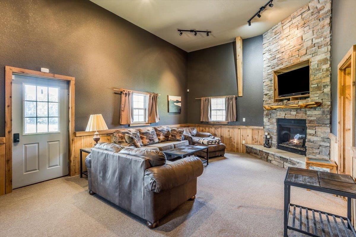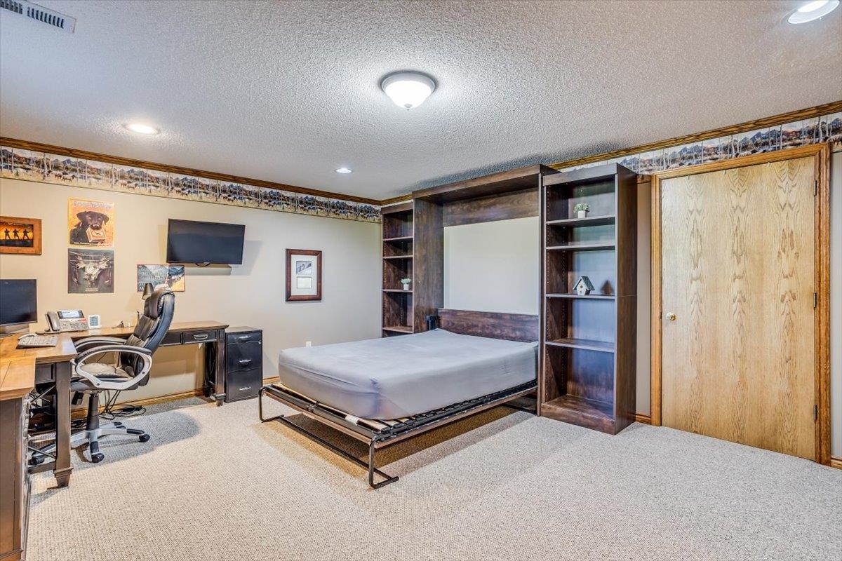 - Description: This one-of-a-kind property has so much to offer. You will search for years to find another home that can give you the lifestyle that this property has to offer. To start with a spacious, stunning quality-built home, a perfect guest house with an attached 35’ x 41’ heated (by a pellet stove), finished space that has the capability to be a fun party space with kitchen area. There is also an additional 40’ x 40’ outbuilding that has a concrete floor and front pad for all your equipment and toys. All of this is incredible but wait until you get a look at the 28 acres that has never been in production that consists of native grasses, trees, 2 ponds, a creek, and is home to deer, pheasant, quail, turkey, and dove. The land is a paradise for hunters and nature lovers. A little more about the 5 bedroom, 3 bath home. You will instantly fall in love with the chef’s kitchen with an enormous island plus a peninsula. There is an abundance of storage with a wall of pantry cabinets. The open floorplan offers a wonderful area for the family and friends to gather when they are not outside enjoying nature. The master bedroom offers a beautiful on suite and 2 closets. There are 2 additional bedrooms a full bathroom, and a large laundry room on the main floor. The view out basement offers a family room with wet bar, 2 finished bedrooms full bathroom, and a bonus room that the family uses currently as a workout room. As you walk out onto the back deck you will instantly fall in love with the serene view and incredible sunsets. Just off the back yard is the guest house that the family calls “the bunkhouse” It is a wonderful retreat with a sleeping area for 6, a living room, full bath, and a kitchen area. The bunkhouse is cooled and heated for year around comfort. It would make a perfect mother- in-law home or a living area for a college kid. The property has so much opportunity for fun including a volleyball court, basketball court, walking paths, 4-wheeler trails, walking paths, wildlife and bird watching. The home was built by a top-rated builder and has been meticulously maintained. Please review the seller’s property condition report for the endless list of upgrades and continued care that has went into this property as there is not room to list it all here. I will just say that this home has been loved and maintained since day one. Make this your forever home, your hunting cabin or weekend getaway. You do not want to miss out. Only wonderful memories will be made in your little piece of paradise. Show all description