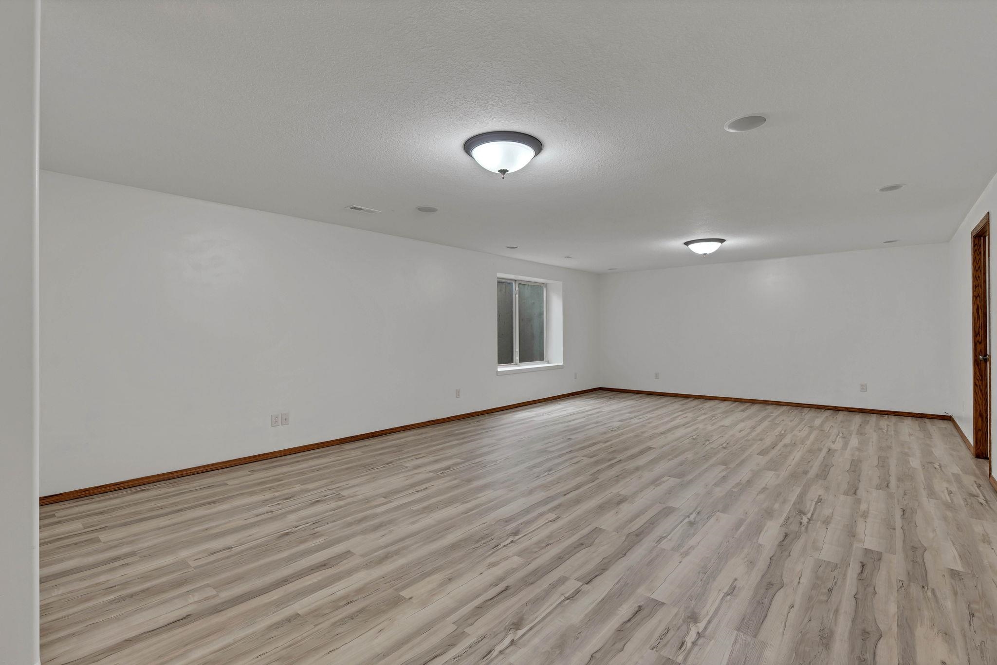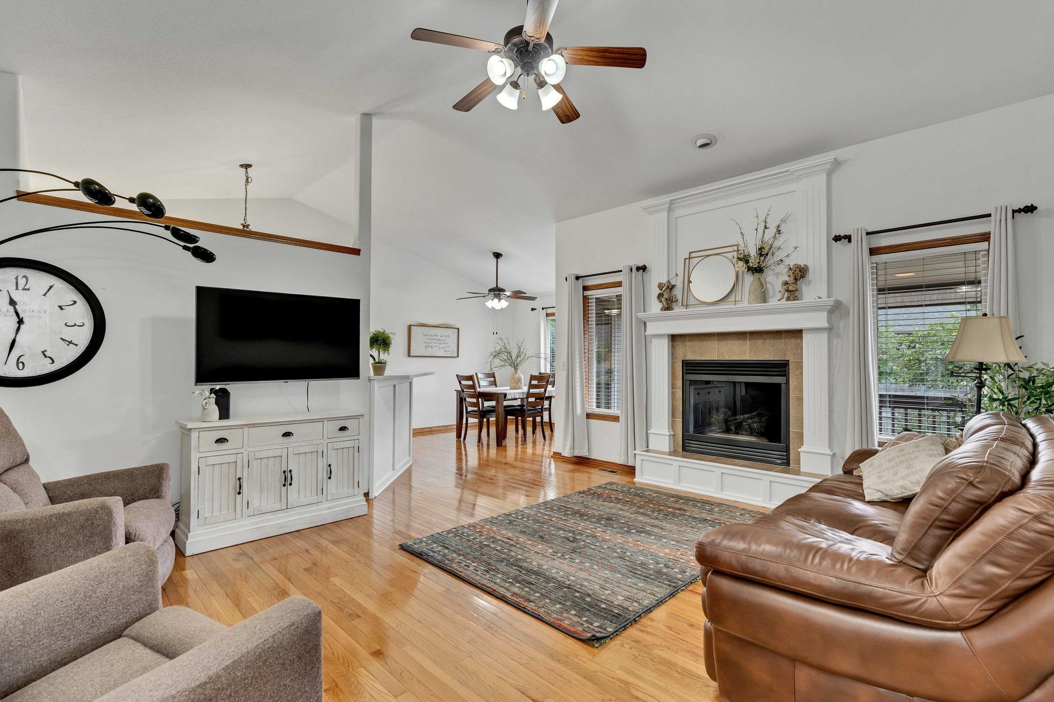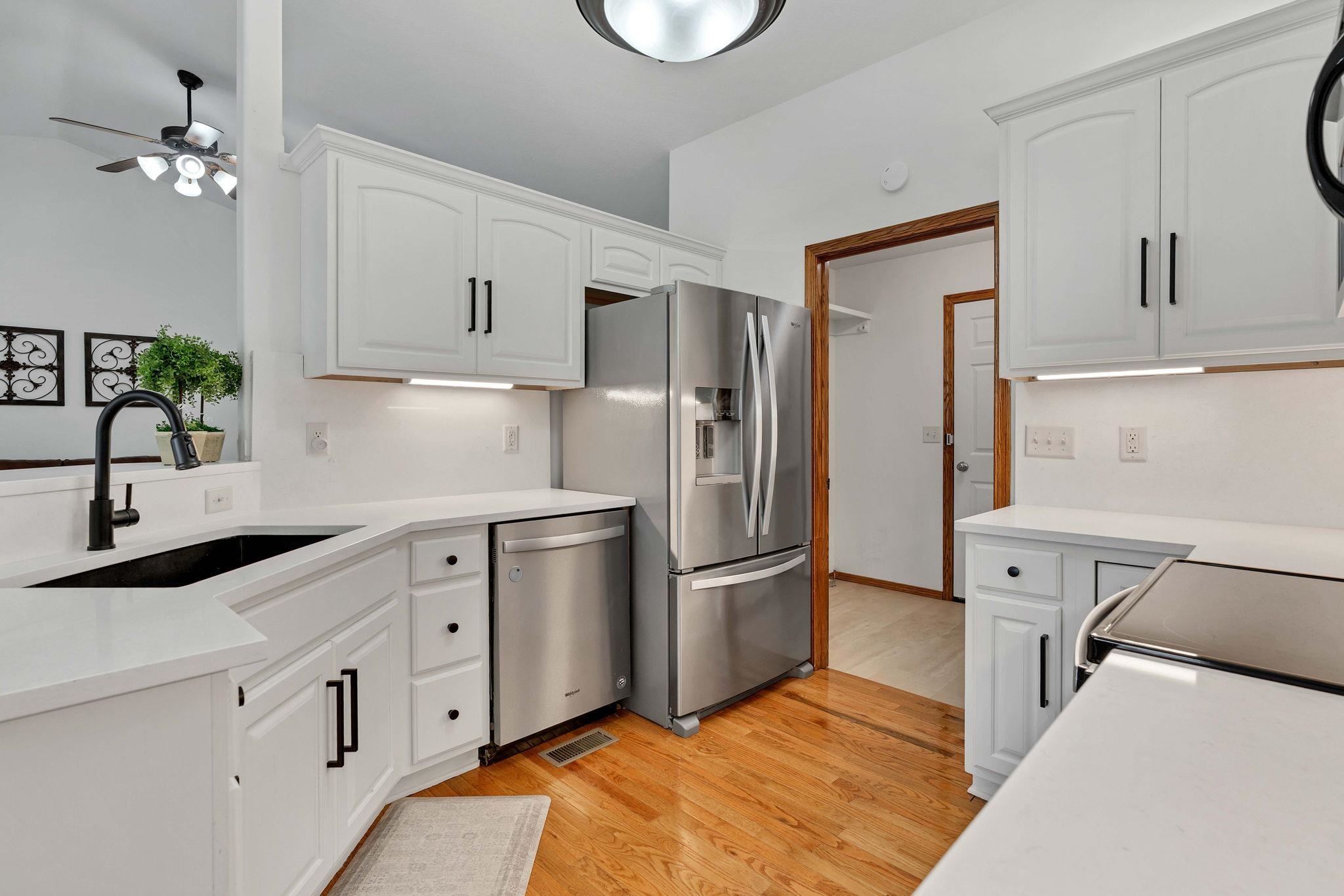 - Description: Welcome to this stunning entirely updated premium Standrich built ranch home in desirable Springcreek addition. This spacious home boasts approximately 2500+ finished living space thoughtfully designed to accommodate modern family living. Step inside to discover abundant hardwood floors that flow through the living room, dining, kitchen, primary suite & hallway. The interior showcases fresh neutral light paint & stylish white cabinetry complemented by quartz countertops. The open concept layout creates a warm & inviting atmosphere perfect for entertaining or relaxing with loved ones. The basement offers abundant space complete with carefree luxury vinyl plank flooring ideal in the family room and both bedrooms. The primary onsite bath has been thoughtfully updated with an expanded solid surface shower, dual vanities, and dual closets. Enjoy your mornings or evenings on the covered deck overlooking the beautifully landscaped backyard creating a serene outdoor oasis. The auto sprinkler system ensures a lush landscape with minimal upkeep.A charming courtyard greets you at the front entry adding to the home's curb appeal while the oversized 3 car garage offers plenty of space for vehicles & storage & a workbench. The property features a class 4 hail resistant roof providing peace of mind in unpredictable weather. With low taxes and an attractive price of only $325000, this home truly offer incredible value! Don't miss th chance to make this beautiful ranch your new home! Show all description