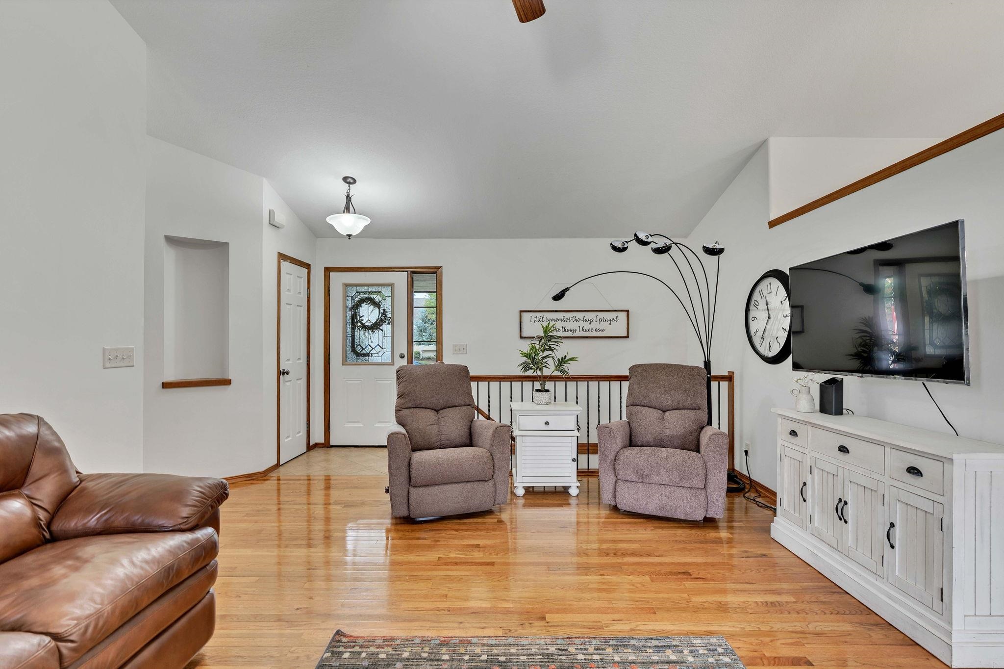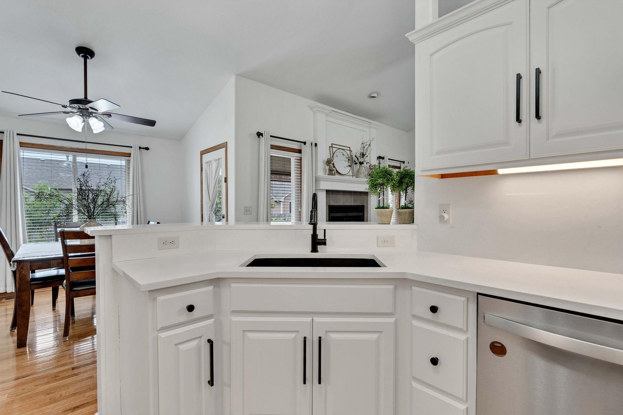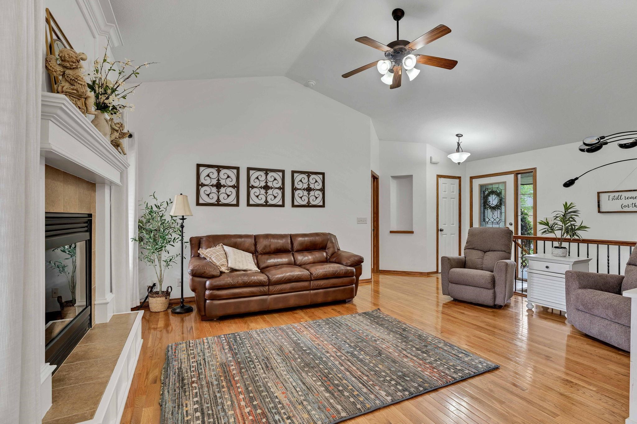 - Description: Welcome to this stunning entirely updated premium Standrich built ranch home in desirable Springcreek addition. This spacious home boasts approximately 2500+ finished living space thoughtfully designed to accommodate modern family living. Step inside to discover abundant hardwood floors that flow through the living room, dining, kitchen, primary suite & hallway. The interior showcases fresh neutral light paint & stylish white cabinetry complemented by quartz countertops. The open concept layout creates a warm & inviting atmosphere perfect for entertaining or relaxing with loved ones. The basement offers abundant space complete with carefree luxury vinyl plank flooring ideal in the family room and both bedrooms. The primary onsite bath has been thoughtfully updated with an expanded solid surface shower, dual vanities, and dual closets. Enjoy your mornings or evenings on the covered deck overlooking the beautifully landscaped backyard creating a serene outdoor oasis. The auto sprinkler system ensures a lush landscape with minimal upkeep.A charming courtyard greets you at the front entry adding to the home's curb appeal while the oversized 3 car garage offers plenty of space for vehicles & storage & a workbench. The property features a class 4 hail resistant roof providing peace of mind in unpredictable weather. With low taxes and an attractive price of only $325000, this home truly offer incredible value! Don't miss th chance to make this beautiful ranch your new home! Show all description