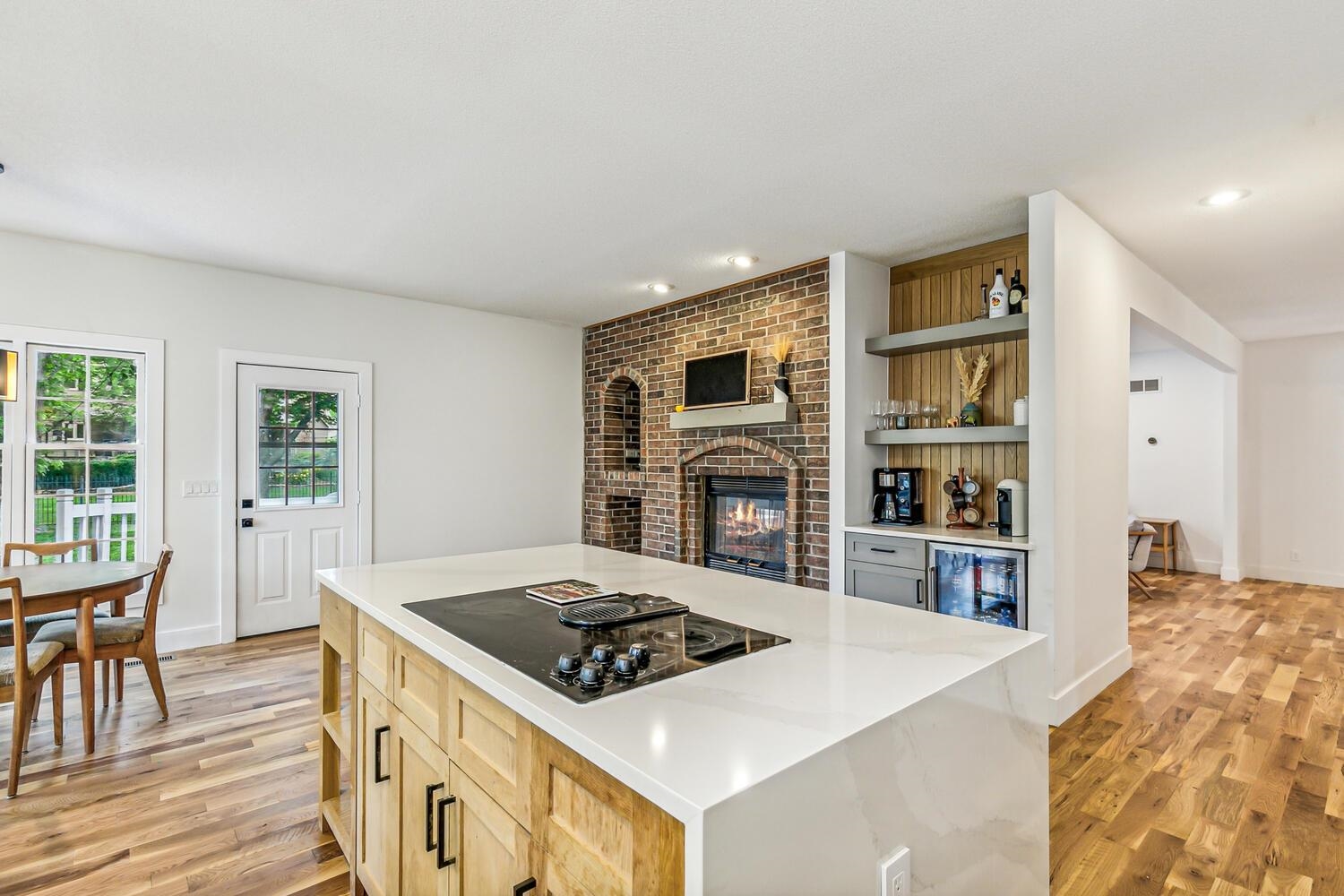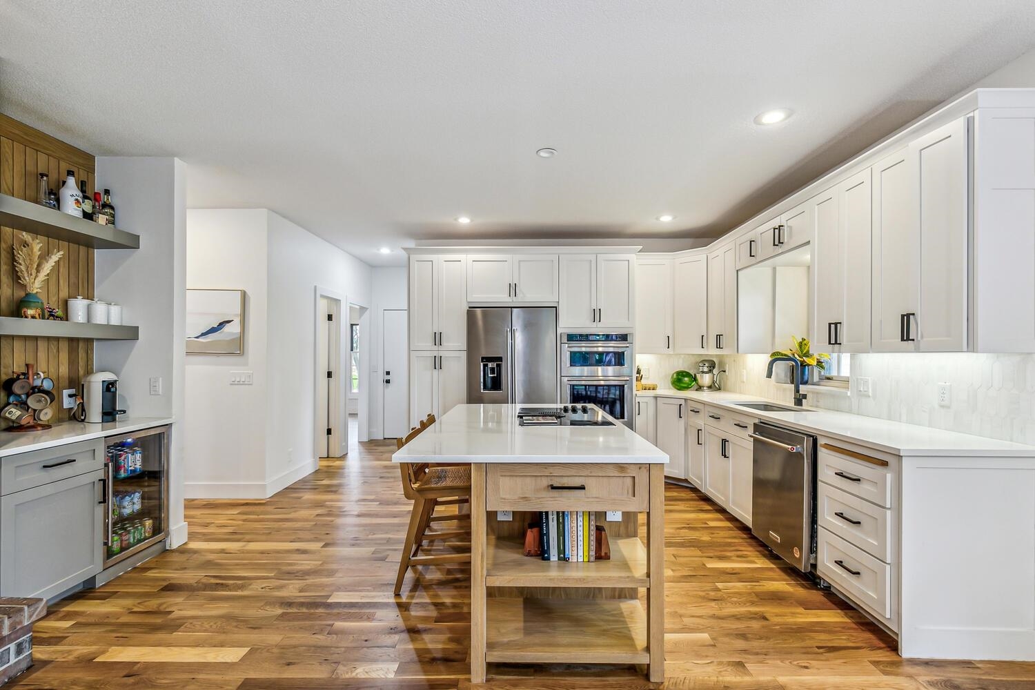 - Description: Location! Location! Location! Beautiful Ranch style home located in the very desirable Lakepoint neighborhood which offers great walking paths, lakes, waterfalls and mature trees. Main living areas have just been remodeled! Open and bright and very spacious!! Features 5 bedrooms, 3.5 baths, 2 car garage located on a cul-de-sac with oversized lot. Over 4200 Sq Ft of finished living space. The main floor features Living Rm, formal Dining Rm, Kitchen/Hearth rm with quartz countertops, new appliances and bayed eating area. The kitchen area and Living Rm are separated by a two-way brick fireplace. Master suite has private bath with shower, whirlpool tub and walk-in closet. All bedrooms are oversized. Basement features Family Rm, Game Rm with wet bar and fireplace, 2 bedrooms, full bath and lots of storage. No special taxes. Centrally located to Wichita's finest restaurants and shopping. You won't want to miss out on this opportunity!! Show all description