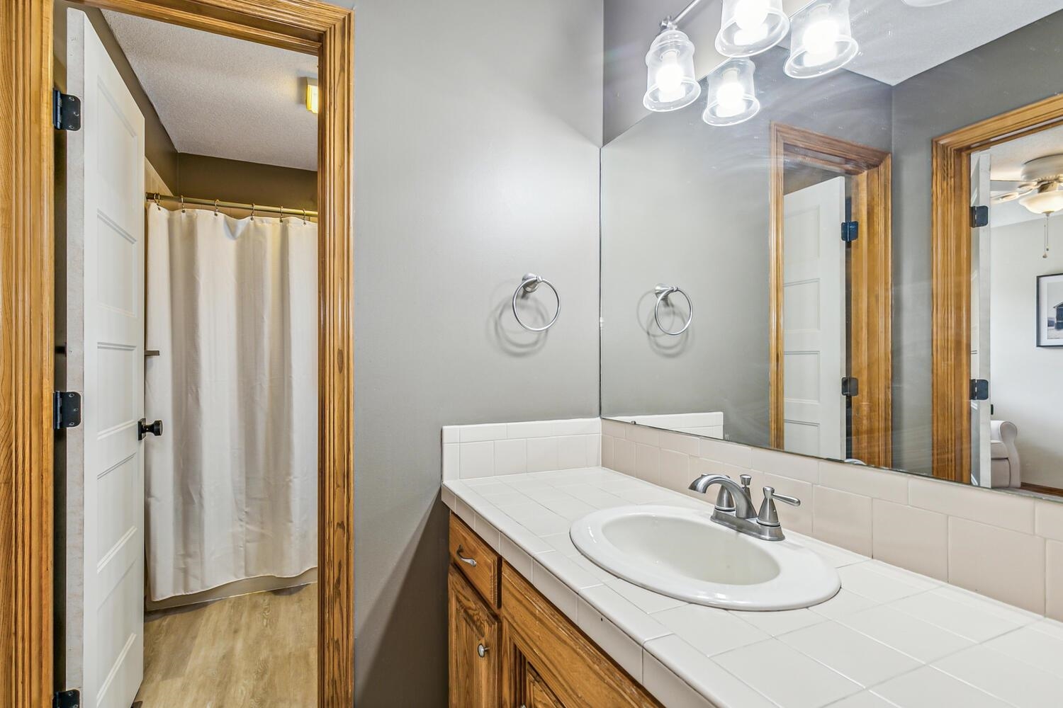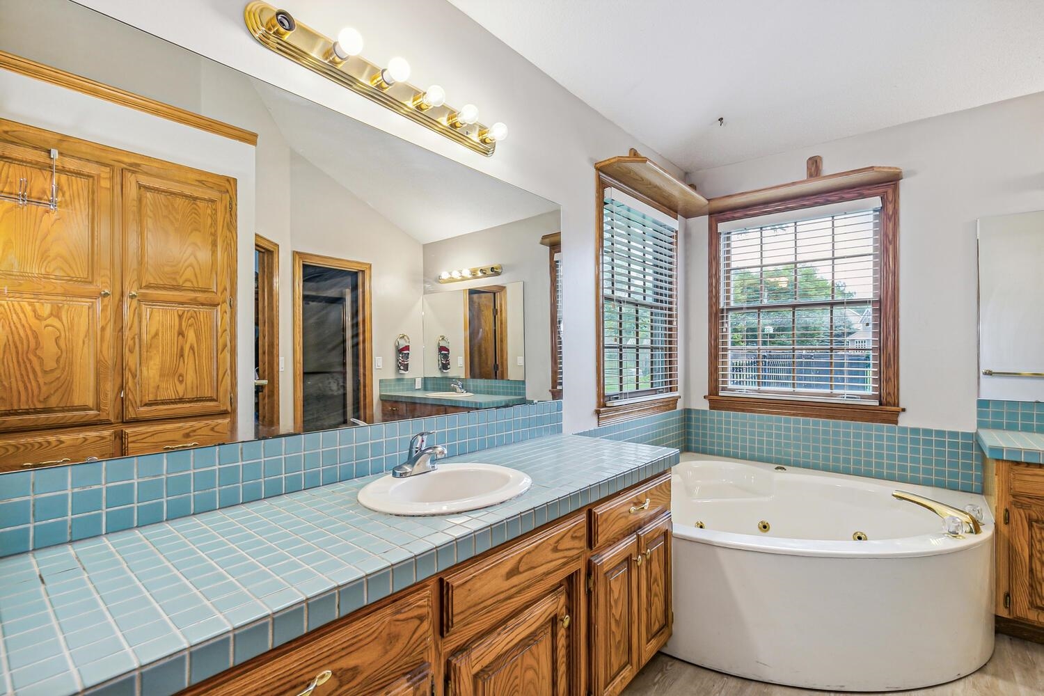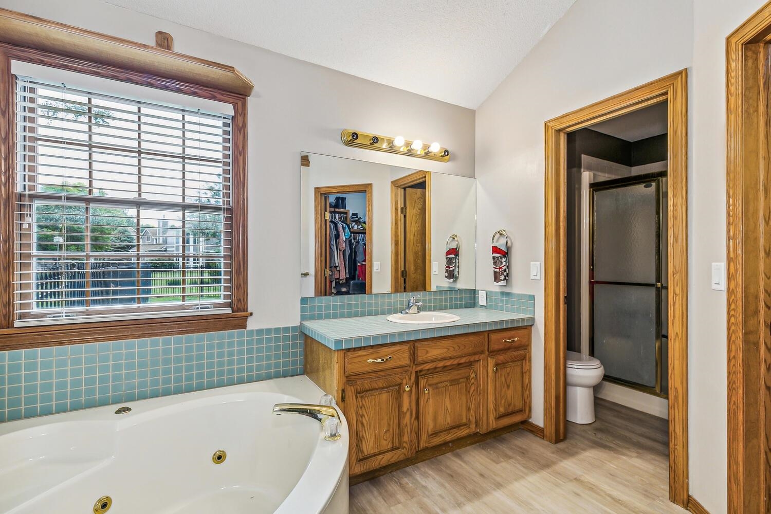 - Master Bedroom: Master Bdrm on Main Level, Sep. Tub/Shower/Mstr Bdrm, Two Sinks, Tile Counters, Jetted Tub, Water Closet