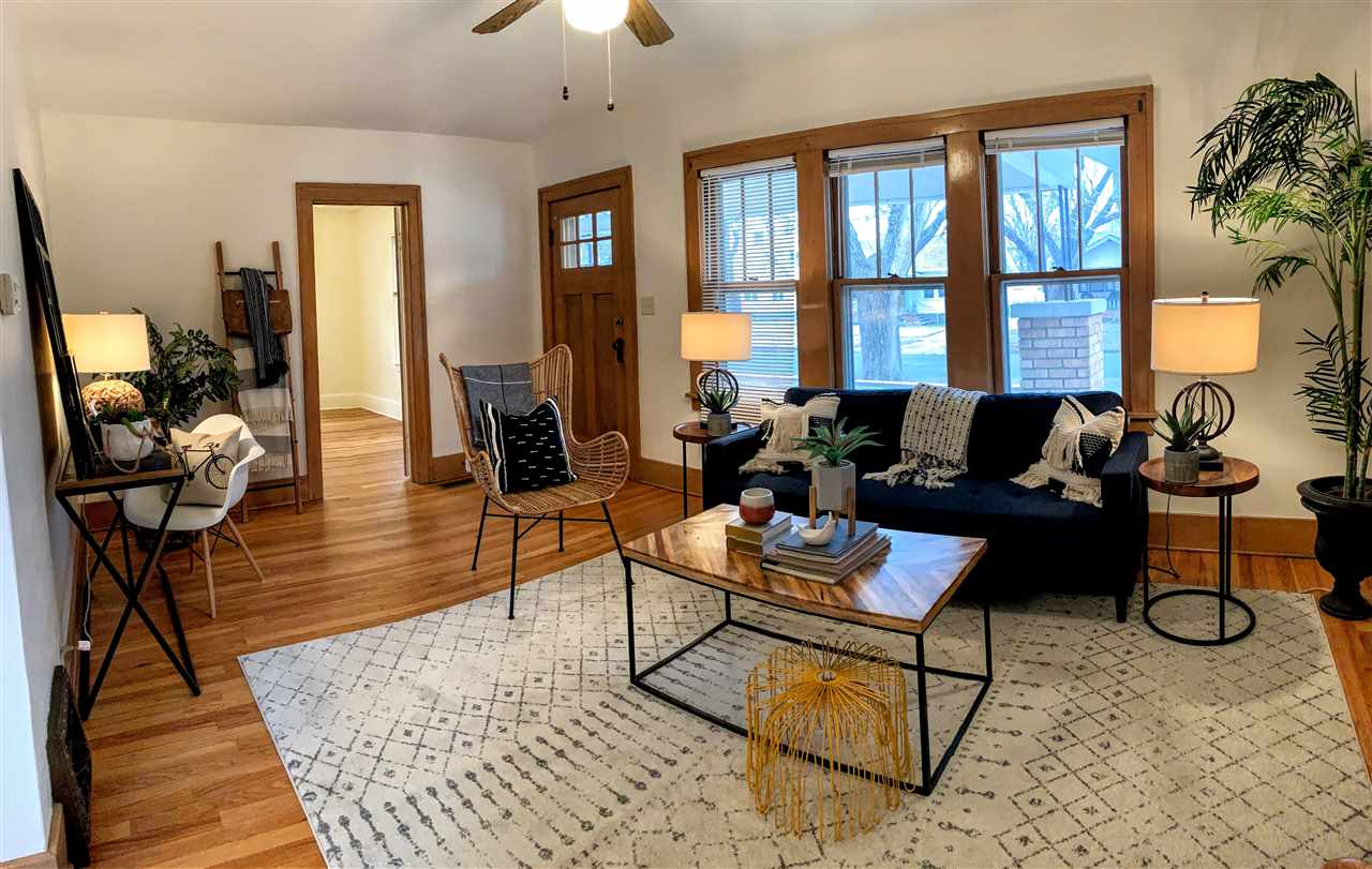 - Description: This charming Riverside bungalow has been in the same family for almost 40 years. Original hardwood floors shine throughout, even the kitchen! The kitchen has been remodeled with maple Kraftmaid cabinets and solid surface countertops. Just wait until spring when the yard comes alive with carefully cultivated perennial flower beds! Newer, oversized, one car garage. Located in the museum district, Wichita Art Museum, Mid-American All-Indian Center Museum, Botanica, Exploration Place, Sedgwick County Zoo, parks and walking trails along the river, one block from Sim Park Golf Course, convenient to downtown. Come discover why people love living in Riverside! Show all description