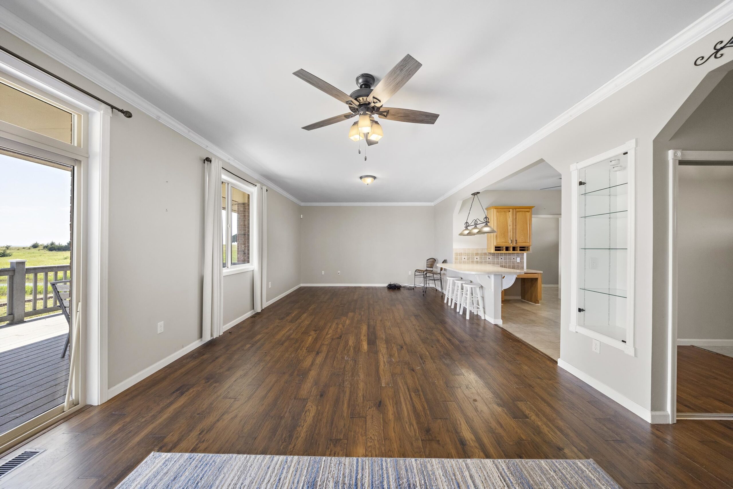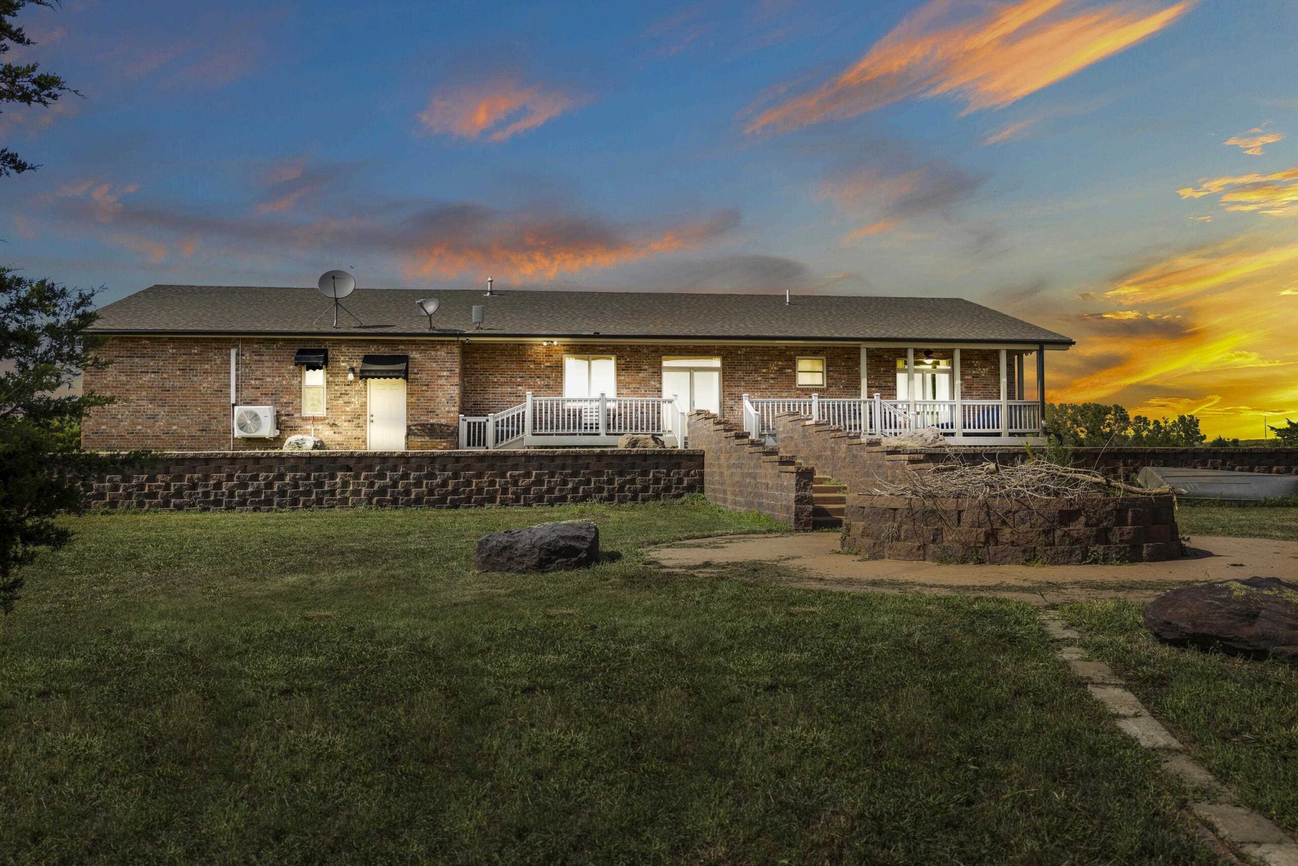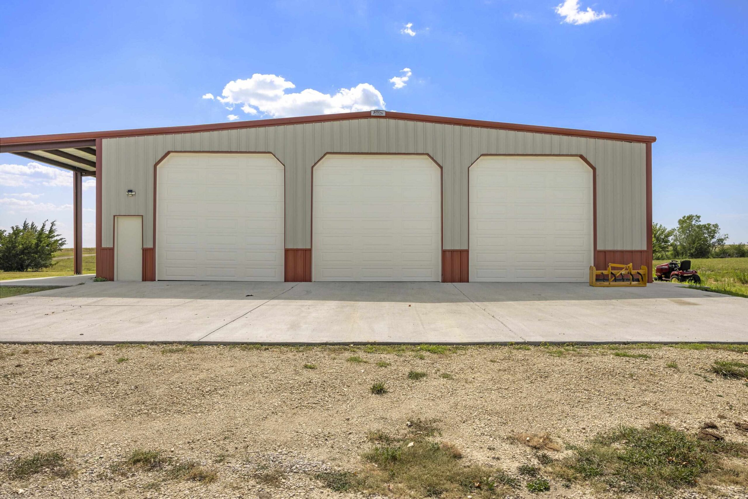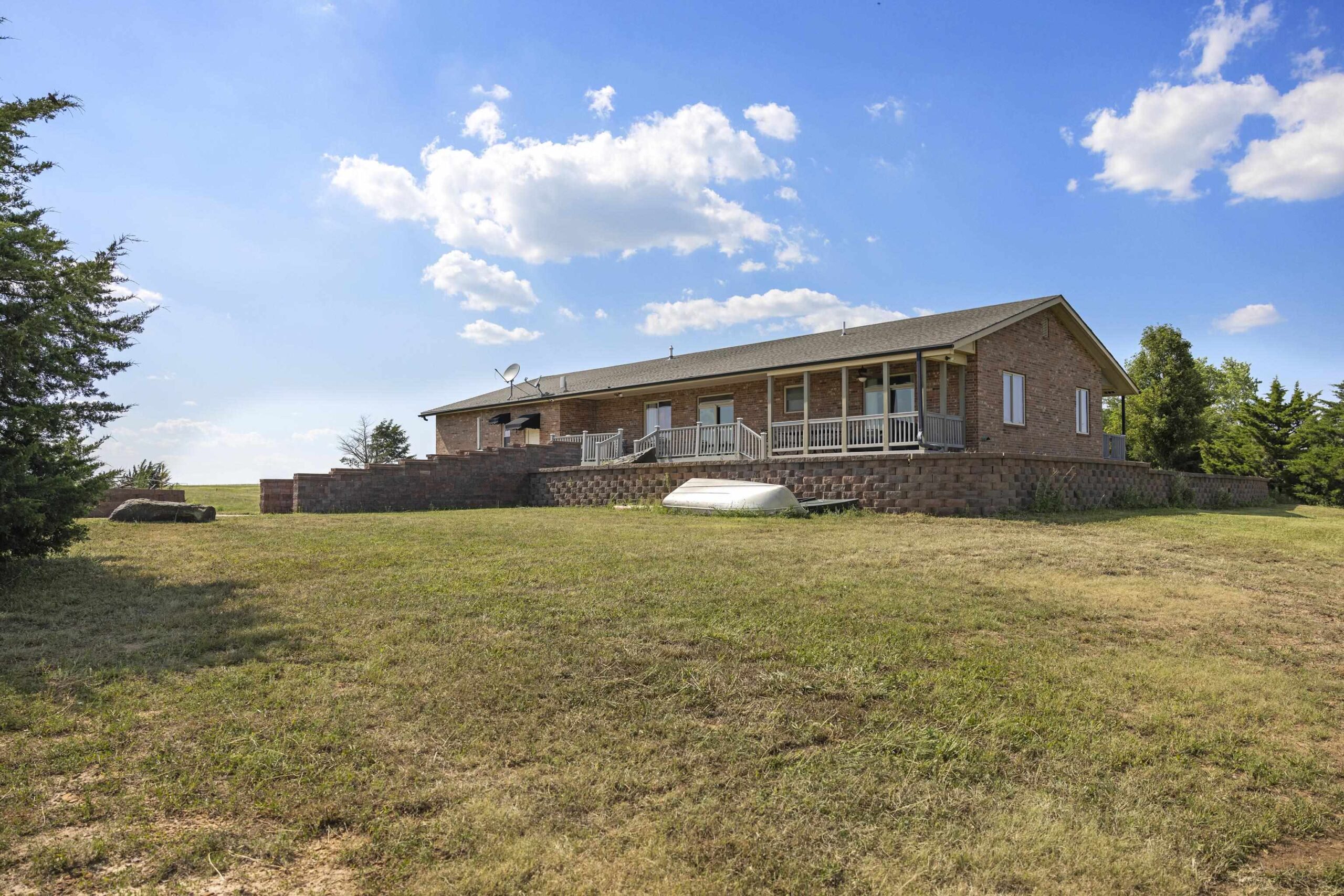- Description: PRIVATE POND ON A WELL, 50X60 INSULATED SHOP WITH A BATHROOM, RV DUMP STATION, GENERATOR AND TWENTY-THREE ACRES!!! Don't miss this country retreat just 3 miles north of Kanopolis Lake! As you pull into the long private property you are welcomed by rolling hills of green overlooking the HUGE private pond! As you pull up to the house the brand new 50X60 insulated shop welcomes you with double sided extra tall roll up doors perfect for off loading your favorite lake vehicles! Inside the shop you will also find a full bathroom! Walking up to the house the spacious covered front porch and beautiful landscaping invite you home. Inside the updated layout and features make this home a true outdoor dream with comfort and style! An open floor plan with the living, dining and kitchen ensures plenty of space for guests and gatherings! Down the hall are the first and second bedrooms and the hall bathroom, all with great space. At the end of the hall is the enormous primary bedroom with private access to the covered patio and an en-suite bathroom with a jetted tub! Off the kitchen is a large pantry and laundry space leading into the 3 car garage. At the back of the garage is the BAR!!! Equipped with a mini-split, sink, water lines for both a fridge and an ice maker this is the best hangout space around! Out the sliding door the covered back patio, extra-large fire pit and walk way invite you right down to the 13 ACRE POND with a BEACH! All this plus extra outbuildings and acreage to spare! Show all description