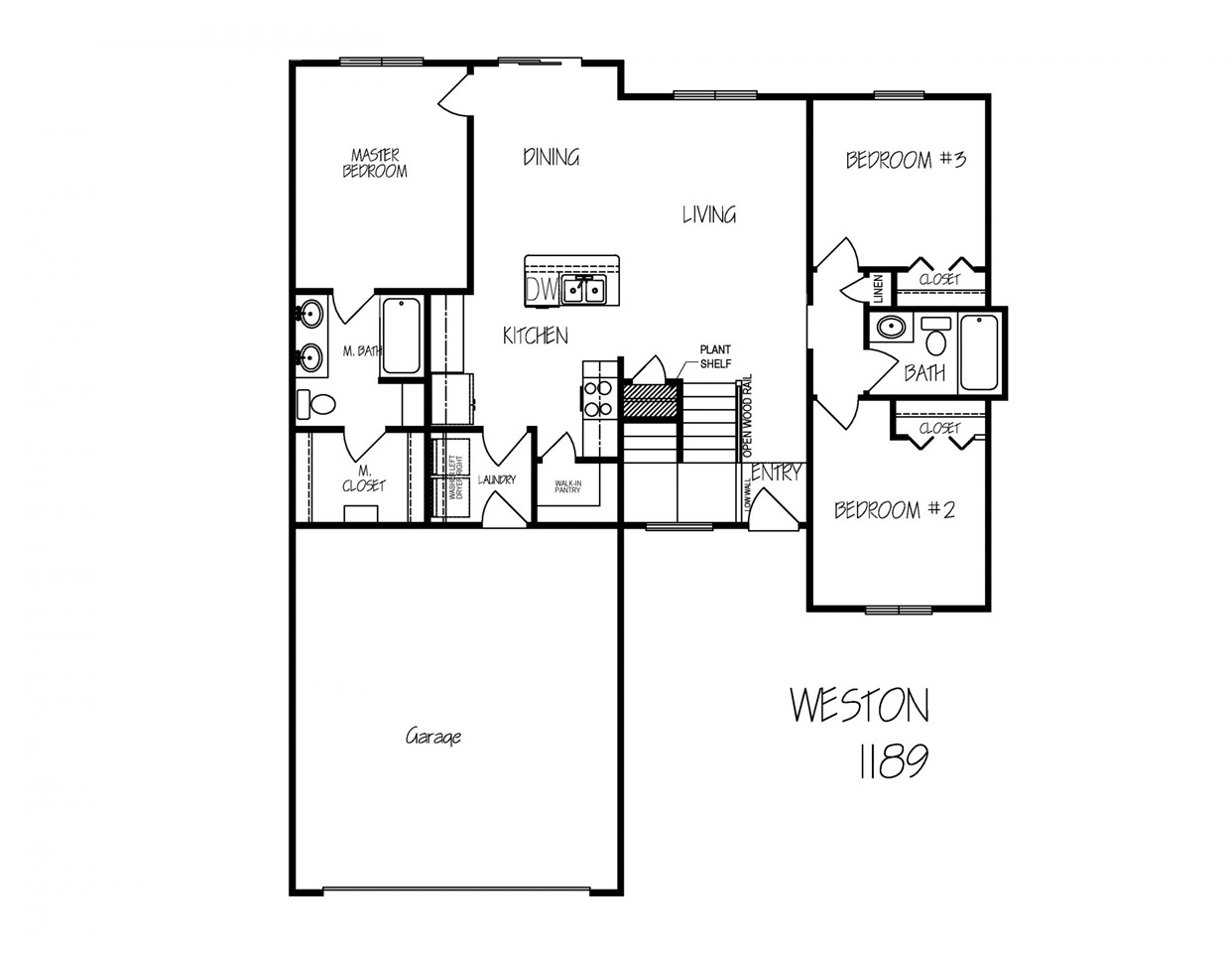 - Description: The Weston plan features a U-shape front stairway, open vaulted living area with split bedroom plan and island kitchen! Show all description