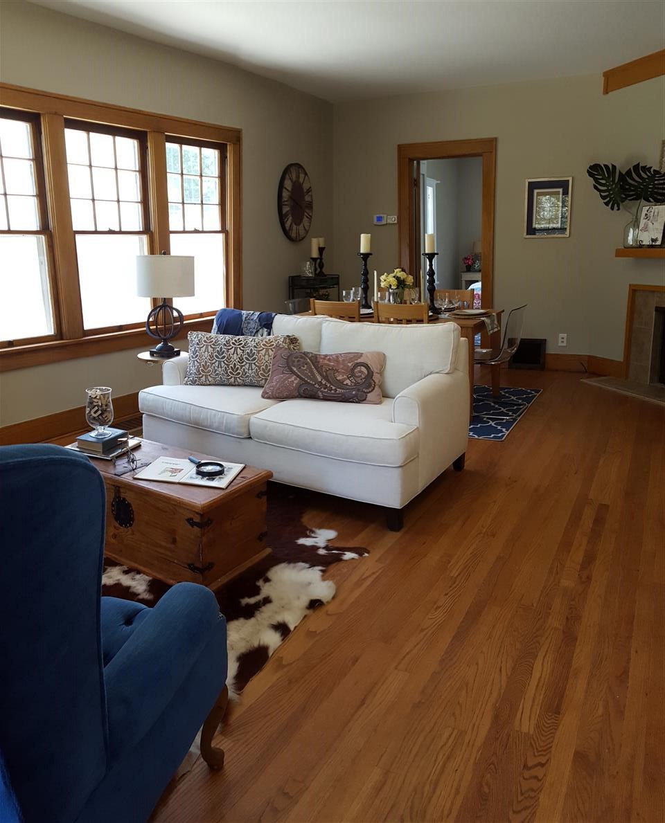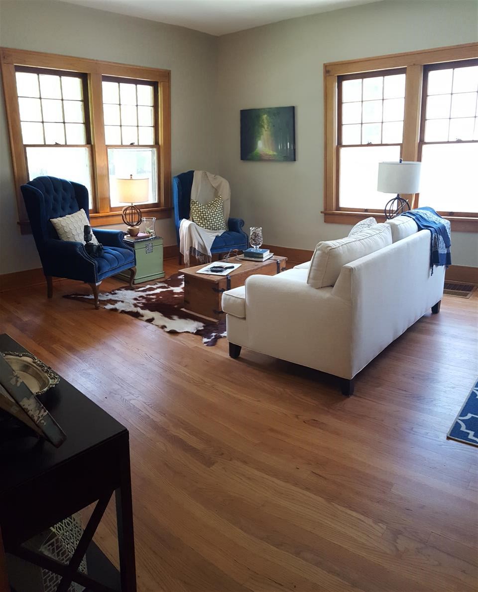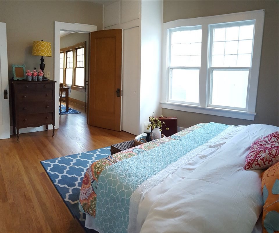 - Description: Beautifully updated FOUR BEDROOM airplane bungalow on the prettiest street in Riverside! Original hardwood floors, TONS of windows, light, light light, spacious kitchen has enough room for eating bar/work island, full bath on main level with additional 1/2 bath on second floor, MAIN FLOOR LAUNDRY, his and her closets in master bedroom, interior freshly painted, new flooring in kitchen, TWO CAR GARAGE, lovely trees and established perennial gardens accent the well maintained lawn. Furnace, air conditioner and water heater all less than five years old! Just a few short blocks to Botanica, Sims Park Golf Course and the bike trails along the river. Centrally located close to downtown with easy commute to east or west side of town. This is a great price for a great home in a great neighborhood. Show all description