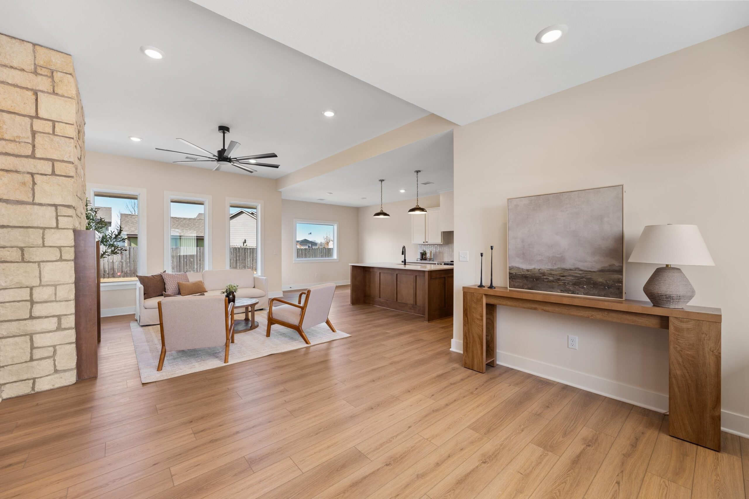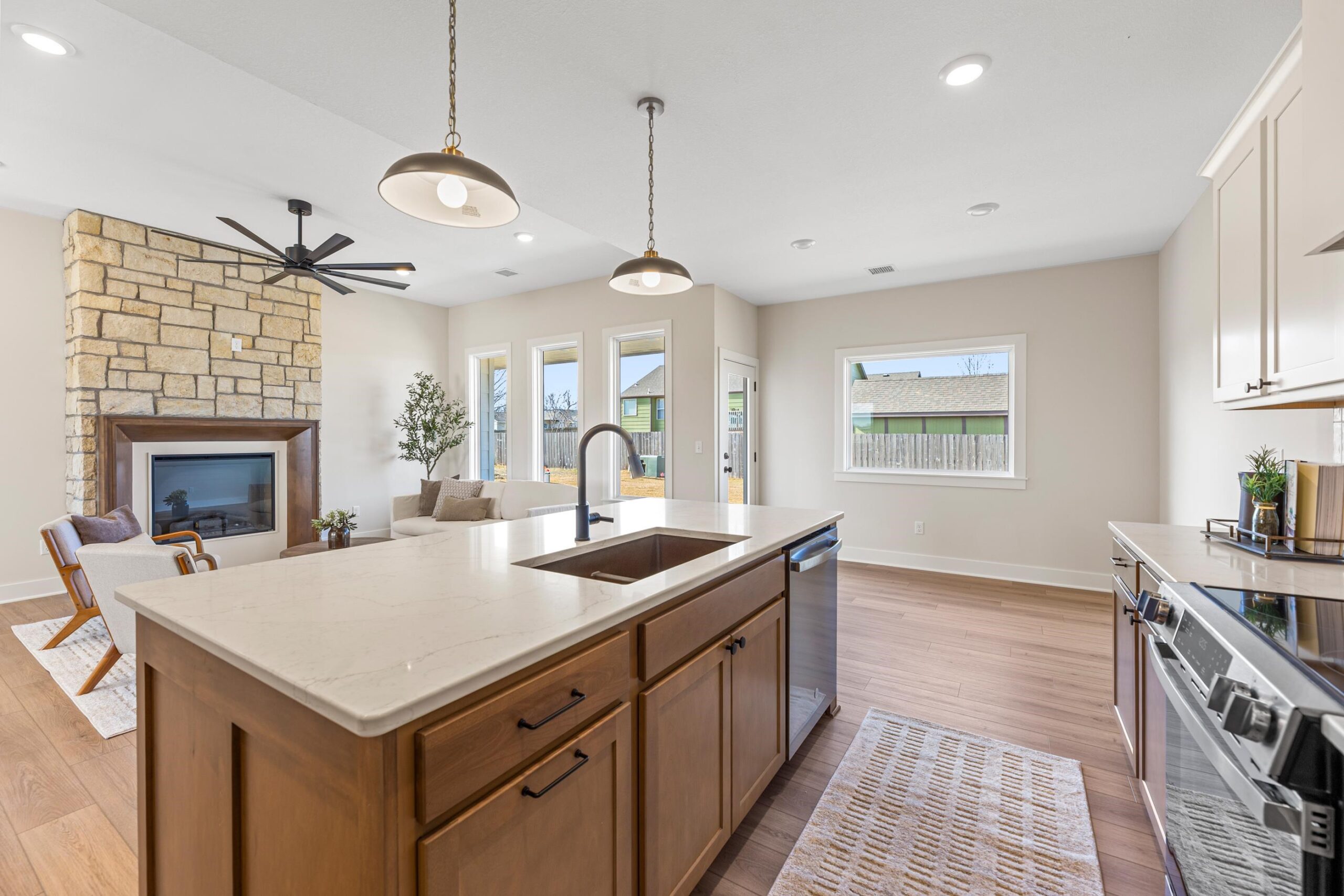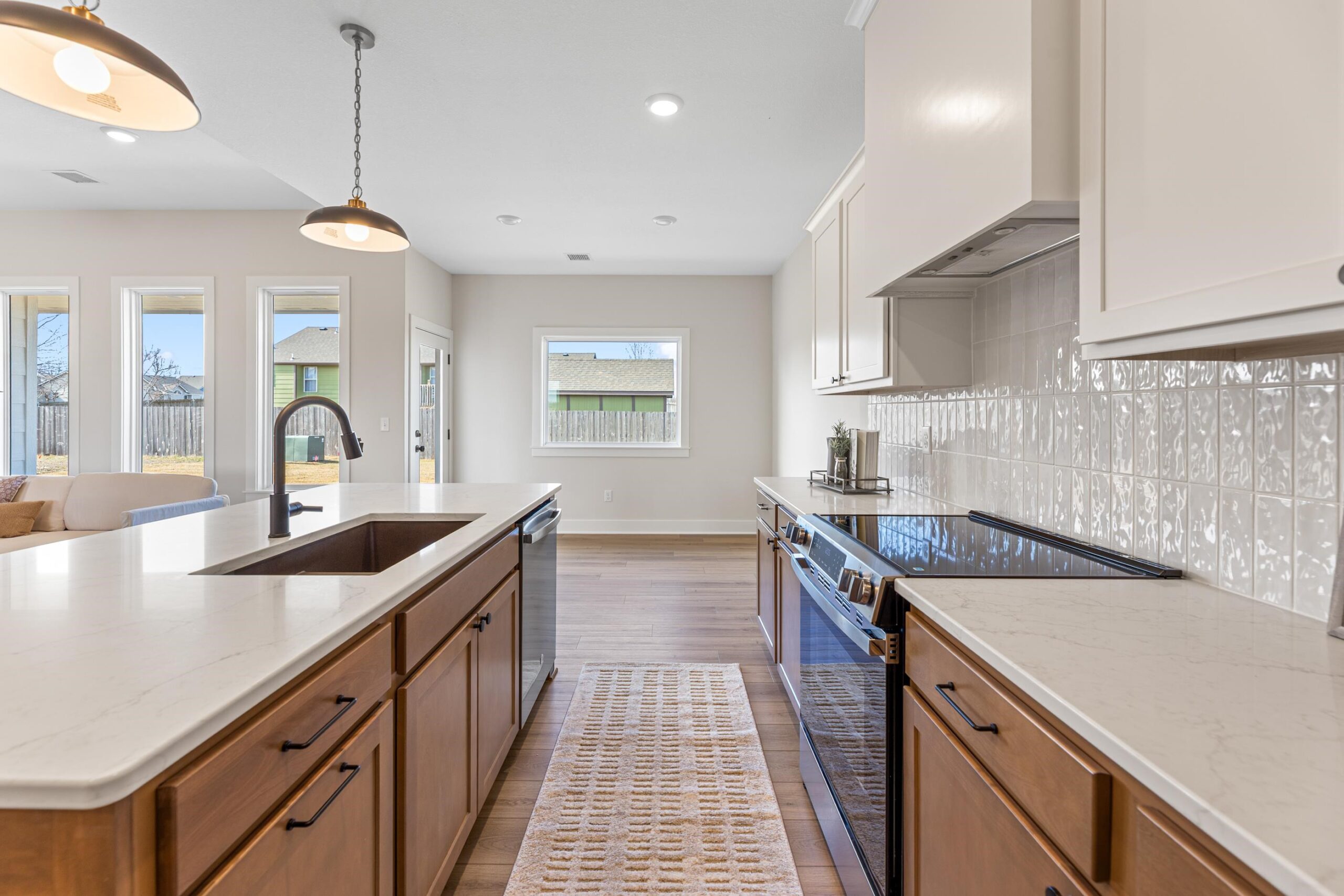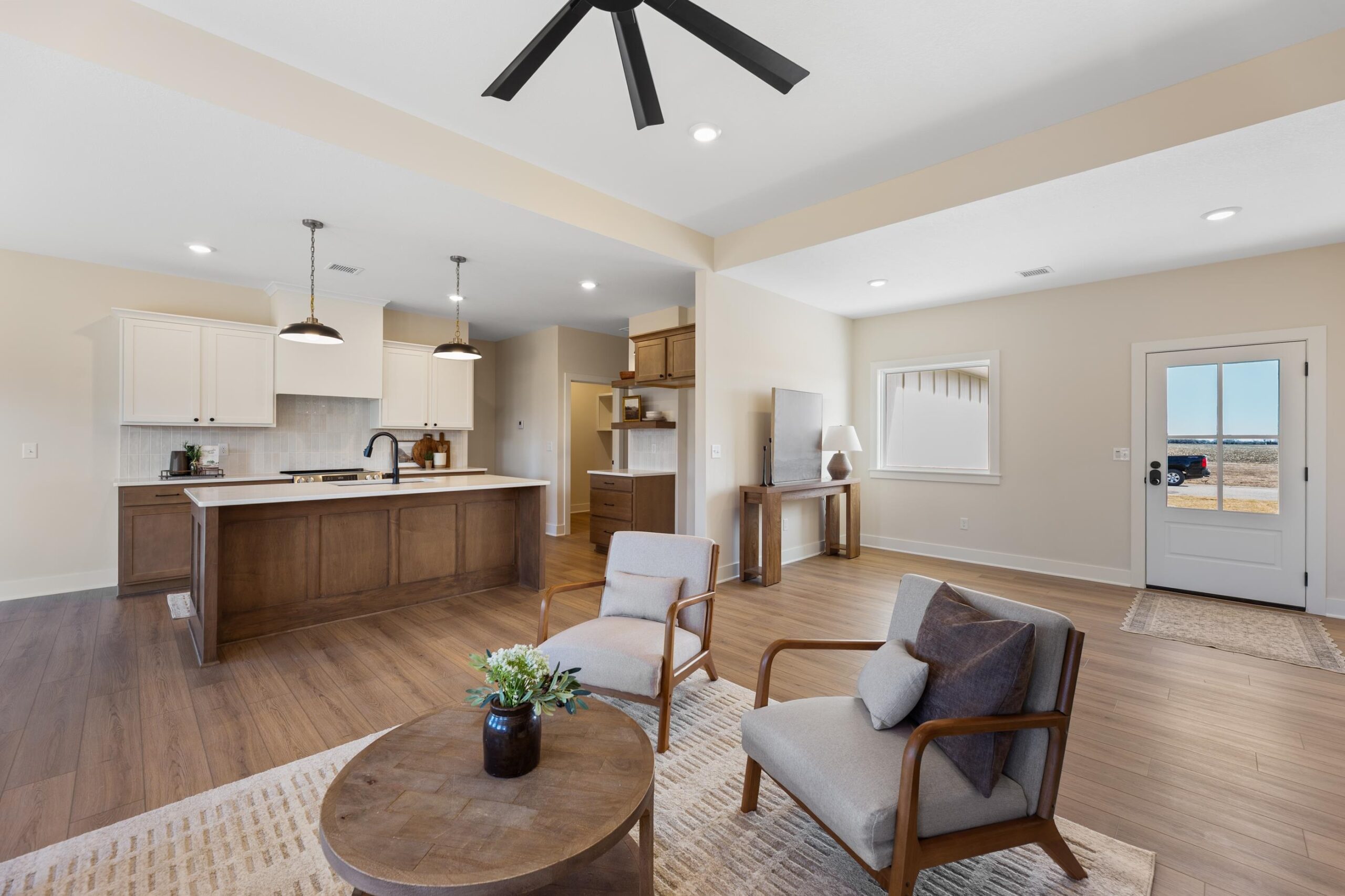 - Description: Welcome to this beautifully built 3-bedroom, 2-bath zero-entry home in Bentley, Kansas offering 1, 558 square feet of modern comfort and efficiency. This thoughtfully designed new build features an open-concept layout with a spacious kitchen island, walk-in pantry, soft-close cabinetry, quartz countertops, and luxury vinyl flooring throughout the main living areas. Energy-efficient upgrades include a 94% high-efficiency furnace, 15 SEER high-efficiency air conditioner, upgraded insulation, and Low-E windows for year-round comfort and savings. The exterior offers a fully irrigated and sodded lawn, a 3-car attached garage, and low HOA fees — all located in a quiet neighborhood setting. Show all description