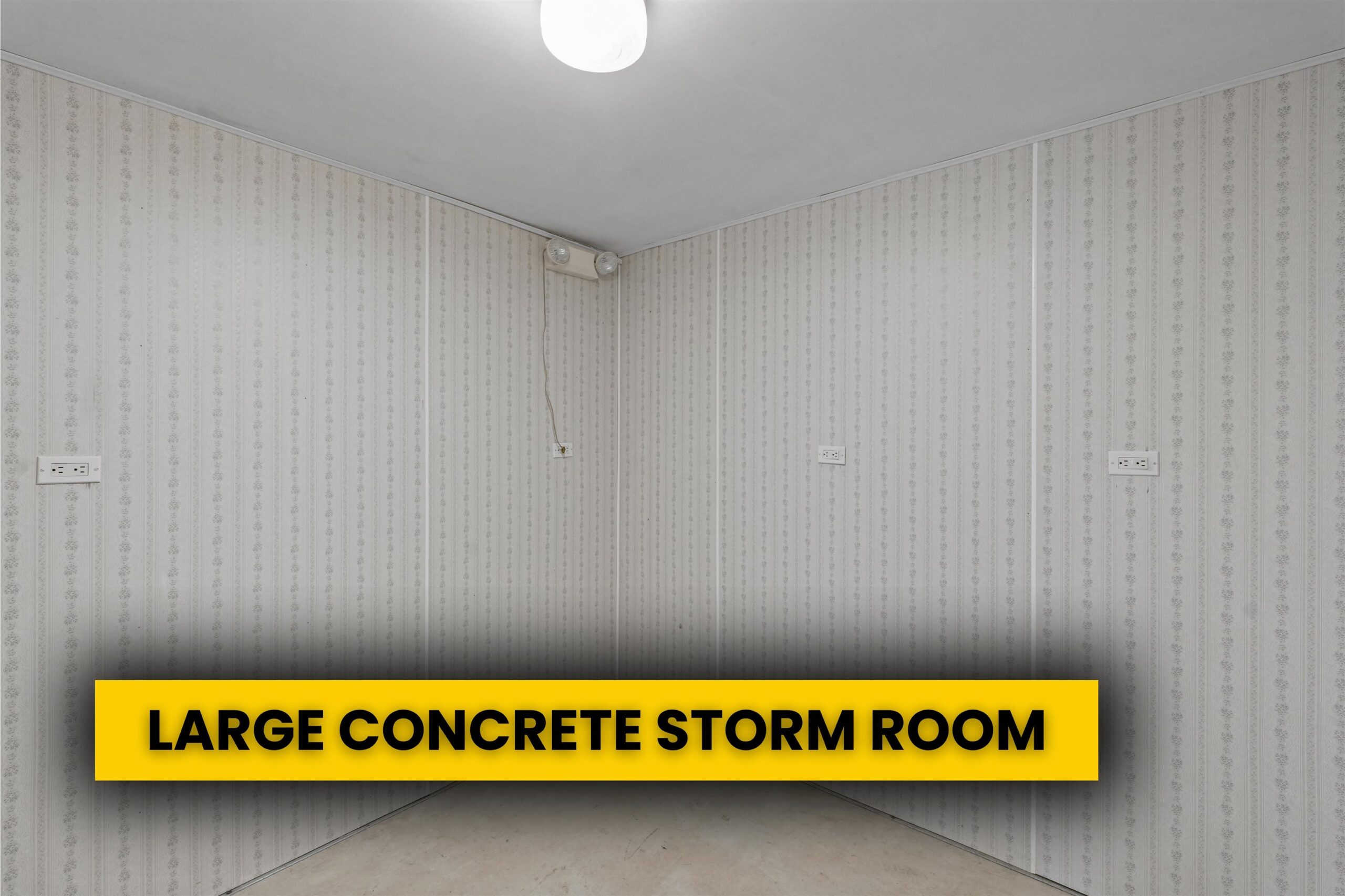 - Exterior Amenities: Guttering - ALL, Storm Shelter, Frame w/More than 50% Mas