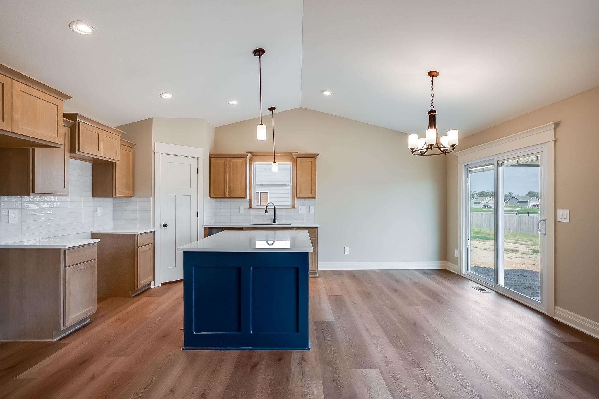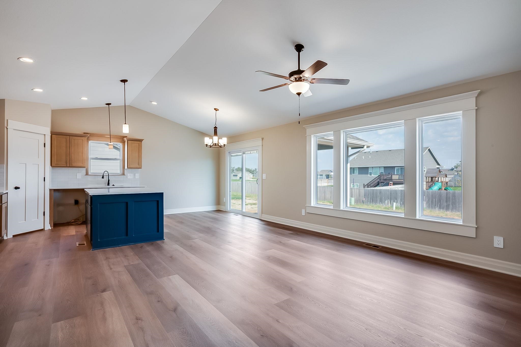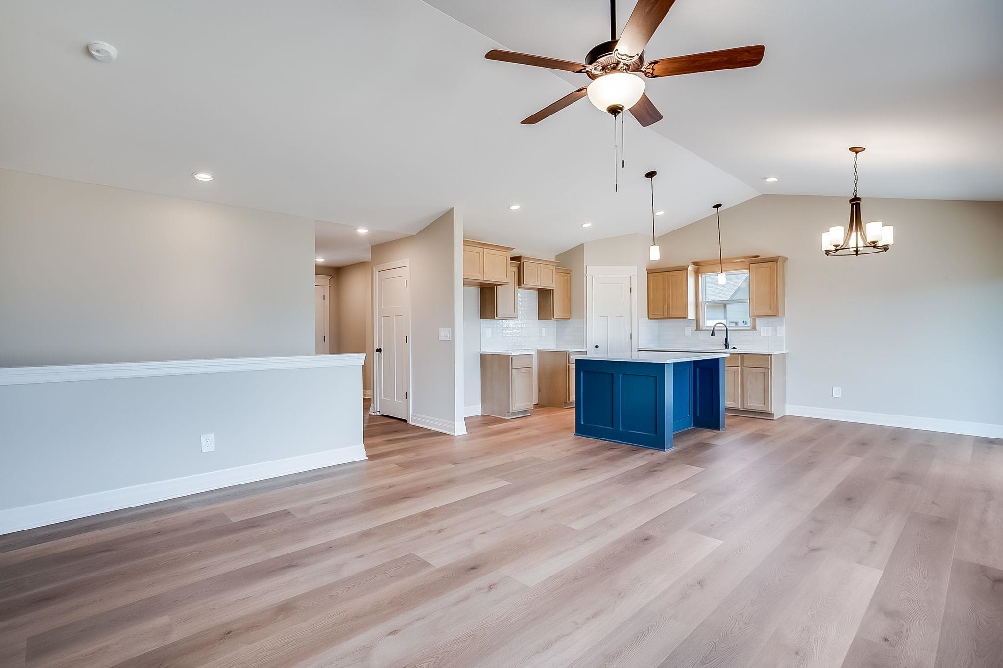 - Description: Welcome to the Brook Jr. 1204 floor plan! This home offers 2 bedrooms, 2 baths, an unfinished basement ready for expansion, a covered patio, and a 3-car garage. It features beautiful wood laminate flooring throughout, a striking open layout with vaulted ceilings, and a spacious primary bedroom with a large bathroom, dual sinks, a generous shower with sleek glass sliding doors, and a roomy walk-in closet. Don’t miss out on this amazing home—you won’t be disappointed! Show all description