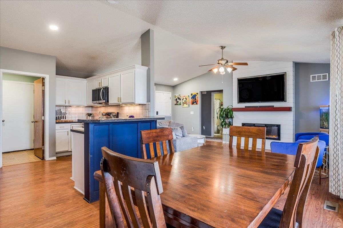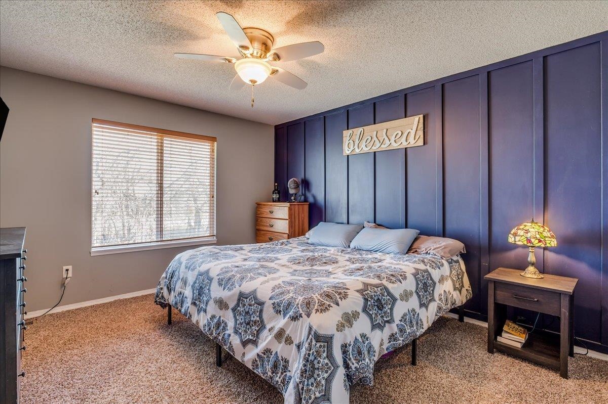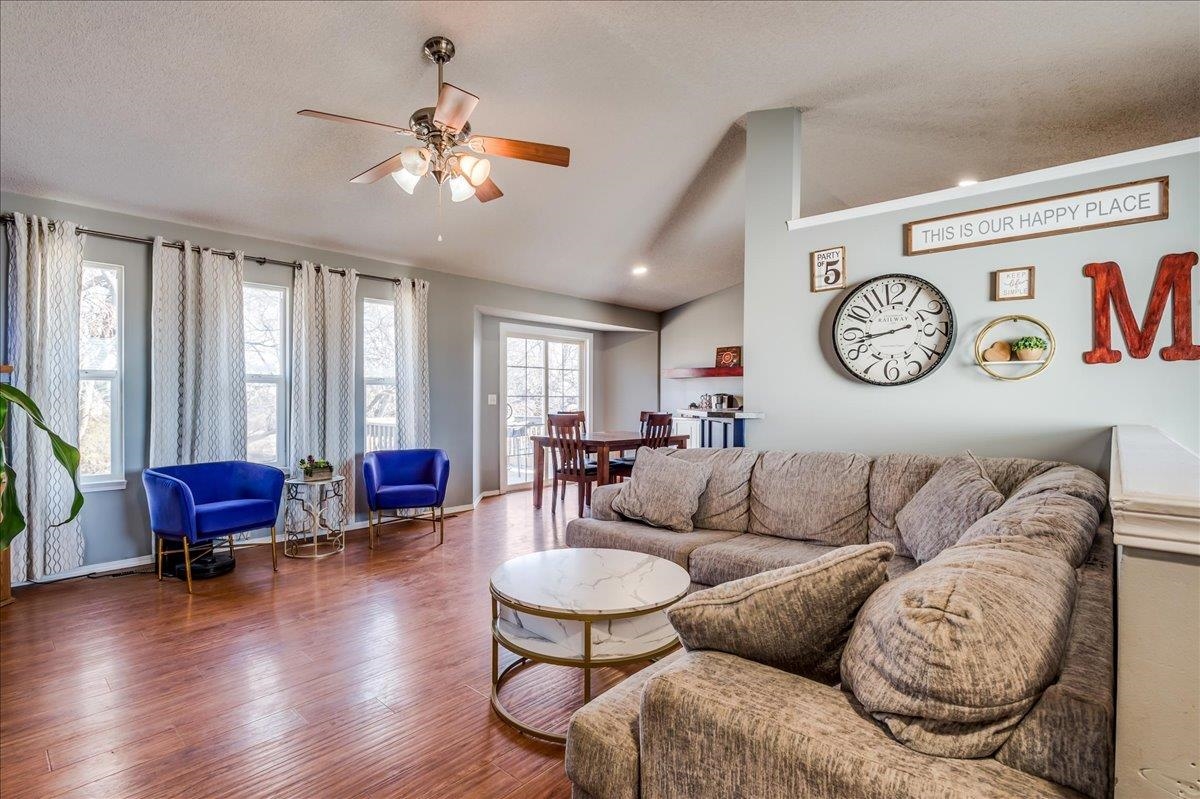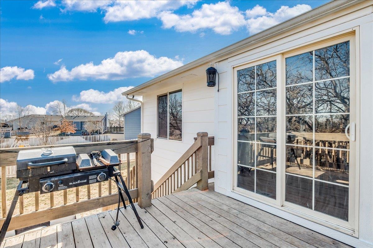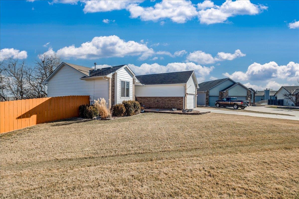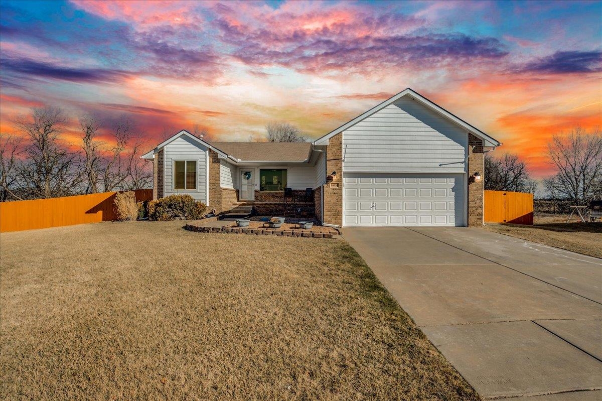 - Description: This lovely home sits in a cul-de-sac with a spacious yard that backs up to a row of trees with a view of farmland. Looking out the back windows of the home, you don't feel as though you are anywhere close to town, but you are! Conveniently located just north of K42 and Maize Rd gives you easy access to Pawnee Prairie Park! You are in the Goddard School District. Upon entering the home, you walk into the open floor plan living room, dining kitchen area. The main floor laundry is in the mud room off of the garage. The master bedroom is off of the dining area, while the other two main floor bedrooms are across the living room. View out basement features a theatre room with sound dampened walls, surround sound and solid door, three bedrooms, a bathroom, and two storage areas. Sprinkler system with well. Water softener with reverse osmosis. New exterior paint New kitchen appliances New fireplace Fresh paint through out the main floor New Carpet in the Primary Suite New Patio door New fence for the yard Show all description