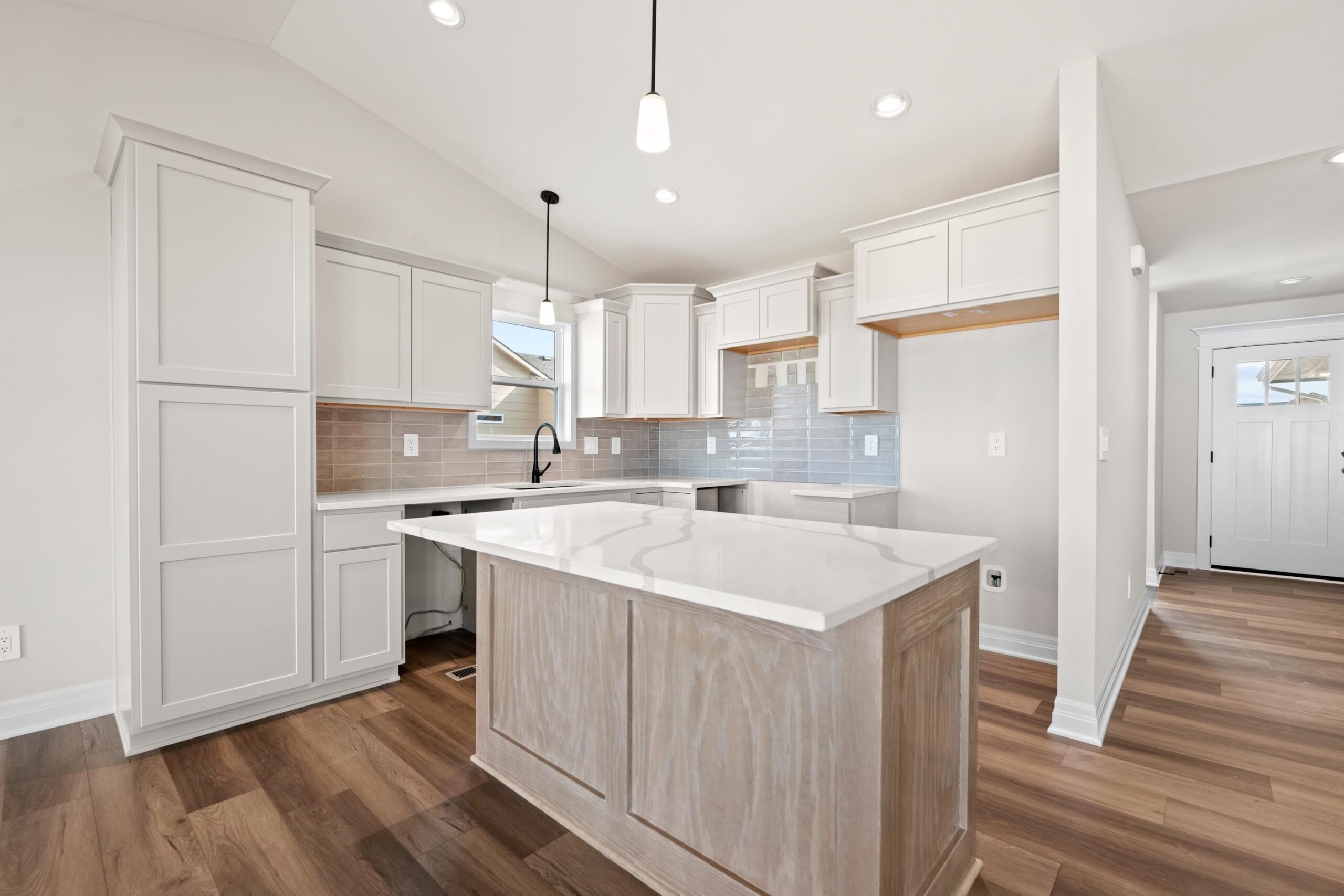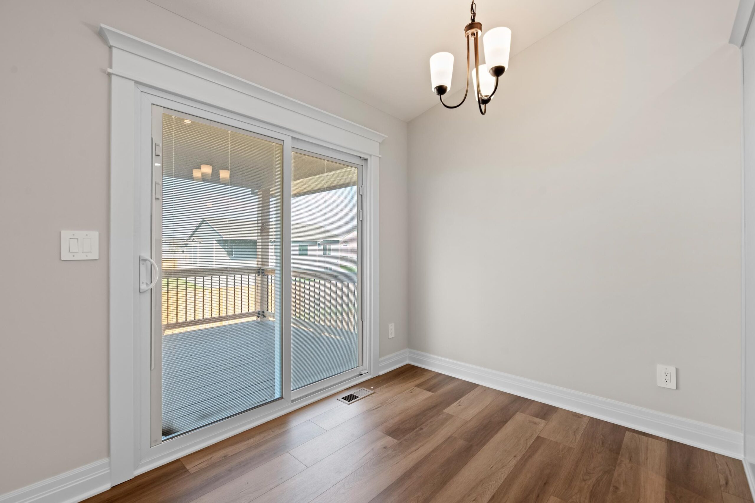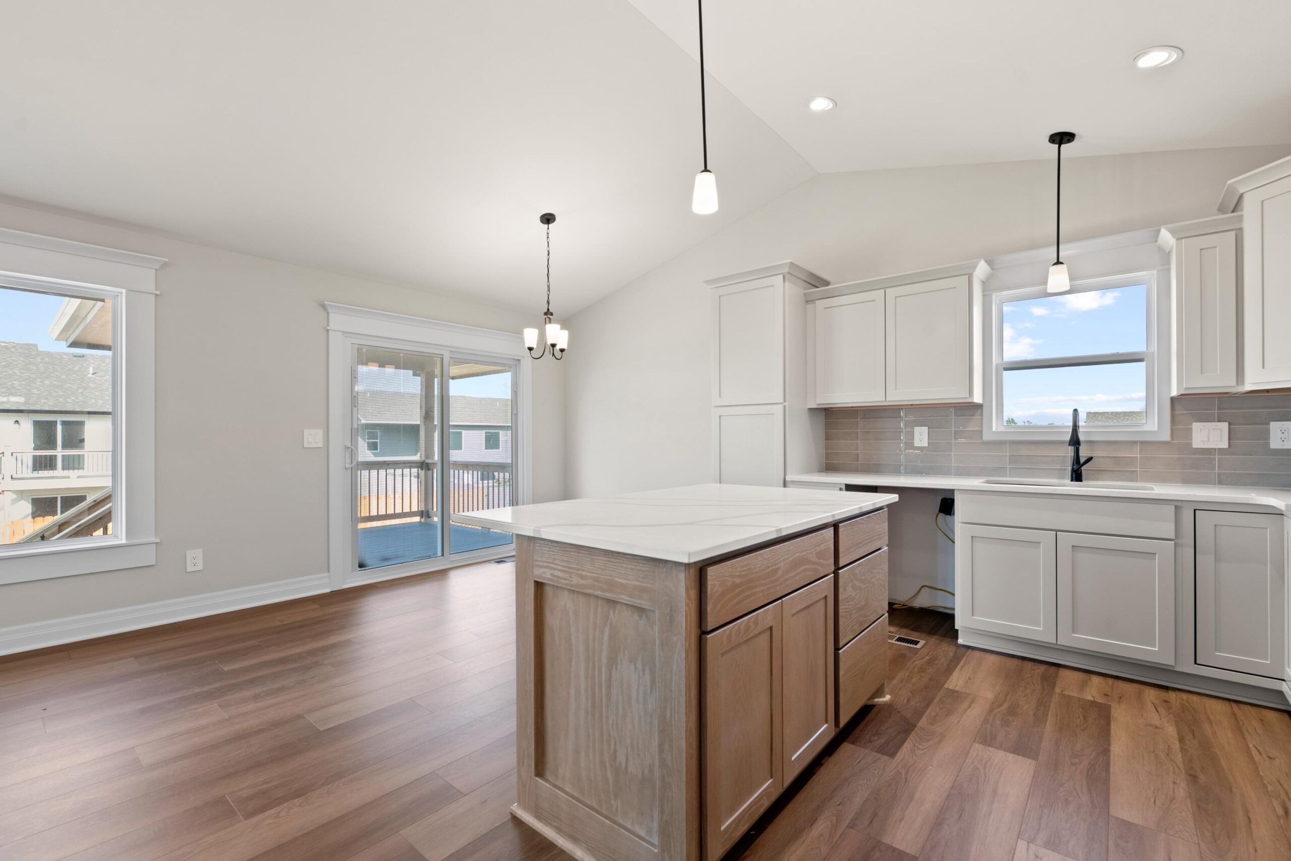 - Description: The "Brook Jr" floor plan features 2 bedrooms, 2 baths, a 3-car garage, LVT flooring in the main living area, dining room, and kitchen. The kitchen includes a stove/range, dishwasher, microwave, disposal, and cabinets with soft-close doors and drawers. There's a main floor laundry, a full unfinished view-out basement, and a covered wood deck. Model homes are open daily from 1 to 5, except on Fridays, which are by appointment only. Show all description
