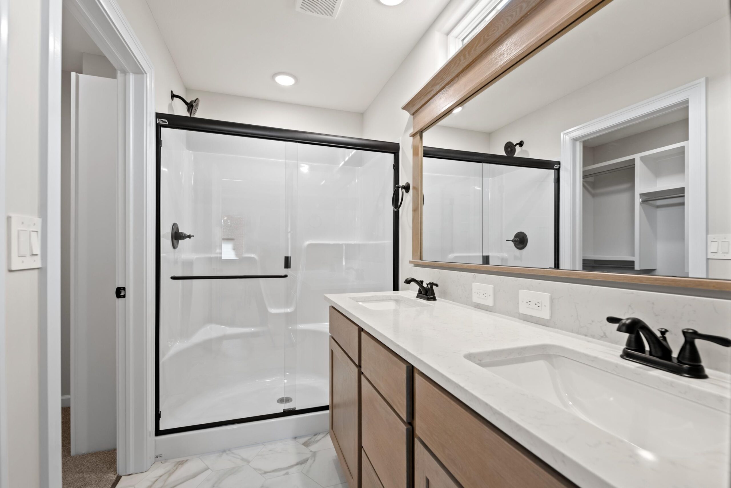 - Master Bedroom: Master Bdrm on Main Level, Master Bedroom Bath, Shower/Master Bedroom, Two Sinks, Quartz Counters
