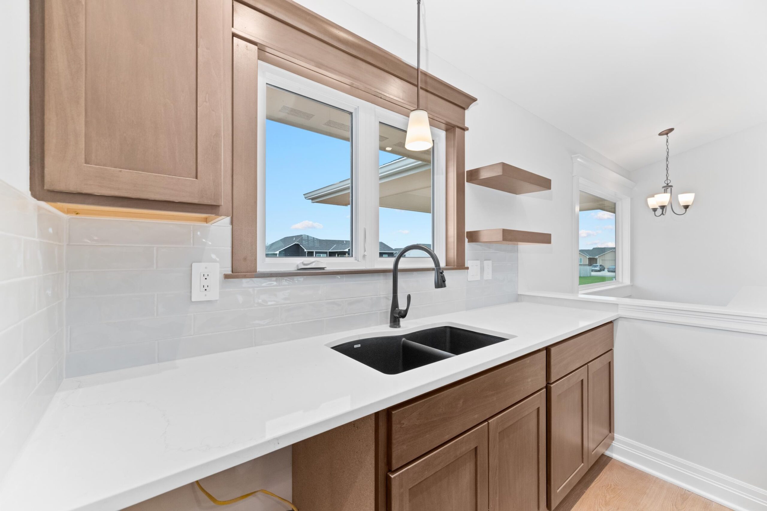 - Description: The "Autumn Jr." is almost ready! It features 3 bedrooms, 2 baths, a full unfinished basement, view out w/covered deck and a 3-car garage. The main living area boasts stunning luxury trim and flooring, with quartz countertops throughout the home. Nestled in the beautiful Eagle's Nest 2nd neighborhood, it's in the Maize school district and conveniently close to shopping. Show all description