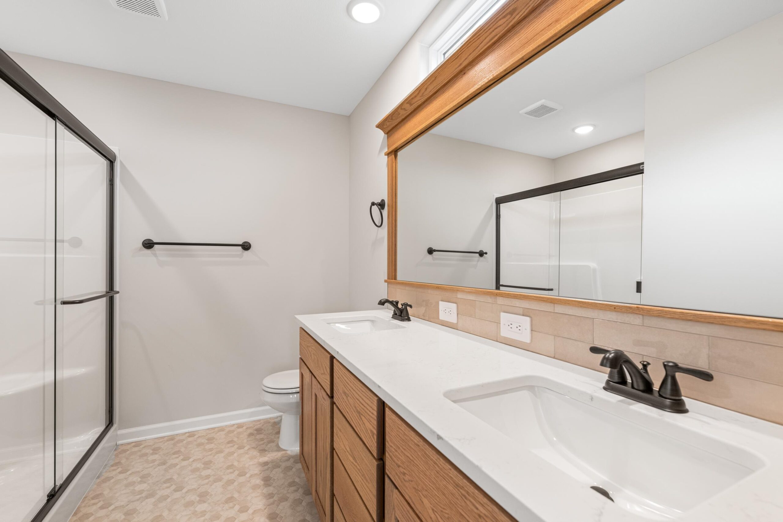 - Master Bedroom: Master Bdrm on Main Level, Split Bedroom Plan, Shower/Master Bedroom, Two Sinks, Quartz Counters