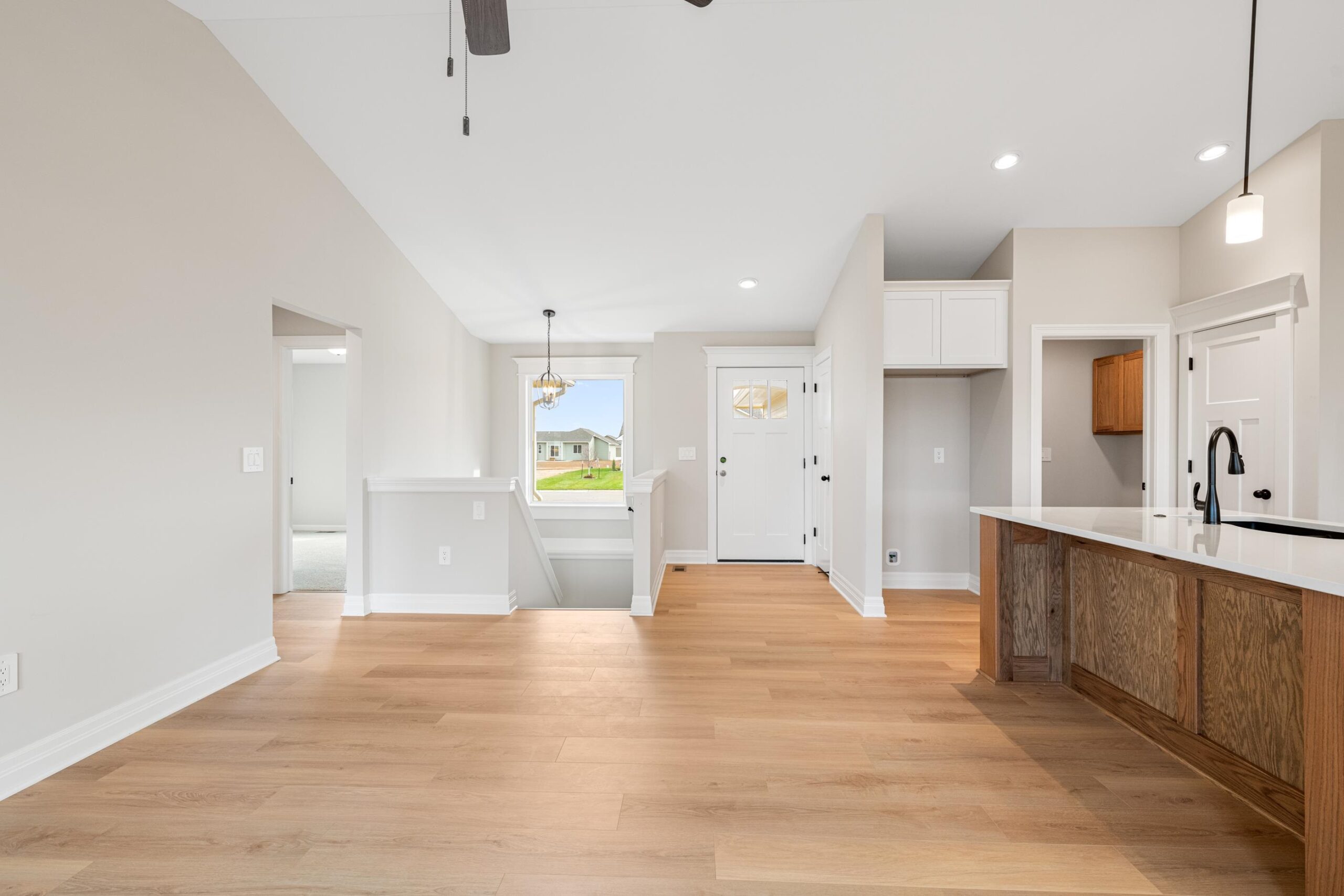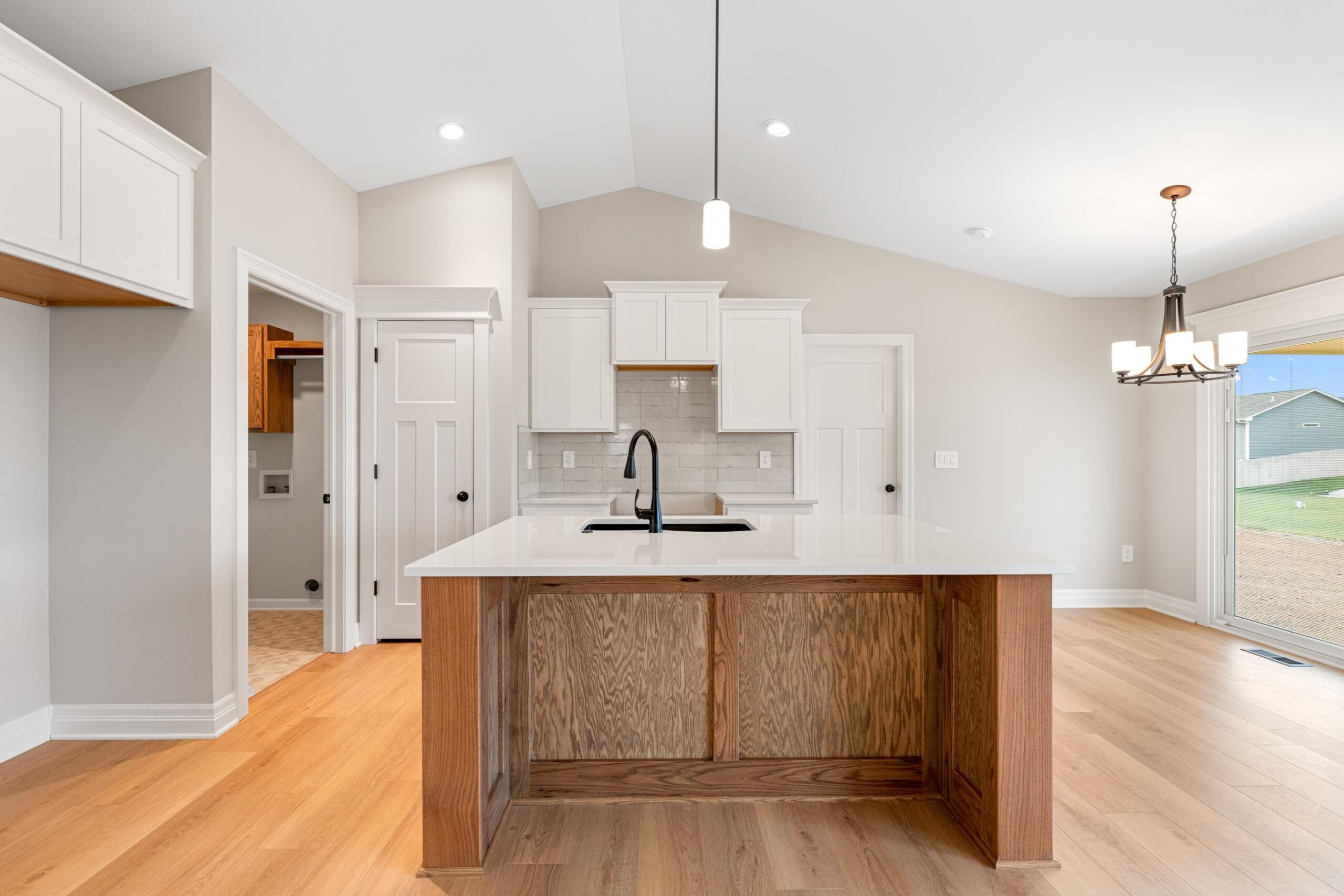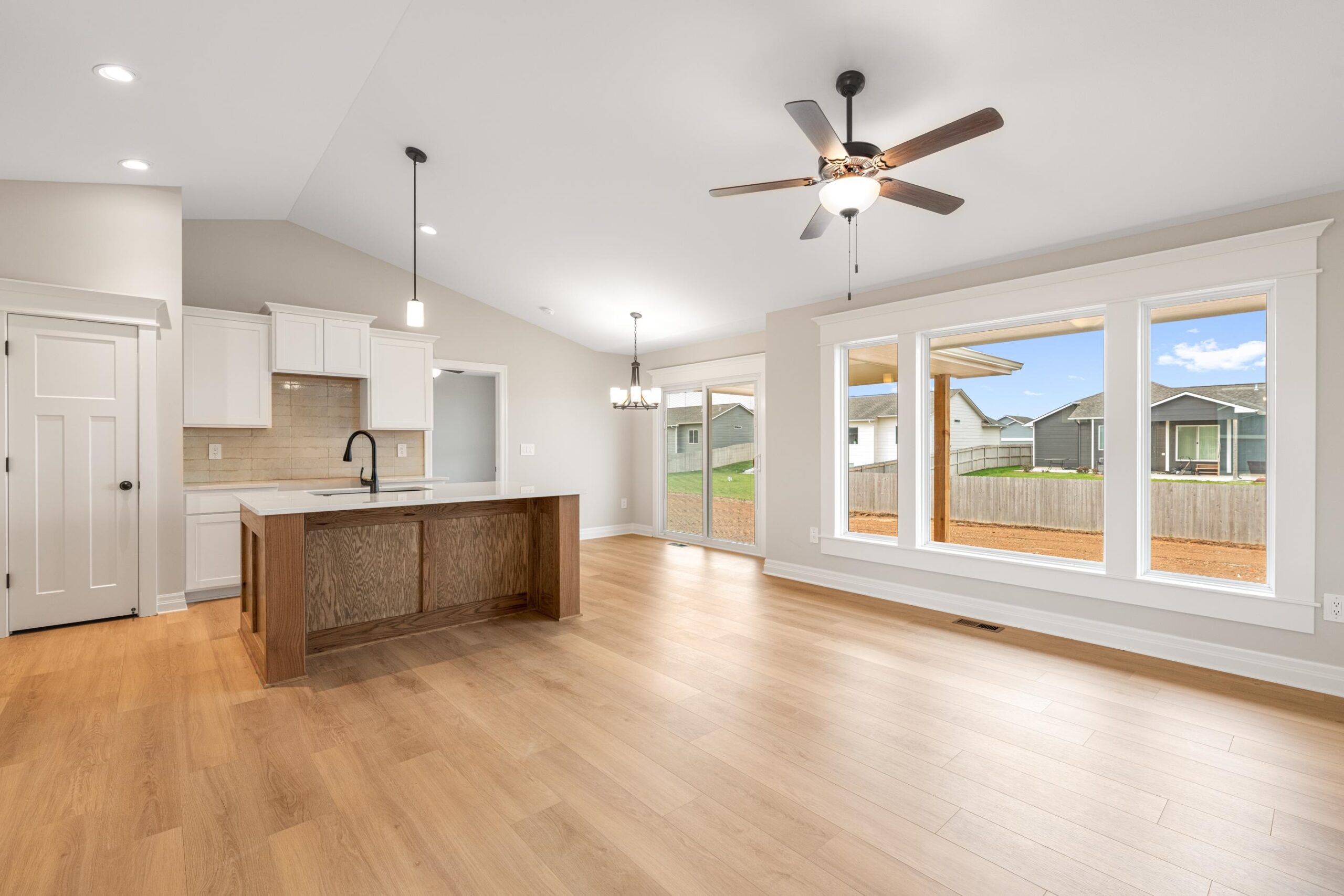 - Description: Presenting the Nick Jr Open Floor Plan with vaulted ceilings, 3 bedrooms, 2 baths, a 3-car garage, covered patio, and room to grow in the unfinished basement. Wood laminate flooring runs throughout the main living areas, while the bedrooms are carpeted. Enjoy plenty of daylight through the beautiful trimmed large windows in a great location and neighborhood. Show all description