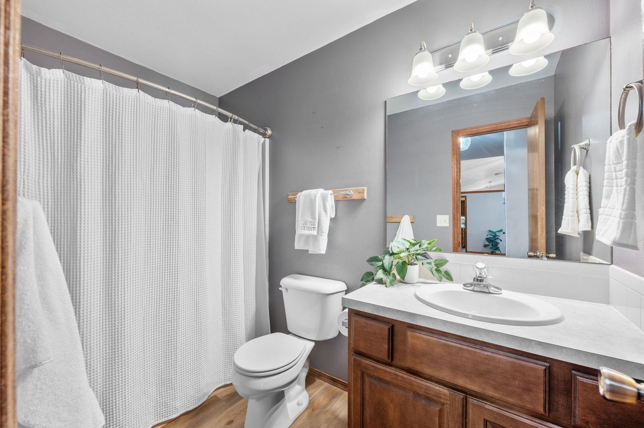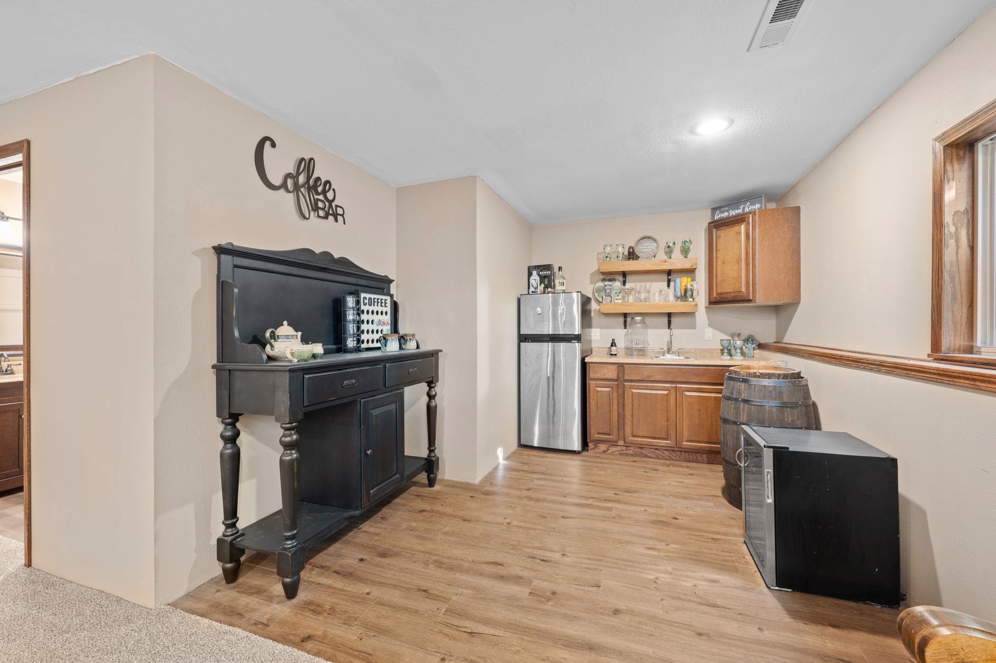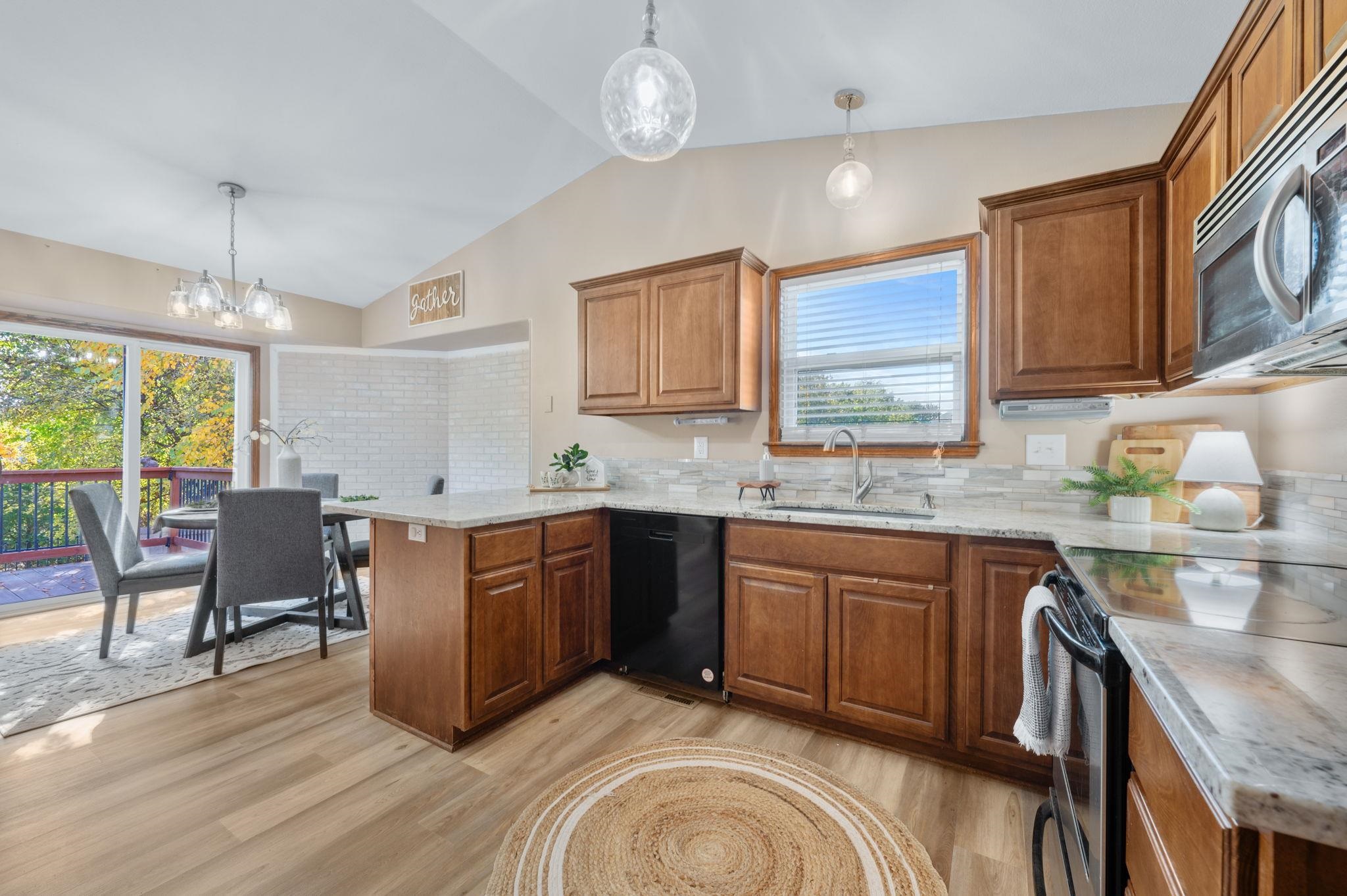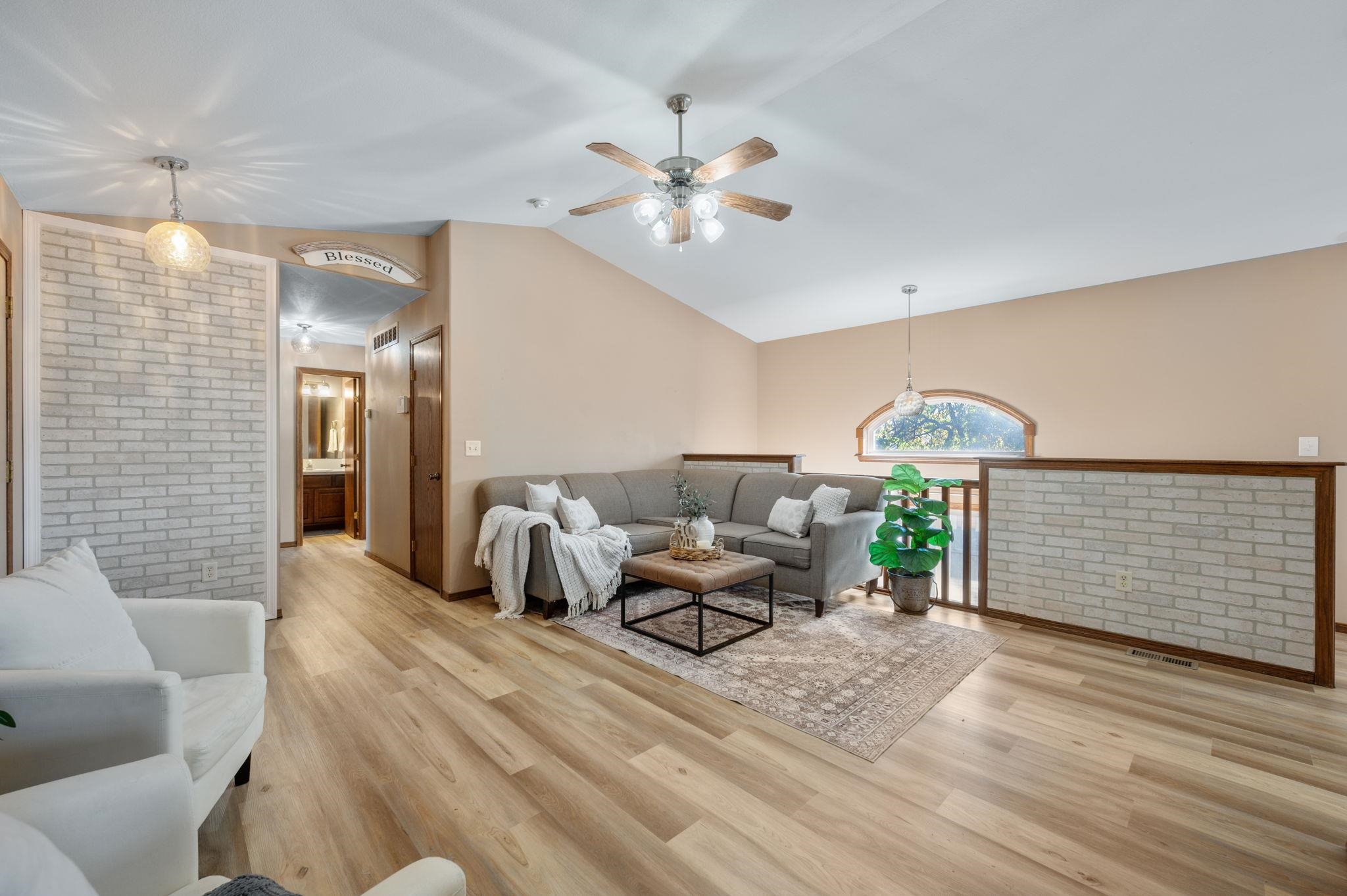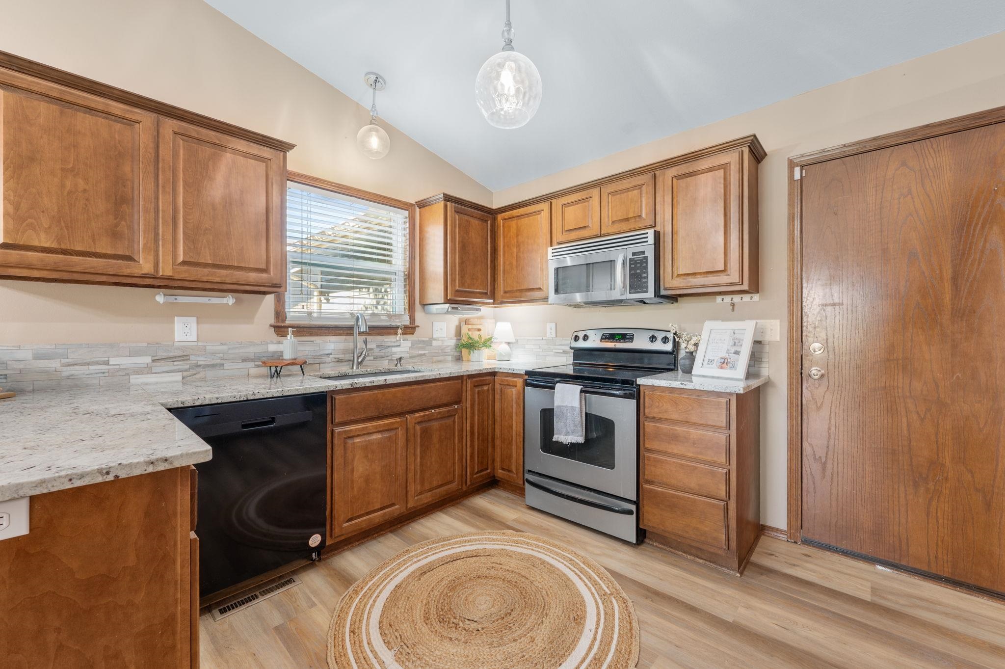 - Description: Welcome home to Southern Ridge! BACK ON THE MARKET WITH ALL NEW FLOORING!!! This 3 bed (with space to put a 4th in basement), 3 bath beauty greets you with a NEW roof, NEW guttering, and a freshly painted exterior. Inside, the open living room features a 10’ vaulted ceiling, new wood-laminate flooring, new carpet upstairs in the bedrooms and updated light fixtures. The remodeled kitchen shines with tile backsplash, granite countertops with a composite sink, stainless appliances, and a large breakfast bar—perfect for everyday meals or hosting. The primary suite offers a vaulted ceiling, walk-in closet, and en-suite with double sinks, shower, and jetted tub. The view-out basement adds a spacious family room with brand-new carpet and a wet bar. Need more space? There’s room to easily add a 4th bedroom while still keeping generous storage, plus a large laundry room and two additional storage areas. Neighborhood amenities include a zero-entry saltwater pool, playground, sport court (tennis & basketball), several walking paths, and two stocked community ponds. Located in the Goddard School District. Schedule your showing today! Show all description
