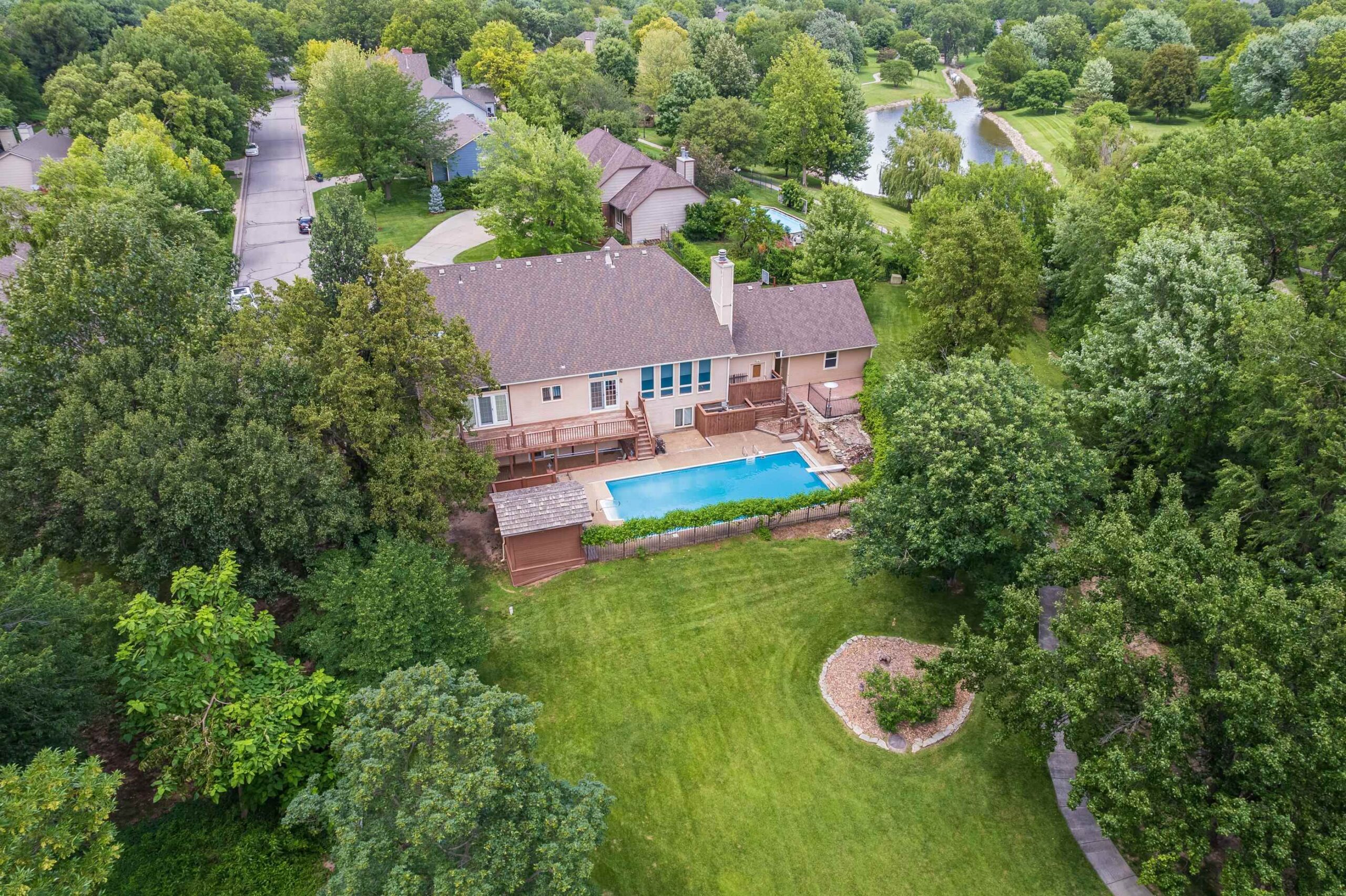 - Description: Welcome to one of West Wichita’s most coveted neighborhoods—where comfort, space, and privacy meet. This remarkable 6-bedroom, 4.5-bath home offers over 5, 000 square feet of meticulously designed living space, ideal for both everyday living and unforgettable entertaining. Inside, you’ll find soaring ceilings, a spacious catwalk, and expansive gathering areas that are perfect for hosting friends and family. Retreat to your private backyard oasis, complete with a massive 33, 000-gallon heated saltwater pool, a brand-new pump, and a relaxing water fountain feature. The walkout basement opens to a charming pool house, and mature trees line the property to provide natural shade and privacy—all situated on .6 of an acre right in town. Every bedroom in the home features a walk-in closet, with the exception of one basement bedroom.The rare five-car garage provides ample space for vehicles, tools, and toys. In addition too, there is plywood flooring in the attic for additional storage. Homes like this rarely hit the market! Show all description