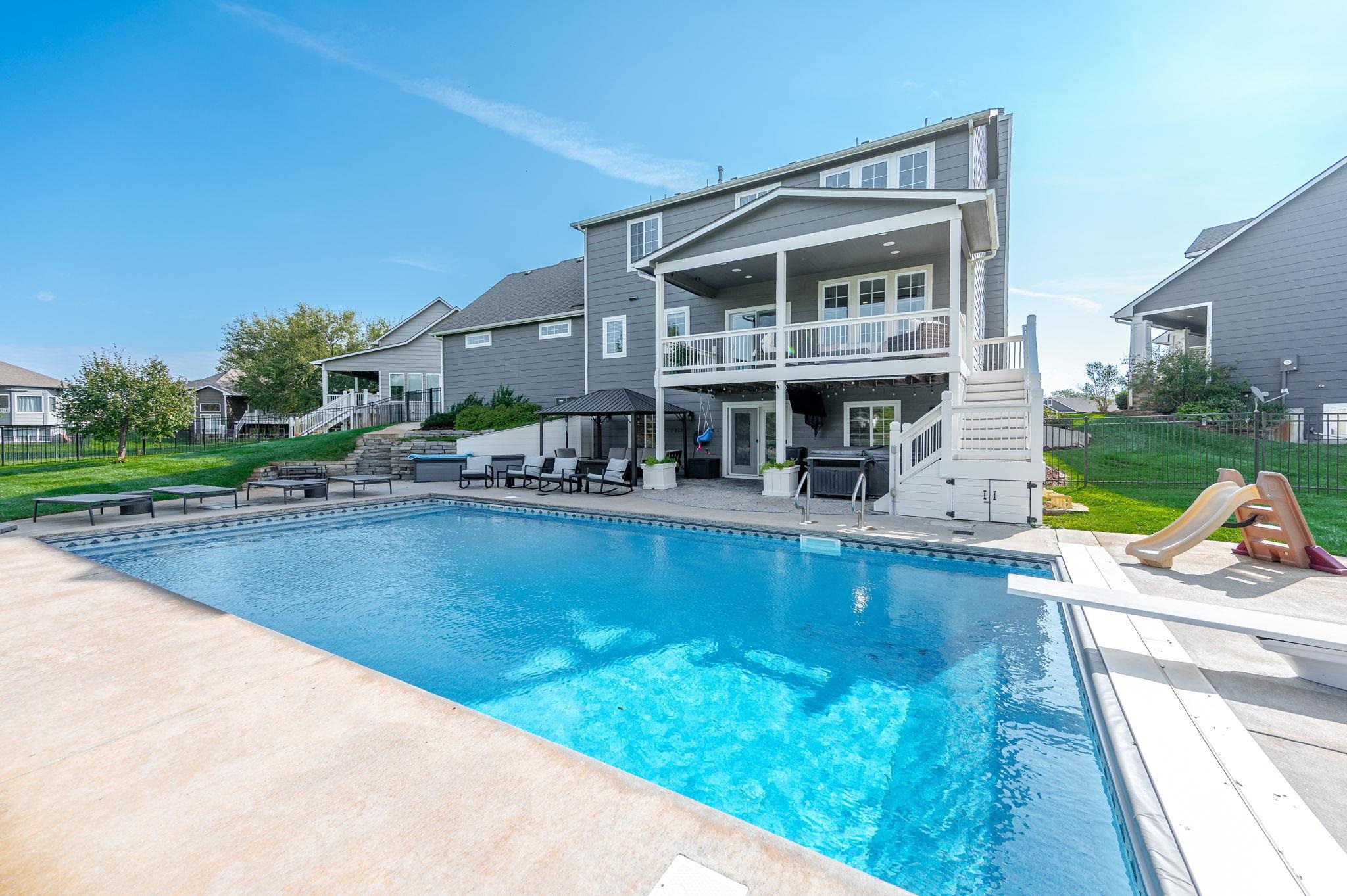 - Description: Nestled at the end of a quiet cul-de-sac in Valley Center, this two-story beauty with its charming front porch and classic window shutters looks like it was pulled straight from your favorite Pinterest board. From the moment you step inside, you’ll fall in love with the unique and inviting floor plan, designed to impress and feel like home all at once. The main level boasts a formal living room anchored by a cozy fireplace, a casual living room just off the kitchen for everyday gatherings, and a chef-inspired kitchen complete with a custom island, upscale cabinetry, gas stove, and high-end finishes. A formal dining room ties the space together, highlighted by the most stunning staircase you’ve ever seen—truly the kind of grand entrance you’d expect from a movie scene. Upstairs, the spacious primary suite offers a luxurious retreat with a soaking tub, separate shower, water closet, walk-in closet, and a large double-sink vanity. Three additional bedrooms and another full bathroom provide plenty of space for family and guests, while a fifth oversized bedroom with its own ensuite bath and walk-in closet offers incredible flexibility as either a private suite or an upstairs living room. The walkout basement continues to impress with a nonconforming bedroom currently used as a dream workout room, a sixth true bedroom, a full bathroom, and a large rec room featuring custom built-ins and a wet bar. It’s the perfect space for entertaining, relaxing, or accommodating guests. Step outside into your very own backyard retreat. A five-year-old underground pool with an automatic cover sets the stage for endless summer fun, while the large fenced yard overlooks peaceful water views and picture-perfect Kansas sunsets. The covered composite deck is ideal for year-round entertaining, providing a beautiful vantage point to enjoy your backyard oasis. Every design choice and finish in this home has been thoughtfully curated and feels like it belongs on the pages of a magazine. With its timeless style and “better than new” feel, this Valley Center gem is one you won’t want to miss. Schedule your private showing today and fall in love for yourself! Show all description