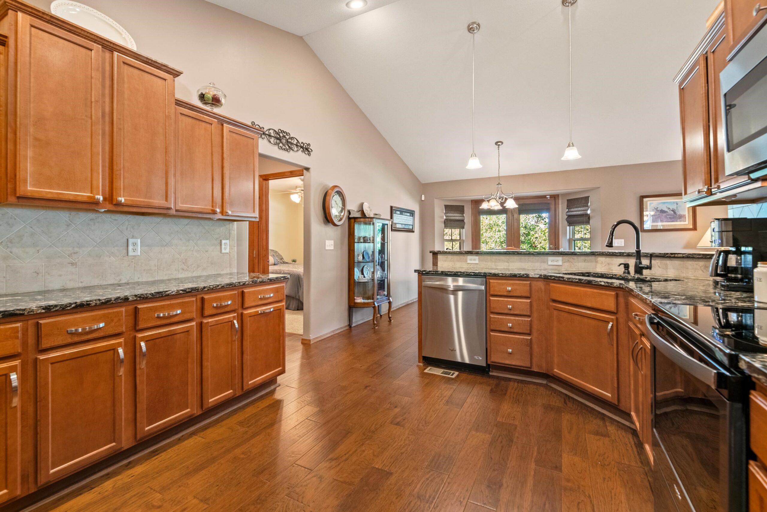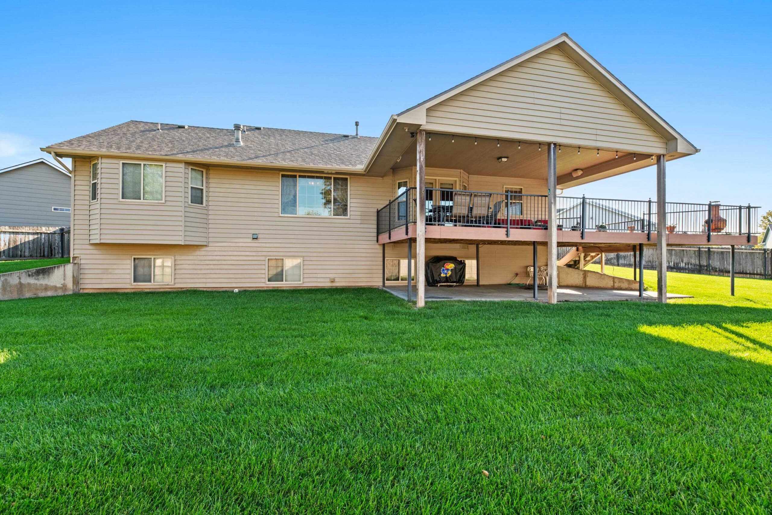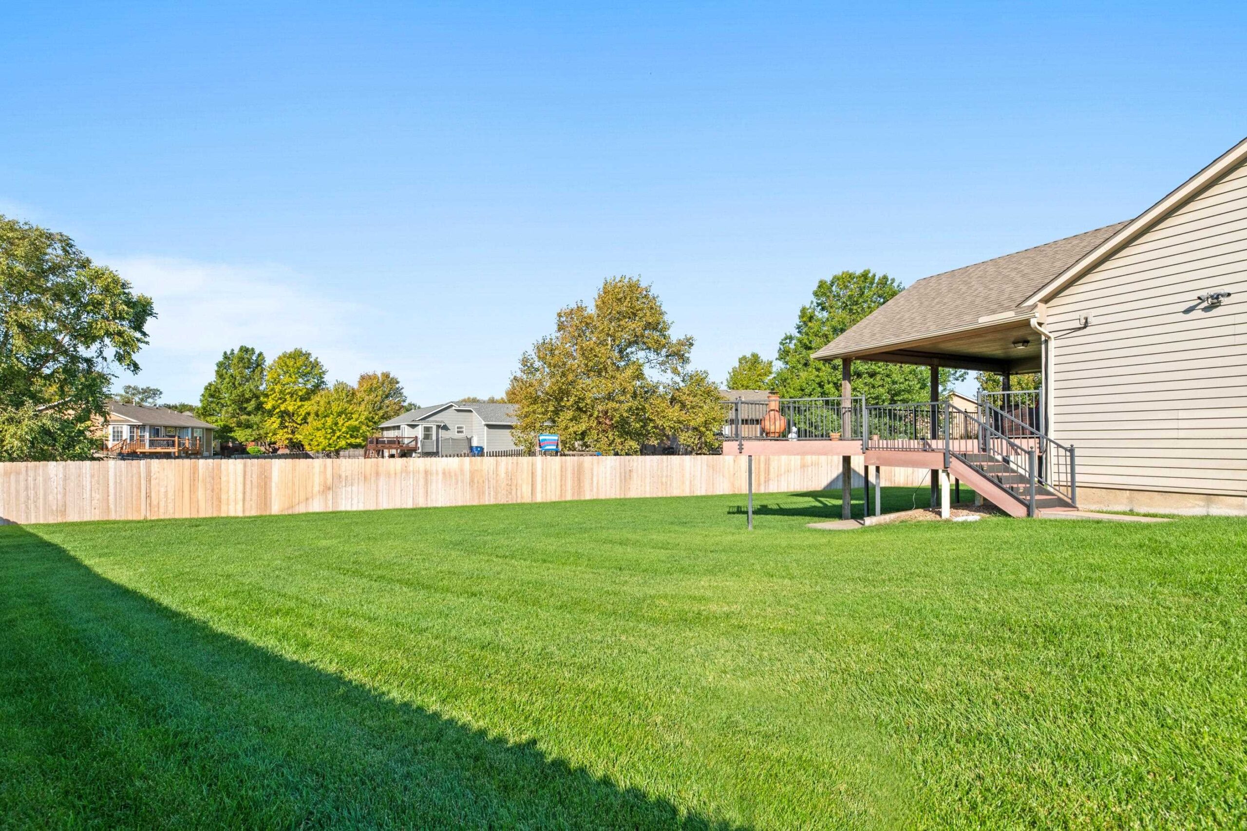 - Description: NO SPECIALS! This 5-bedroom home in the Maize USD 266 school district features an open layout with space for a large kitchen table and formal dining. Natural light fills the home through three bay windows, highlighting engineered wood floors and fresh paint. The split bedroom floor plan offers a private primary suite with two walk-in closets, dual sinks, a jetted tub, and a separate shower. The finished basement includes a wet bar, family room, two bedrooms, and a bonus room which can be used as a non-forming 6th bedroom, additional finished storage space, hobby room or a workout room, which is how it is currently been used. Outside, the 1/3-acre lot is professionally landscaped with an irrigation well, sprinkler system, and exterior lighting. An oversized garage with built-in storage and 8-foot doors provides plenty of space for parking large vehicles and workshop space. Roof has High Impact Class 4 shingles. Located most conveniently near shopping and dining at New Market Square. All this beautiful home needs is you! Show all description
