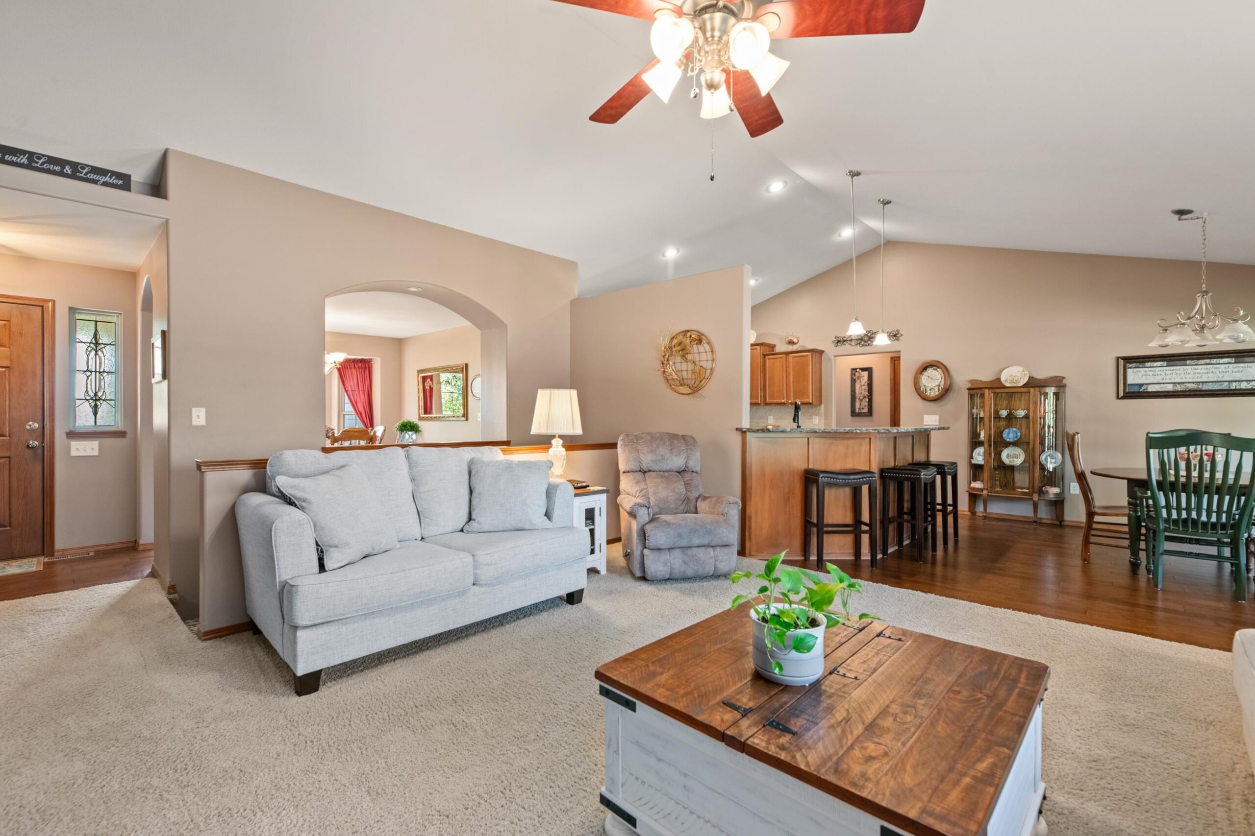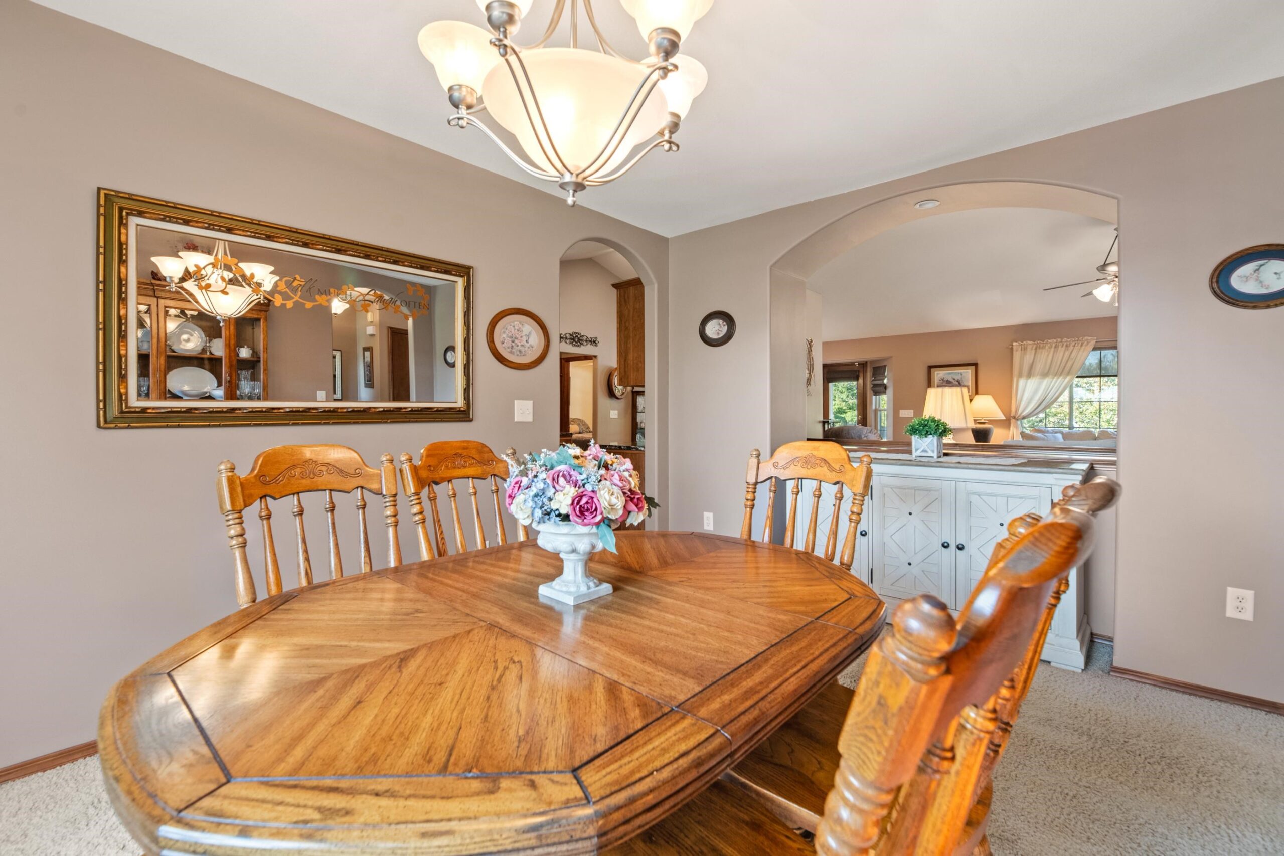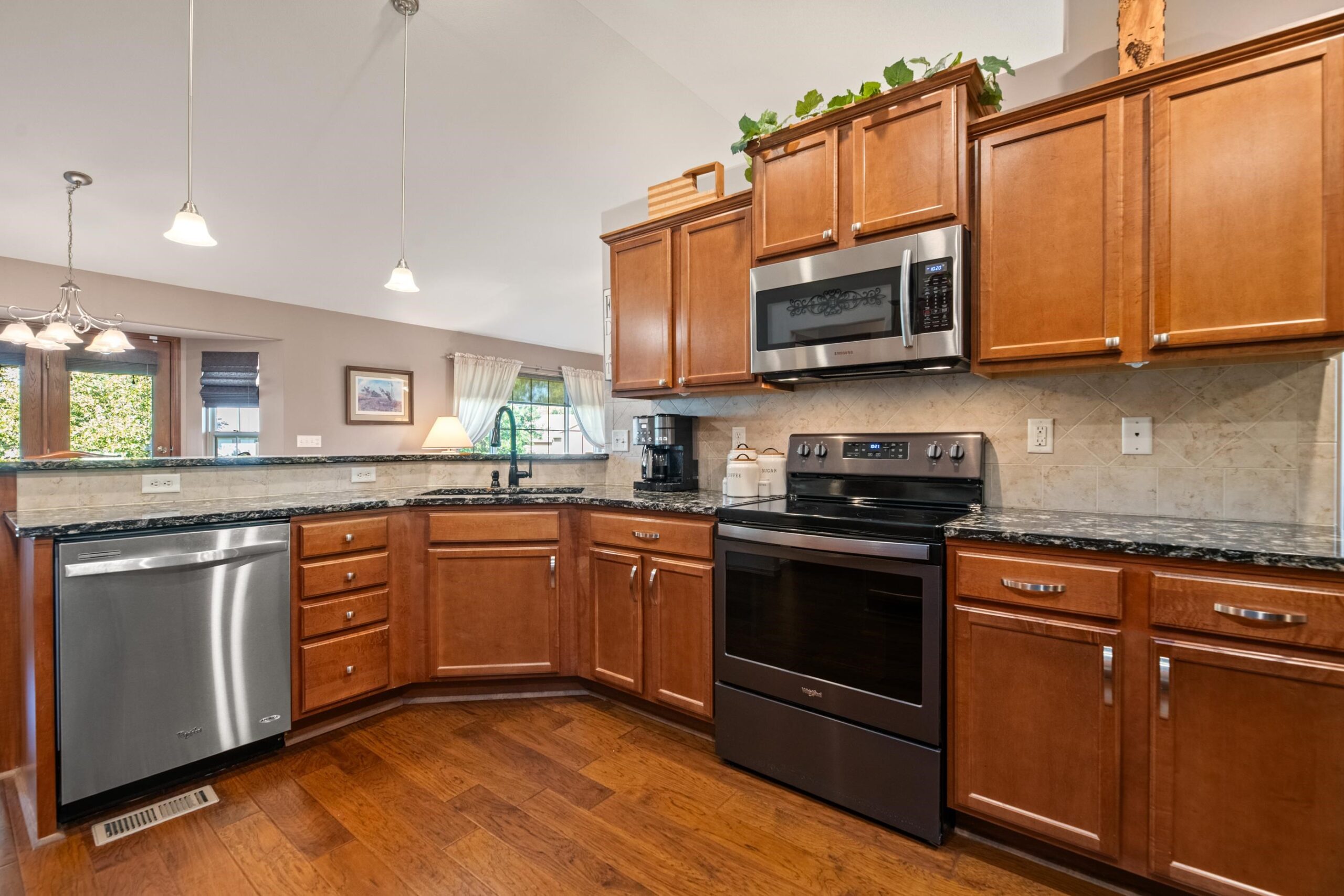 - Description: NO SPECIALS! This 5-bedroom home in the Maize USD 266 school district features an open layout with space for a large kitchen table and formal dining. Natural light fills the home through three bay windows, highlighting engineered wood floors and fresh paint. The split bedroom floor plan offers a private primary suite with two walk-in closets, dual sinks, a jetted tub, and a separate shower. The finished basement includes a wet bar, family room, two bedrooms, and a bonus room which can be used as a non-forming 6th bedroom, additional finished storage space, hobby room or a workout room, which is how it is currently been used. Outside, the 1/3-acre lot is professionally landscaped with an irrigation well, sprinkler system, and exterior lighting. An oversized garage with built-in storage and 8-foot doors provides plenty of space for parking large vehicles and workshop space. Roof has High Impact Class 4 shingles. Located most conveniently near shopping and dining at New Market Square. All this beautiful home needs is you! Show all description