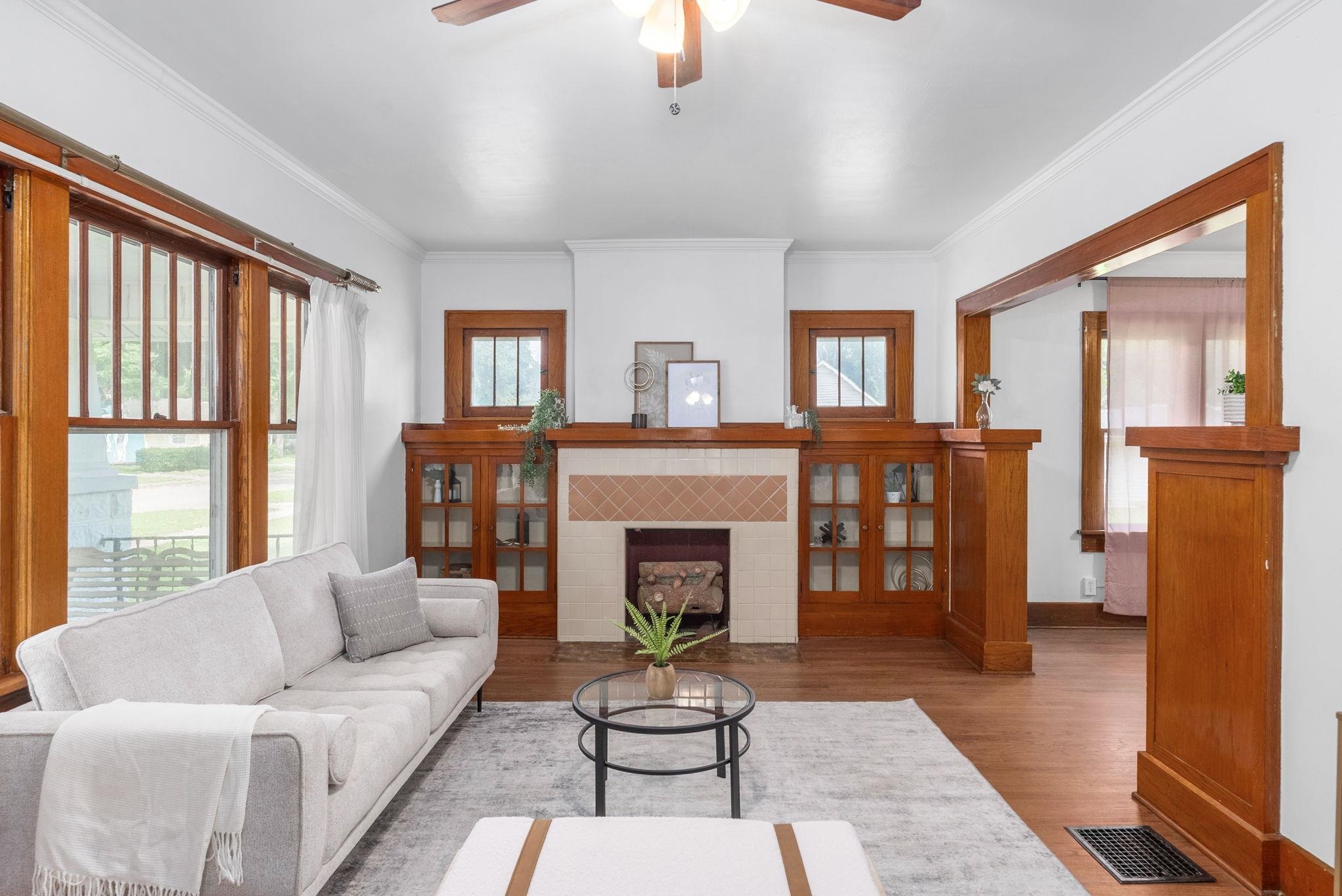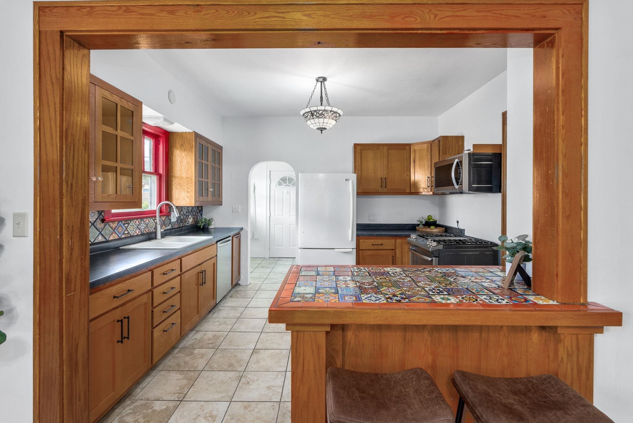 - Description: Hi, I’m Jackson! Nestled near Riverside, I have 2-bedrooms, 1-bathroom and I’m full of character, space, and potential. Step inside to find hardwood floors, spacious rooms, and stunning windows that showcase my classic charm. A formal dining space sits in between the living area and the kitchen. Decorative Spanish tile throughout adds warmth and artistic flair. In the basement, you can turn me into whatever you want by finishing out additional living space or using me for more storage. My lot is extra large and offers potential for outdoor living, gardening, or future expansion and the oversized 2-car garage provides both parking and storage flexibility. Before you leave, be sure to hang out on the covered front porch – complete with a porch swing. To be honest, I’m the perfect blend of vintage charm and future opportunity! I hope you’ll come visit me today! Show all description
