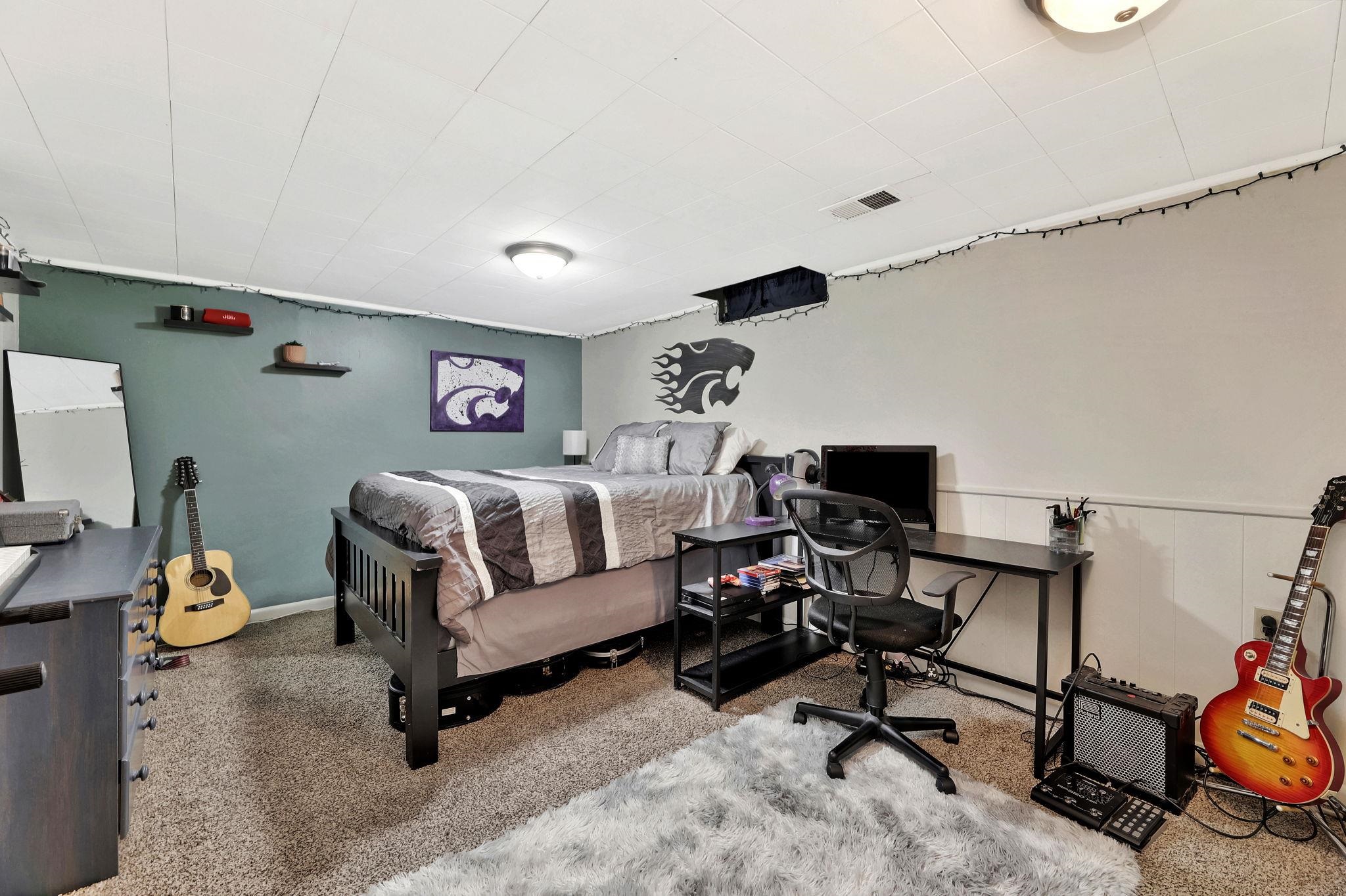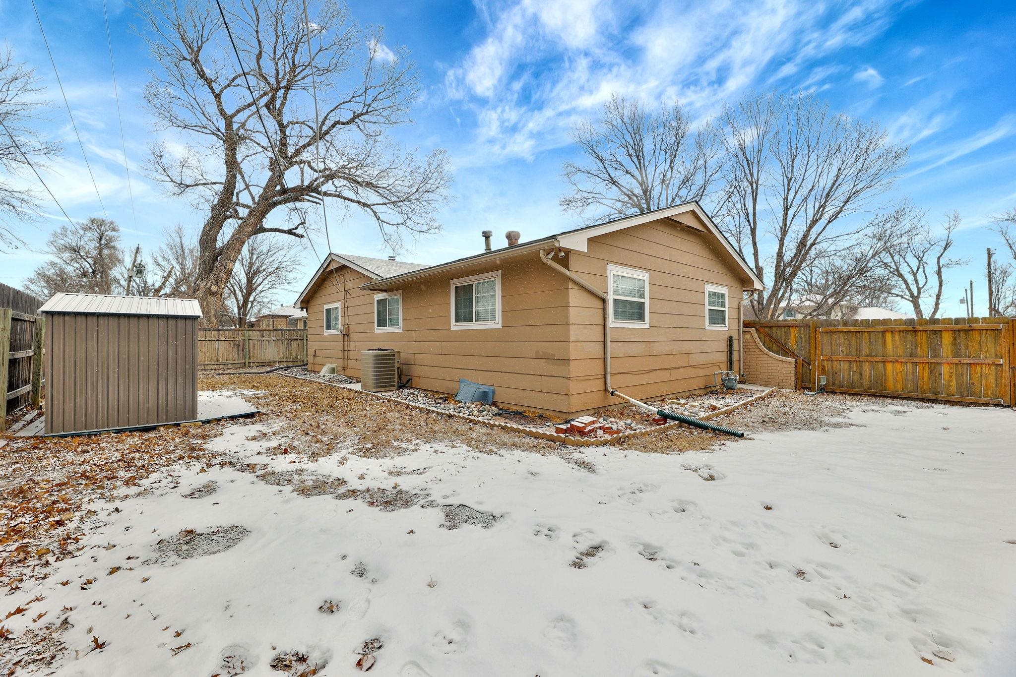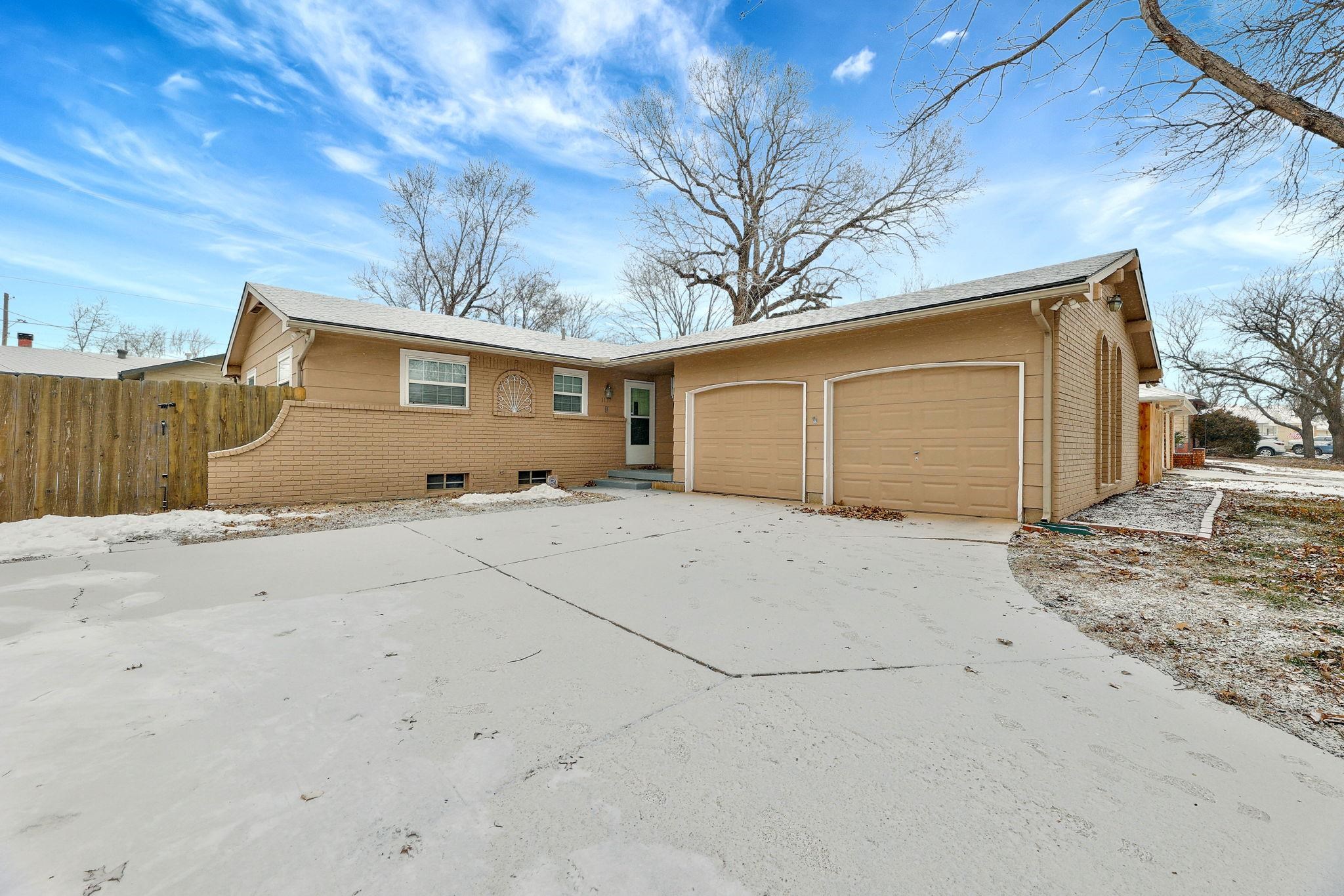 - Description: Welcome to this charming and conveniently located home in west Wichita, near 13th & Ridge. This property is ideal for a first-time homebuyer or anyone looking to downsize. The kitchen stands out with its generous size, offering abundant cabinet and countertop space, a pantry, and an island. It also features an integrated dining area, perfect for hosting your next gathering. Adjacent to the kitchen, you'll find a functional mudroom with laundry facilities, including a wash sink, which connects to the two-car garage. Off the dining area, there's a spacious patio on the side of the home, ideal for outdoor relaxation. The south side of the yard provides additional space for parking a trailer or camper as there is a large gate. The main floor living room boasts a whitewashed wood-burning fireplace, creating a cozy ambiance. All windows on the main floor are vinyl, and the trim and doors have been updated with fresh white paint for a modern look. Both bathrooms feature newer vanities and updated tile. Completing the main floor are three well-sized bedrooms. Downstairs, the basement offers a versatile family room, perfect for movie or game nights, an additional non-conforming bedroom, and a large storage room. There's also potential to add another bathroom or bedroom, making this space even more functional. This home is ready to welcome its next owner—schedule your showing today! Show all description