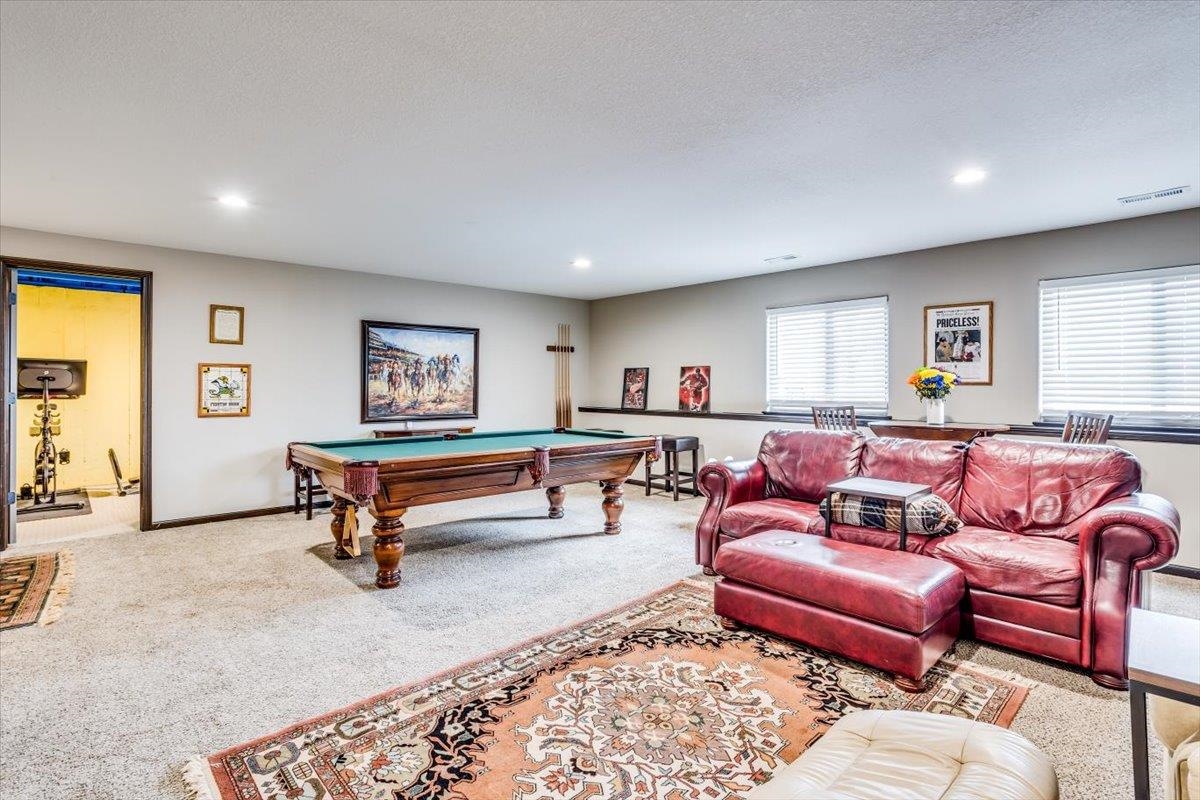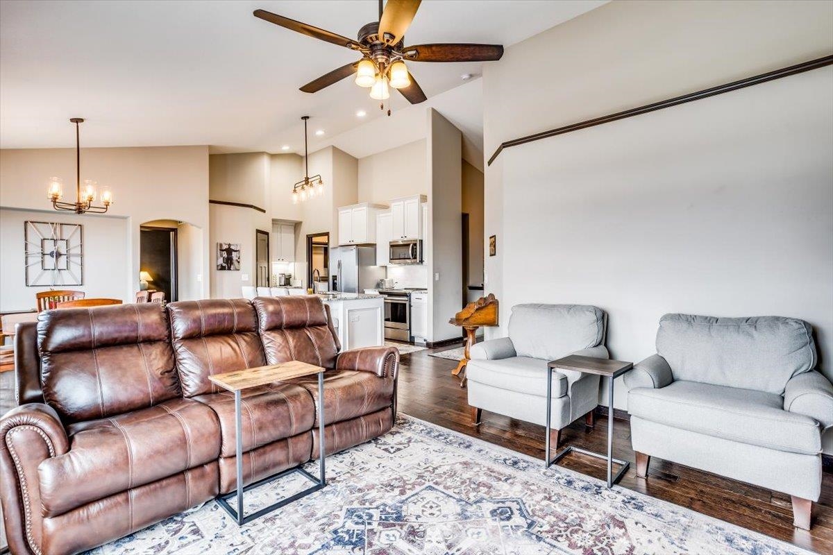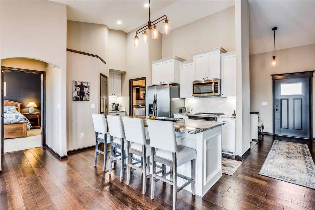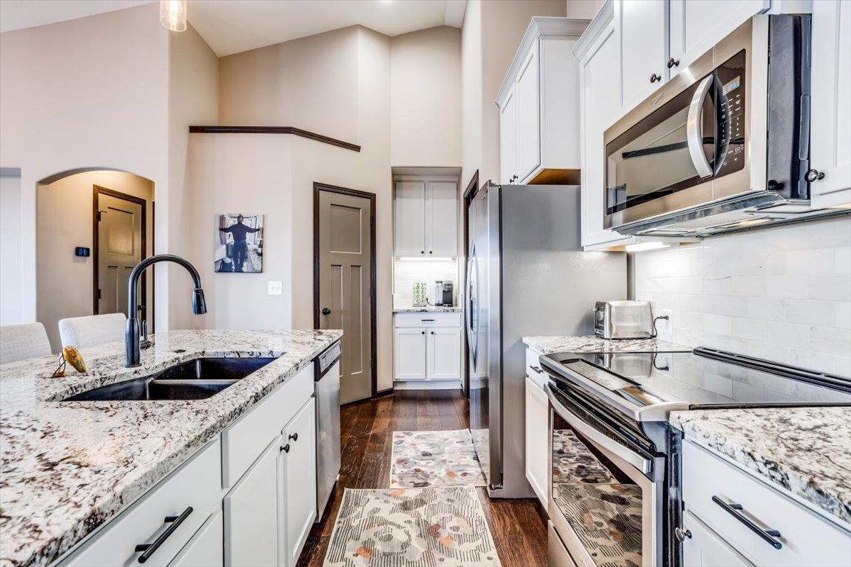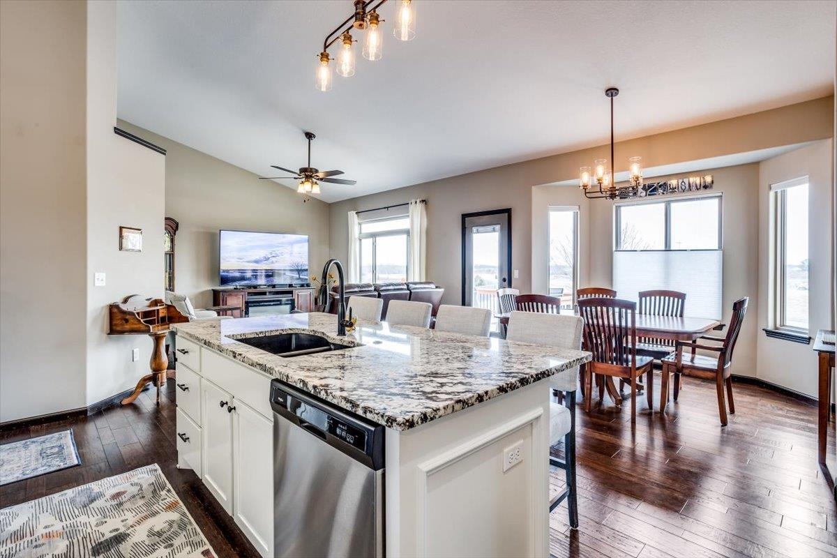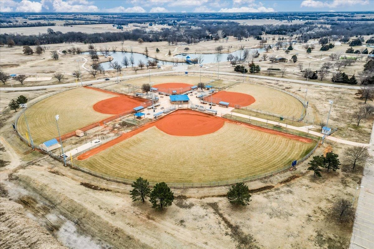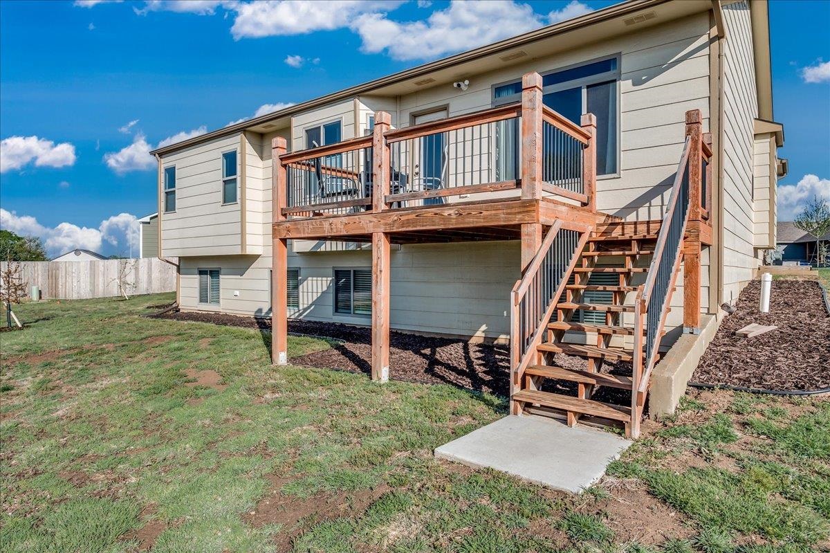 - Description: Backing to the beautiful High Park in Derby, Kansas, with breathtaking sunrise views, this 5 bedroom (6th roughed-in), 3 full bath, 3 car home is within walking distance to the sought-after Derby schools and water park. This home has everything you need to live comfortably and make lasting memories. As you enter the main level, you will notice vaulted ceilings with lots of natural light through large windows and glass door to the deck that frame sweeping views of sky and nature, and cool evenings, as the hot sun sets on the garage side of the house. The kitchen features stunning granite countertops, kitchen island, and a coffee bar. Matching granite countertops are throughout the house in all 3 full bathrooms. Kitchen has a walk-in pantry. BONUS ... all appliances stay! The Master Suite includes vaulted ceilings, a full bath with jetted 2-person soaker tub, a separate shower, and a walk-in closet. Also on the main floor are 2 more bedrooms with a full bath between. It has an over-the-shower clerestory window which allows plenty of natural light in, to get your day started. Head downstairs where you'll find an expansive rec room/family room with lots of egress "daylight" windows, full bath, two spacious bedrooms, and a "ready to be finished" potential 6th bedroom! The large lower level is perfect for sports-night parties, hobbies, games, or an in-law space. The attached 3-car garage has a newly constructed locking storage wall, perfect for housing up to 35 totes for your organizational needs. Plus, you'll love the convenient location near restaurants, shopping, quick access to Rock Road, and High Park practically in your backyard for walking, jogging, bike riding, fishing ponds, dog walking, baseball, and soccer fields. The yard has multiple new young fruit trees with 5 year guarantee, and long flower or veggie gardens that have been rototilled, planting dirt added, and covered. Yes, the new sprinkler system can be used to water them too! This is truly a unique find." Show all description