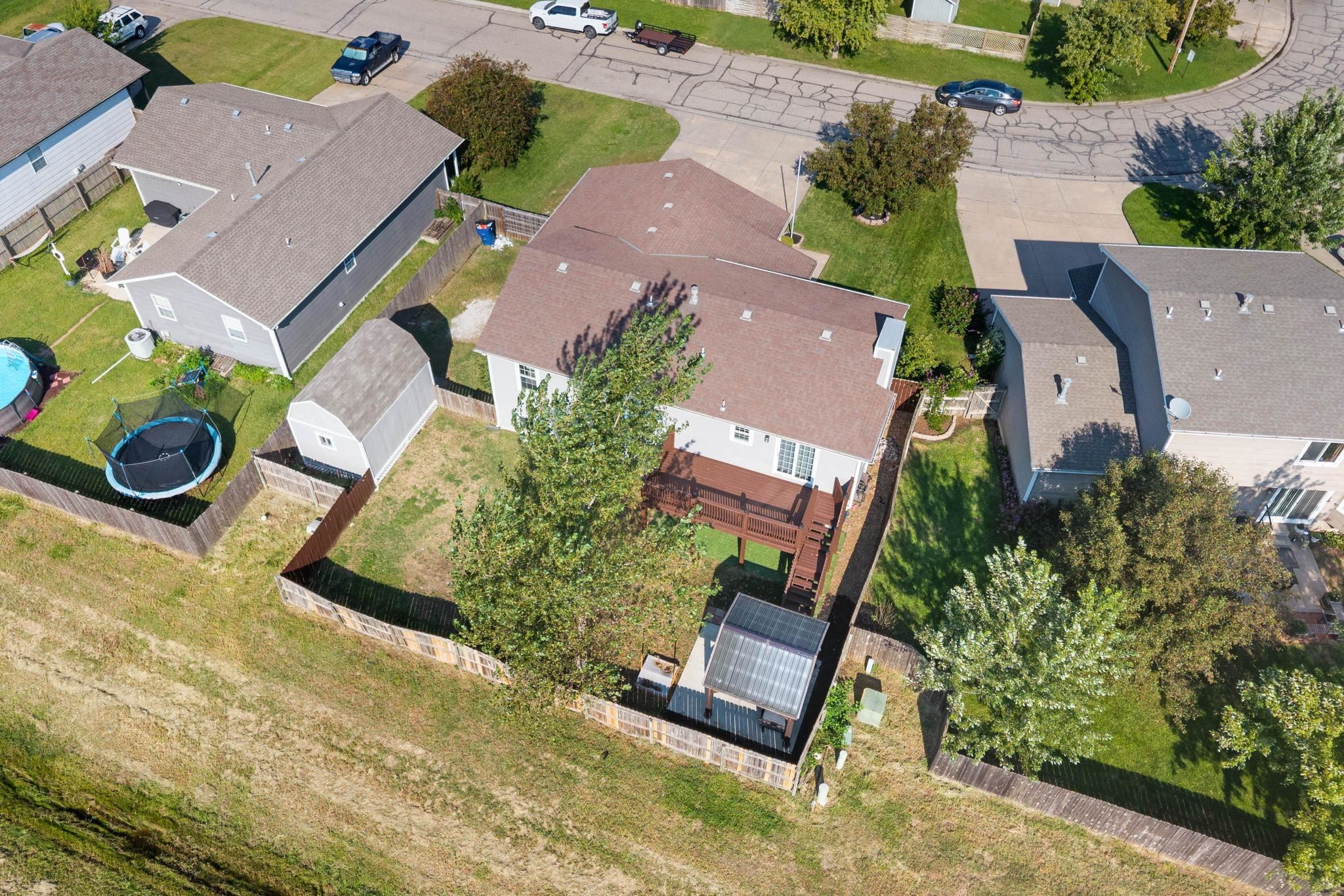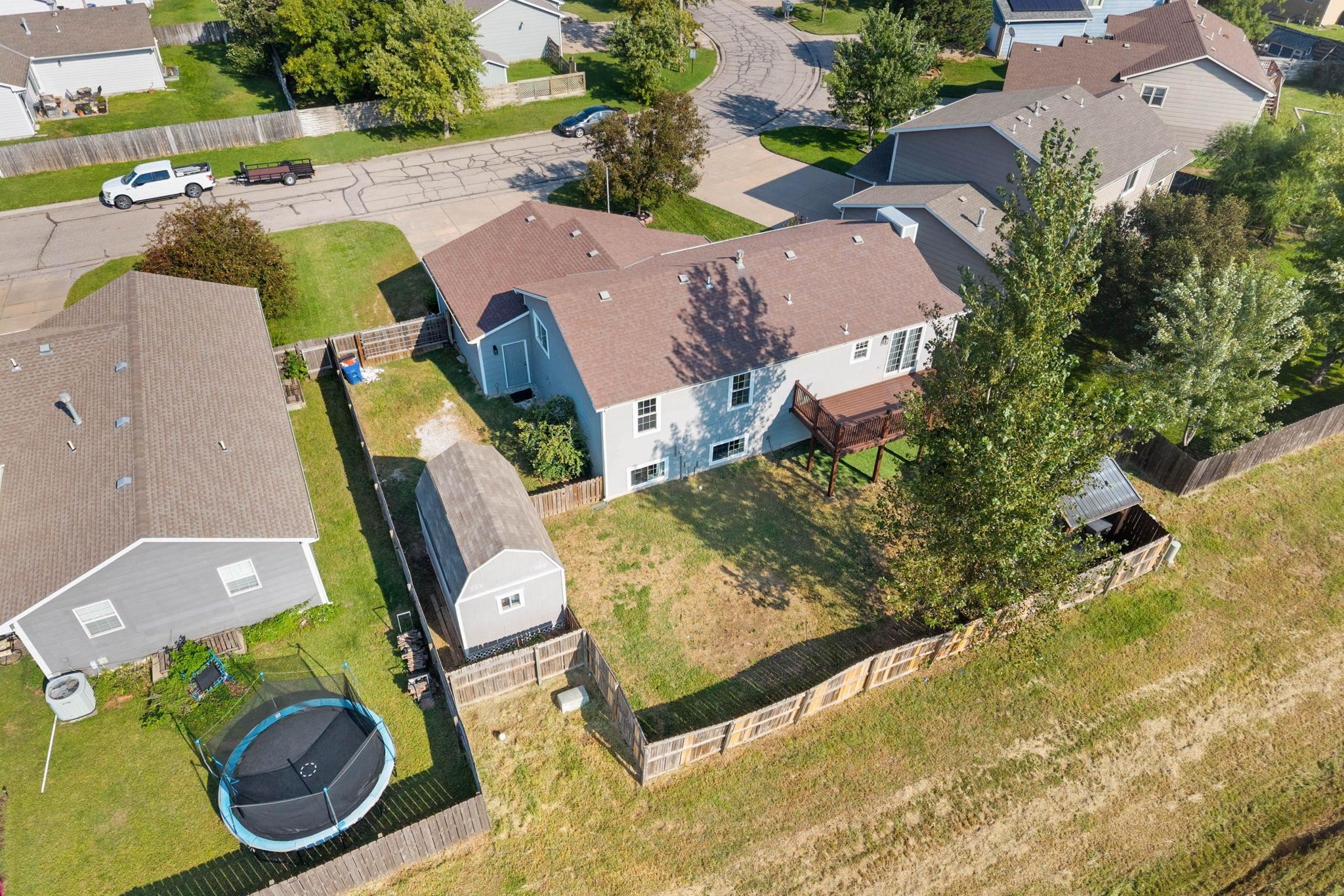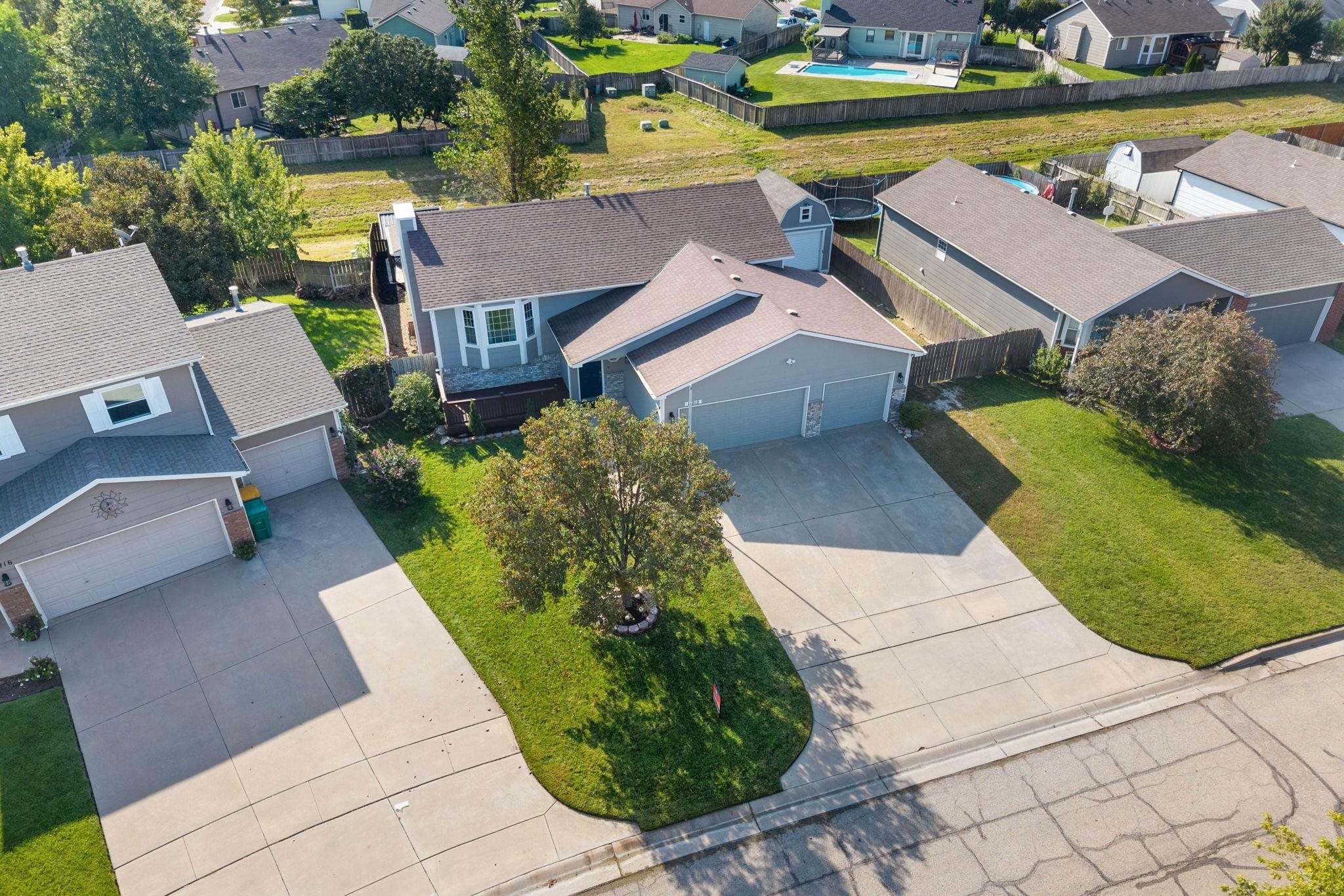 - Description: Welcome to Lydia! This 5-bedroom, 3-bath home sits in the highly sought-after Goddard School District! From the charming front porch to the spacious back deck, this property is packed with features you’ll love. The main living area boasts durable LVP flooring and flows seamlessly into the updated kitchen, complete with granite countertops and modern finishes. With a 3-car garage plus an oversized storage shed, there’s plenty of room for vehicles, tools, and hobbies. Enjoy outdoor entertaining on the inviting back patio and deck, perfect for summer nights and weekend gatherings. Downstairs, you'll love the large rec room for entertaining featuring view out windows and a wet bar! For added peace of mind, the buyer will receive a brand-new roof and gutters, making this home truly move-in ready. Show all description