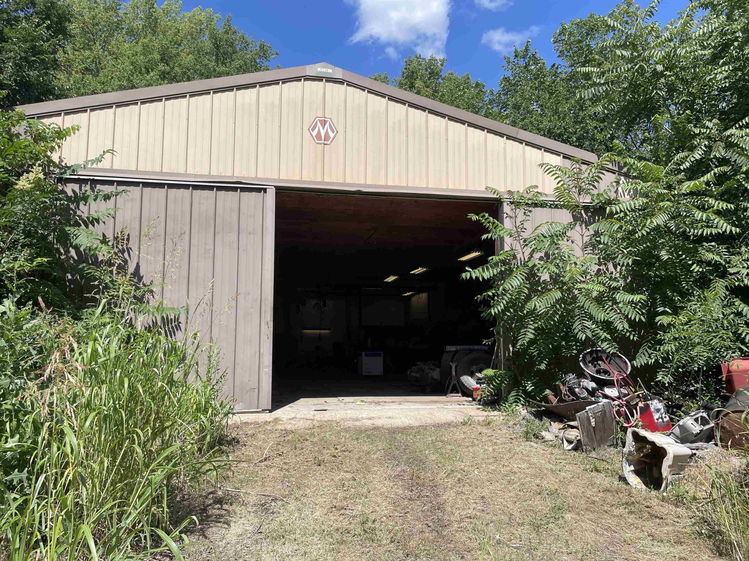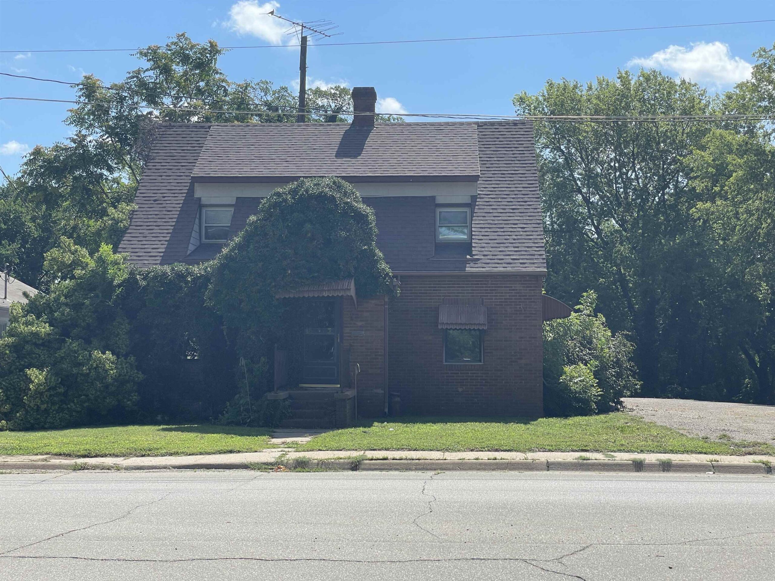 - Description: 1 1/2 story Tudor home located on appx 0.70 acre lot. This is a Solid brick and concrete home built to last. The home has 3 bedrooms and 2 baths, there is a room in the basement but no egress. Kitchen has nice oak cabinets with pull out drawers, dishwasher, stove refrigerator, microwave all included, and granite countertops. Out side you will find a very large morton building perfect for any one who wants to have a hobby, mechanic shop, or just a man cave, air compressor is included. it also has central heat and air so working in the summer or winter is no problem. This property have a very large lot that could be used for entertaining, gardening, or what ever you decide. Sellers are still in the process of moving out so excuse the clutter. Some areas will need carpet or flooring replaced. Show all description