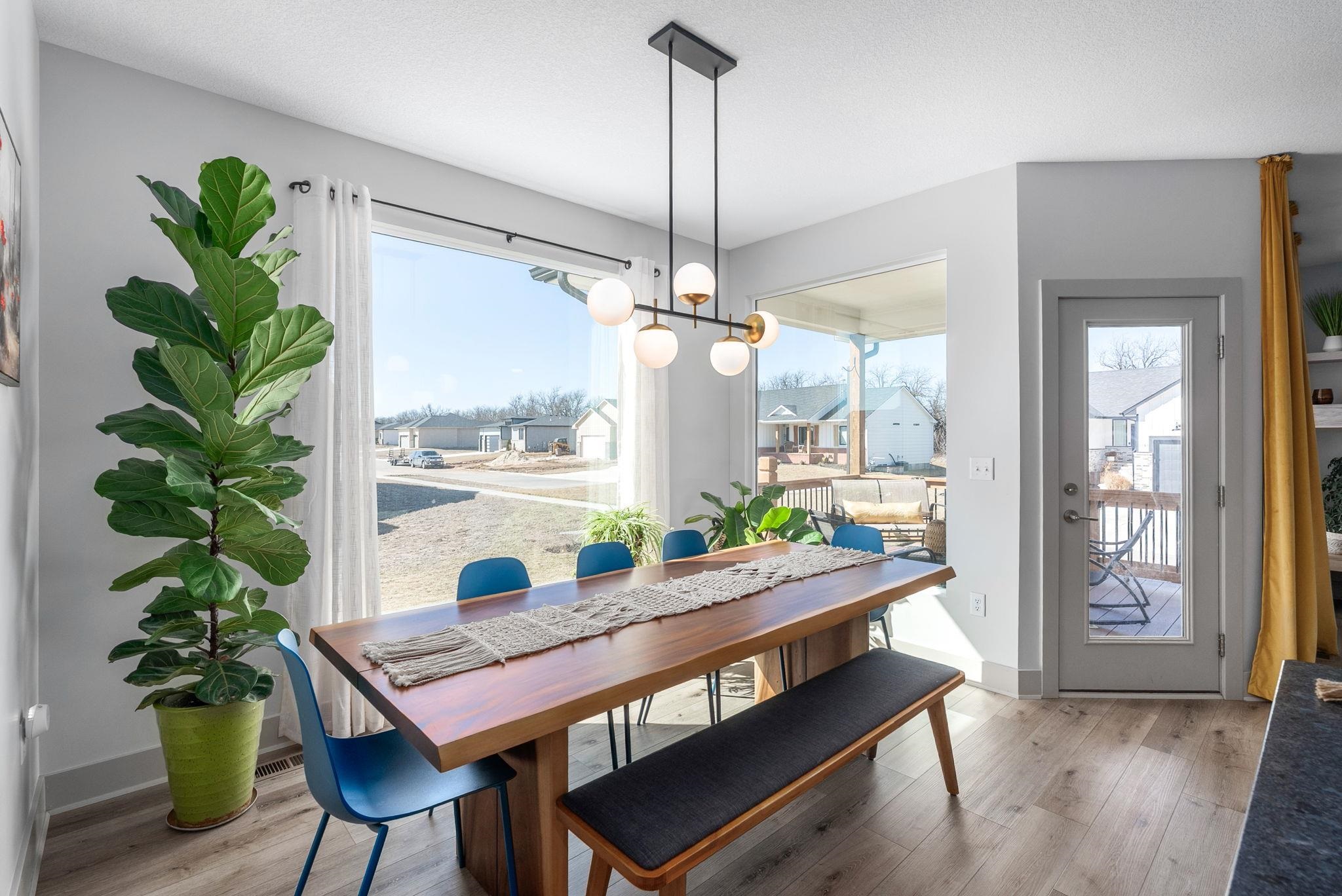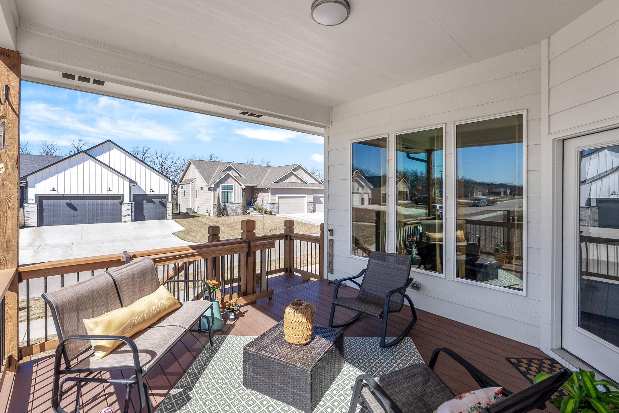 - Description: 4-Car Tandem Garage! Experience unparalleled craftsmanship in this stunning custom-built home! Situated at the end of a low-traffic road, this home boasts an extended corner deck with low maintenance composite decking with custom designed gate, seamlessly serving as an additionally living space. Step inside to find high-end, in-lay style cabinetry crafted from beautiful hickory wood, adding warmth and sophistication throughout the home. Every detail has been thoughtfully designed to offer both elegance and functionality, making this home a true standout. The exceptional kitchen offers premium upgrades that enhance everyday living. Upgraded drawers replace traditional cabinets for effortless access, while soft-close drawers and doors provide a refined touch throughout. Gorgeous granite countertops, complete the GE 36” built in touch-control induction cooktop, with a pre-installed gas line offering flexibility for a gas stove option. For ultimate convenience, this kitchen features double GE Smart WiFi-connected ovens, perfect for multitasking. A built-in charging drawer with an outlet keeps cords hidden and countertops clutter free, while the floating shelves with integrated accent lighting add a modern touch. The open concept living and dining area is designed for both comfort and functionality, creating a seamless flow between spaces. Stunning Electric Fireplace serves as the focal point, complemented by custom wood sitting bench and upgraded extra-large windows filling the rooms with an abundance of natural light. Custom upgrades continue in the primary en-suite bath, featuring curb less walk-in full tile shower with upgraded glass panel, dual showerheads, including rain shower, sleek linear drain, and showstopper double vanity. The upgraded list does not stop, with extended concrete front porch, extended full length backyard concrete patio with the perfect space for future outdoor kitchen, irrigation well, doggie door, home security system, custom designed drop zone with plumbing available for pet bath or laundry sink, walk out basement pit with view out basement windows, and partially finished basement with large finished bathroom featuring free standing soaker spa tub and elegant double vanity. Basement is roughed in for entertainment space, bedroom four with large closet, and wet bar (plumbed). Basement offers potential for a 5th bedroom with a customizable layout to match your lifestyle needs. The roughed-in wet bar boasts a well-placed window, making it an ideal setup for a future outdoor kitchen. Imagine the convenience of a stylish pass-through window, perfect for serving food and drinks while entertaining! Not only is this home incredible, but the neighborhood is packed filled with fun amenities as well including Pickle Ball Court, Saltwater Swimming Pool with option to reserve for a private pool party, Playground, Clubhouse, Fitness Center, Fire Pit, Dog Park and sidewalks that lead you to sought after Goddard schools! With so many custom features, this home is truly one of a kind. Schedule your private home tour and embrace the lifestyle of luxury and convenience! Show all description