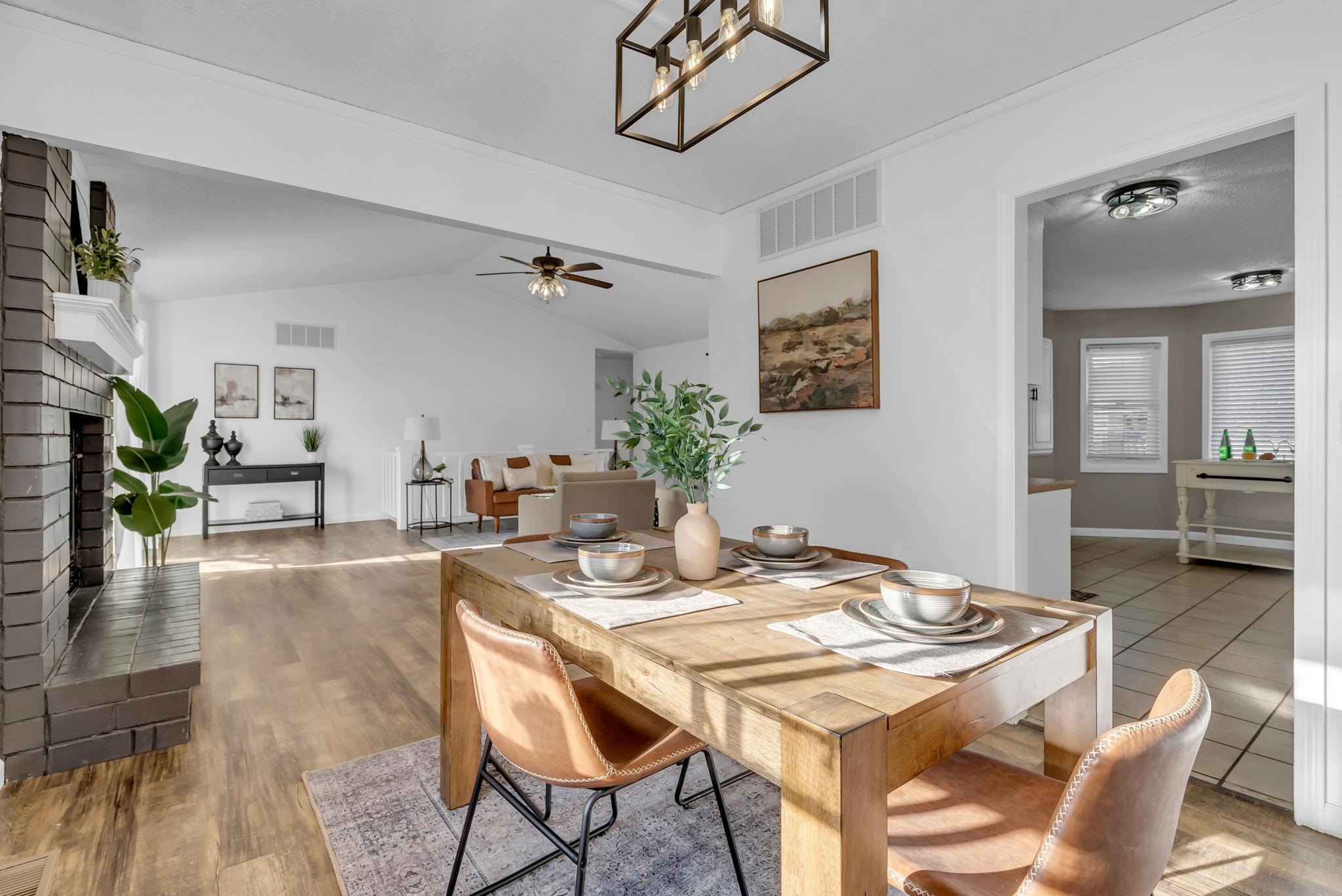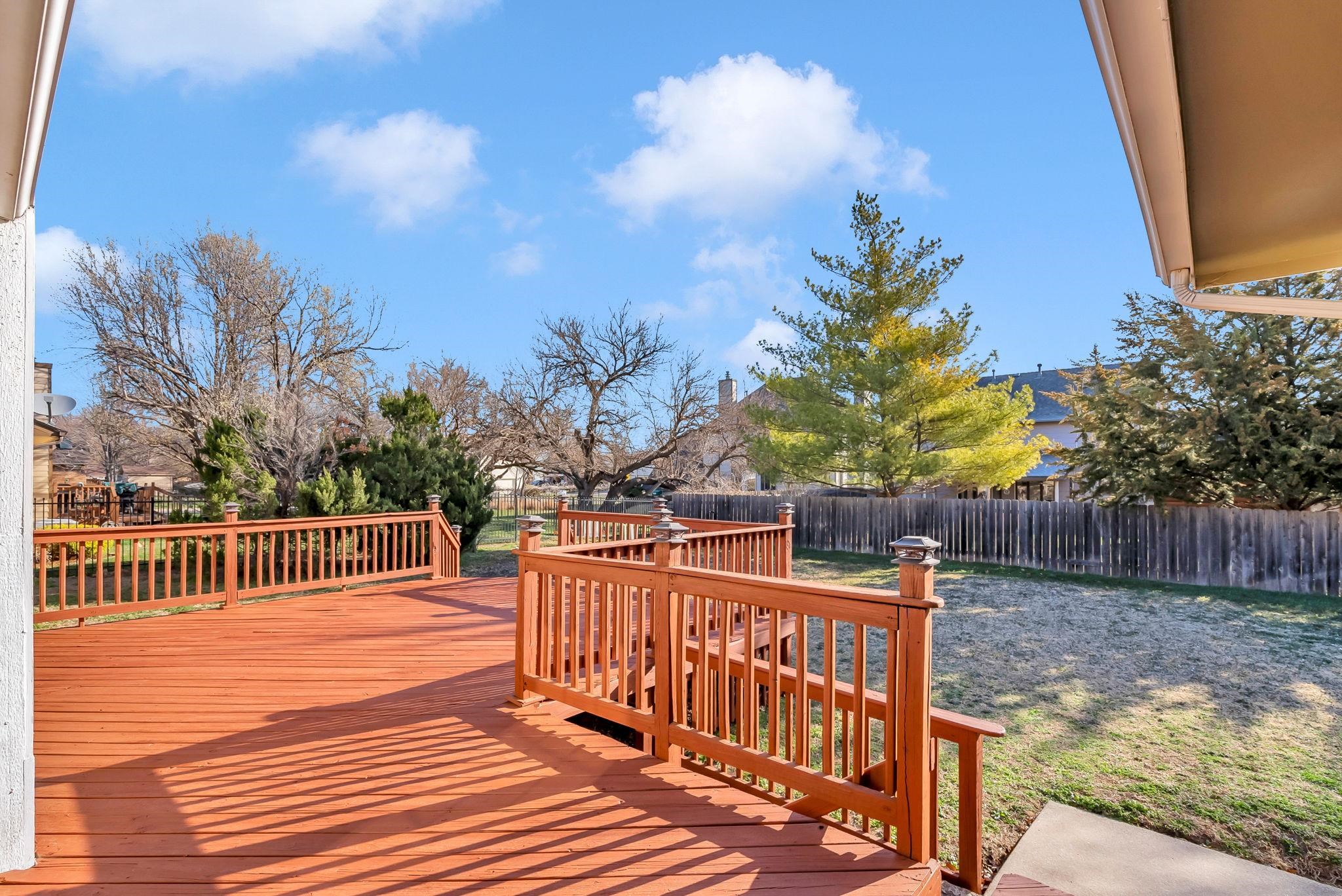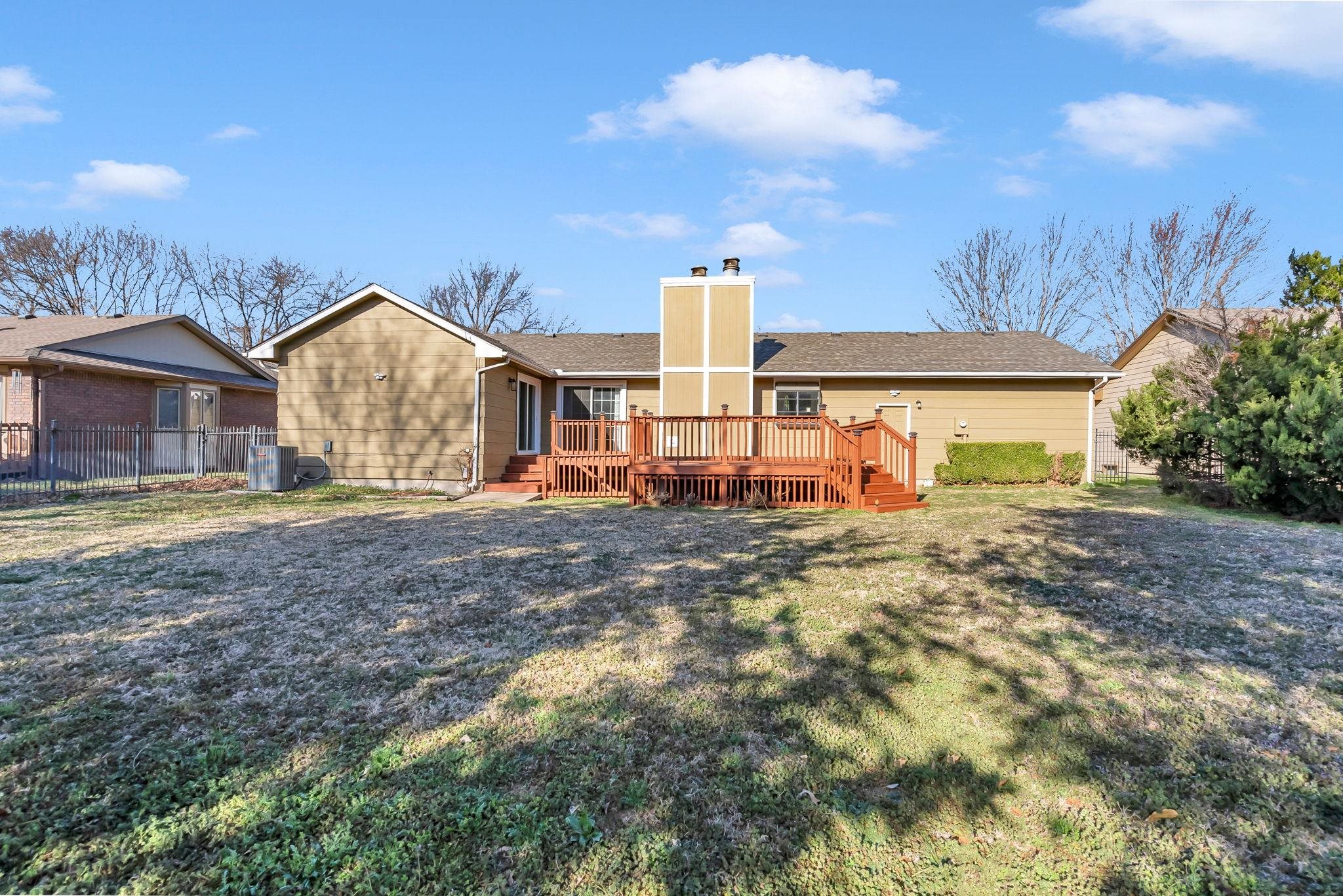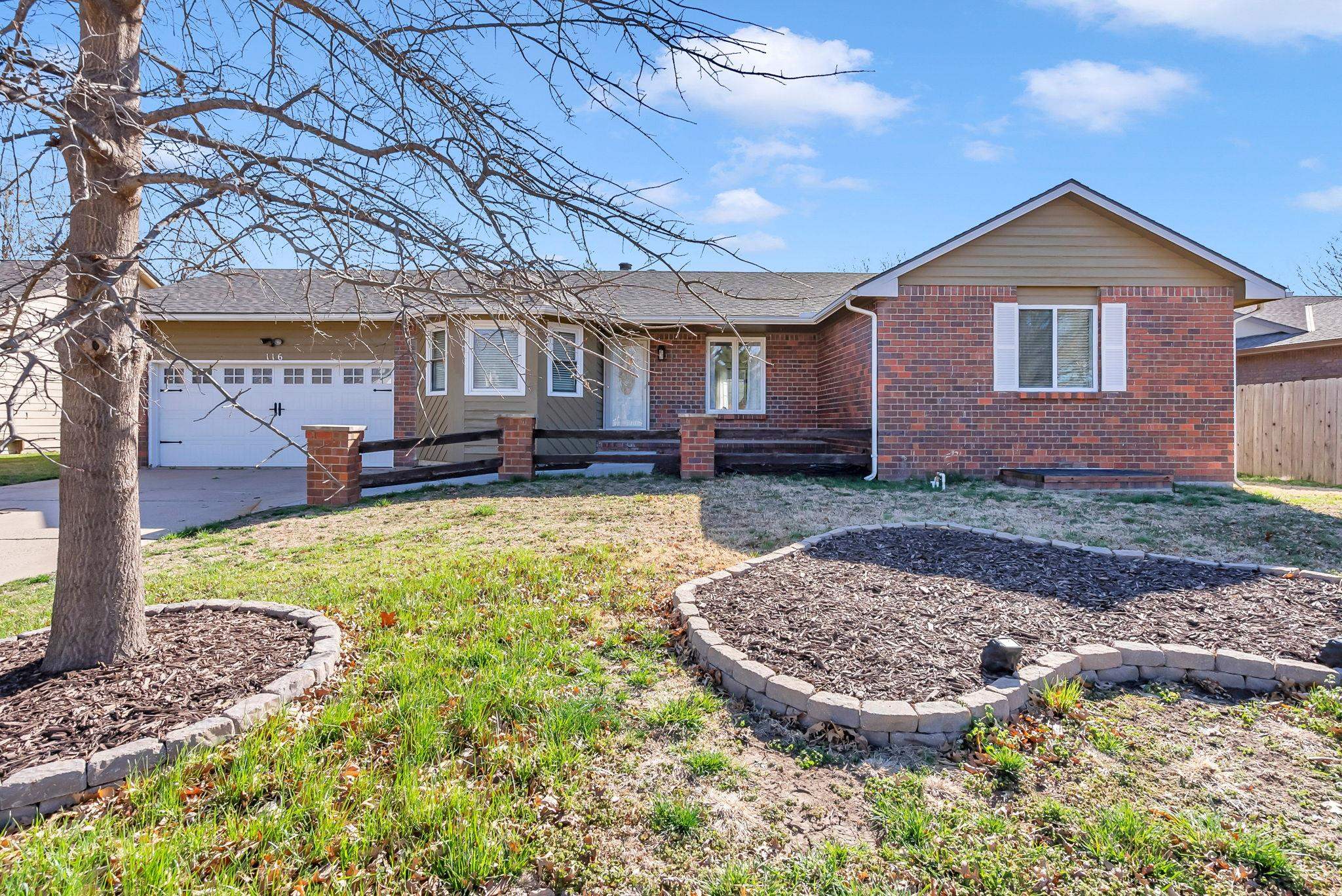 - Description: Step into this beautifully updated 5bed/3bath/2car ranch-style home, nestled in a peaceful northwest Wichita neighborhood. Inside, you’ll find fresh updates throughout, including new paint, trim, doors, modern lighting, fixtures, and gorgeous LVP flooring. The living room boasts a vaulted ceiling, a freshly painted brick wood-burning fireplace, and a sliding door that opens to the backyard and deck. Adjacent to the living room, the dining area impresses with its coffered ceiling, crown molding, and a garden window that bathes the space in natural light. The kitchen features freshly painted cabinets with new hardware, stainless steel appliances, a large island (that stays with the home), and tiled floors, blending style and functionality. The primary bedroom is a serene retreat, complete with a walk-in closet, a new ceiling fan, and an en suite bathroom featuring updated cabinets, new mirrors and hardware, and a shower with a brand-new door. Step through the brand new sliding door for private access to the extended rear deck, which has been freshly stained for added appeal. Two additional main-floor bedrooms offer generous closet space, while the remodeled custom hall bath boasts a fresh and stylish design. The walkout basement is perfect for entertaining, featuring a spacious family/rec room with a second fireplace and a designated area for a future wet bar. This level also includes two oversized bedrooms, an updated full bathroom with a shower/tub combo, and convenient under-stairs storage. The utility/laundry room comes equipped with a Samsung washing machine that stays with the home. Outside, the home has undergone major exterior improvements, including a brand-new roof and gutters, some new siding, and a new backflow preventer. The front and side windows have been replaced, enhancing energy efficiency and curb appeal. The fully fenced yard is equipped with a smart sprinkler system, fresh mulch, mature trees, and a welcoming covered front porch. Recent upgrades also include a brand-new HVAC system (2023), a new water softener, and a new garbage disposal. Located on a quiet, well-kept street close to highways, restaurants, gas stations, and grocery stores - and with no special taxes - this home truly has it all. Don’t miss your chance to make it yours—schedule your showing today! *Check out the promo video for even more views of this incredible home!* Show all description