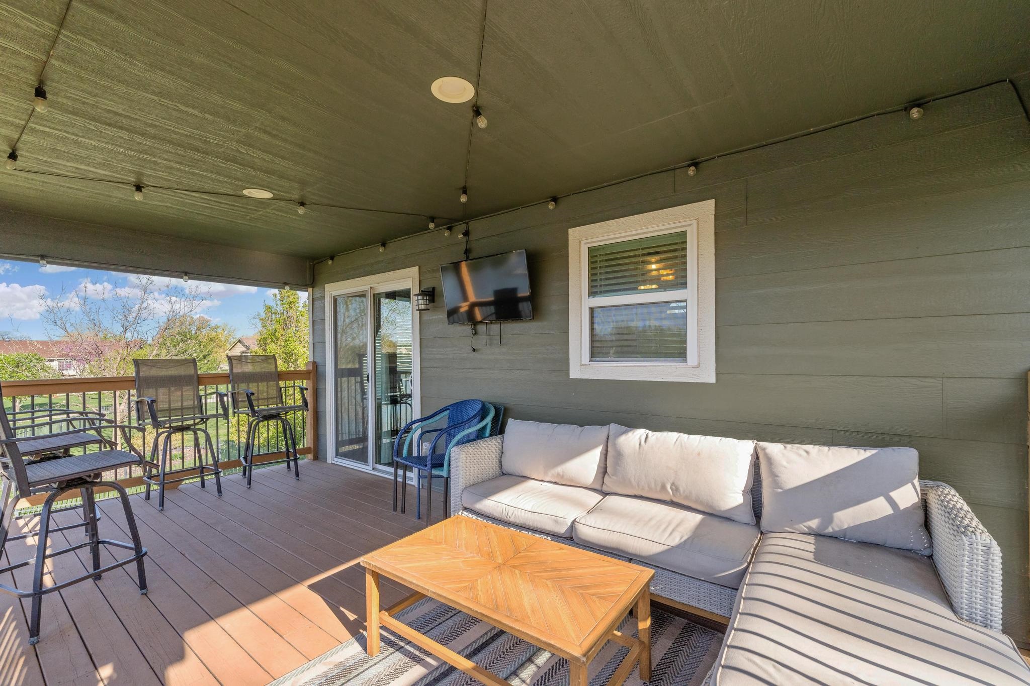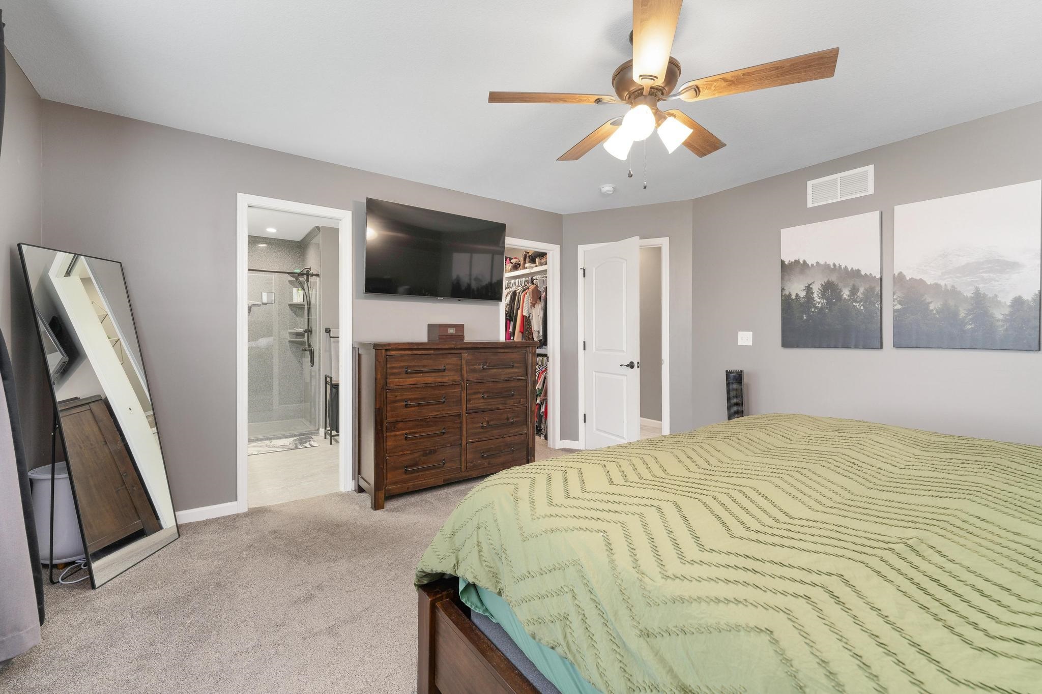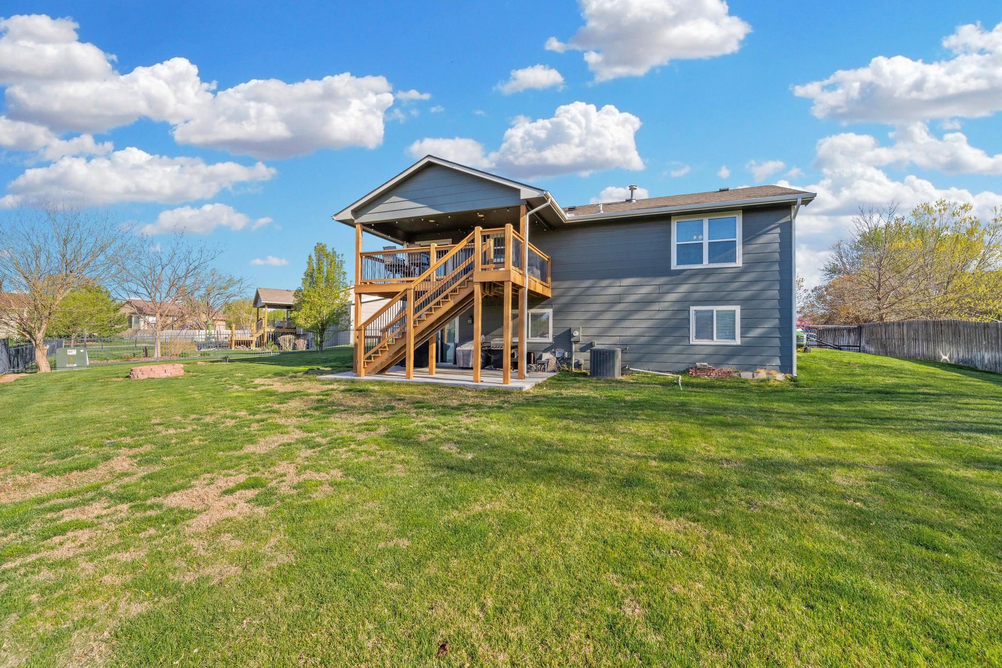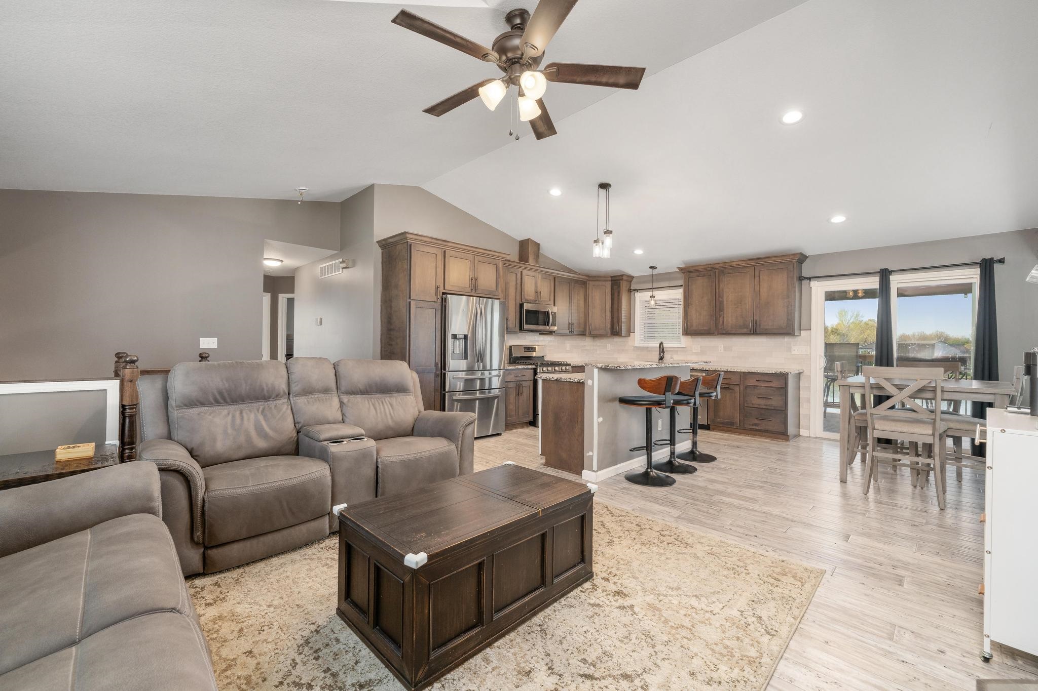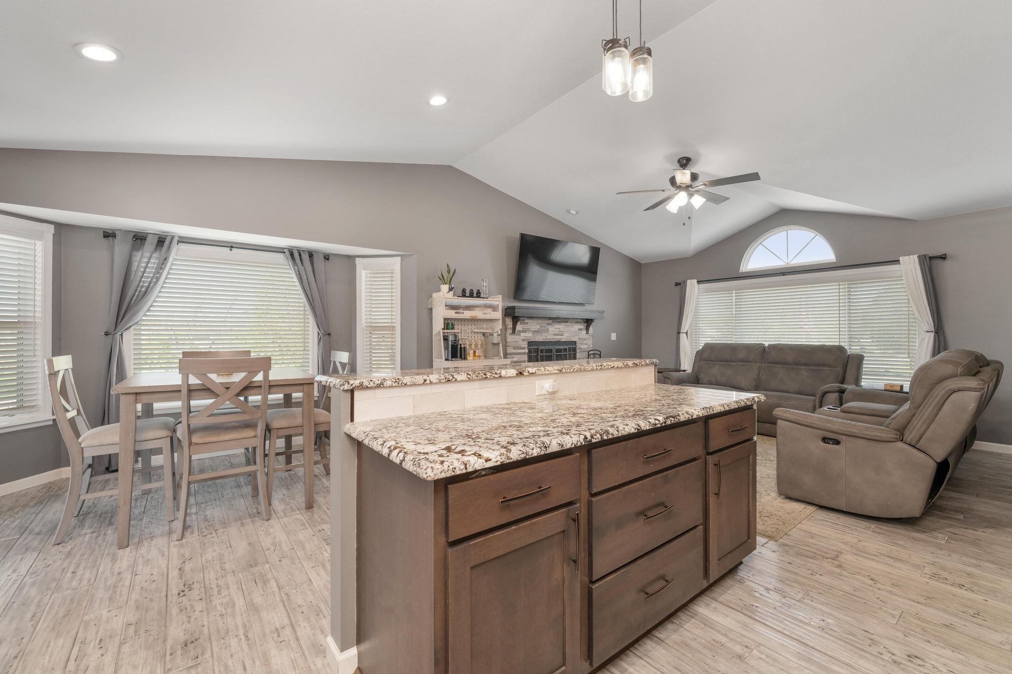 - Description: This beautifully updated 4 bedroom, 3 bath house is nearly as good as new. With engineered hardwood floors, gas range & granite countertops, and luxe primary suite, this one is a stunner! From the heart of the home, enjoy the gas start fireplace and cook's kitchen in the winter, or the lake views from your extended deck in the summer. The huge primary bedroom is accompanied by a walk-in closet with hidden built in safe, and an en suite with double vanity & a gorgeous walk-in shower with multiple shower heads. A second bedroom and full bath complete the main floor. Downstairs you'll find a walk out basement with tons of natural light, a second fireplace and full wet bar - an entertainer's dream! Two more bedrooms and another full bath round out the basement. Well and sprinkler system ensure your home is beautiful inside and out. Roof, siding, deck, HVAC, appliances, and flooring all only 4 years old! Show all description