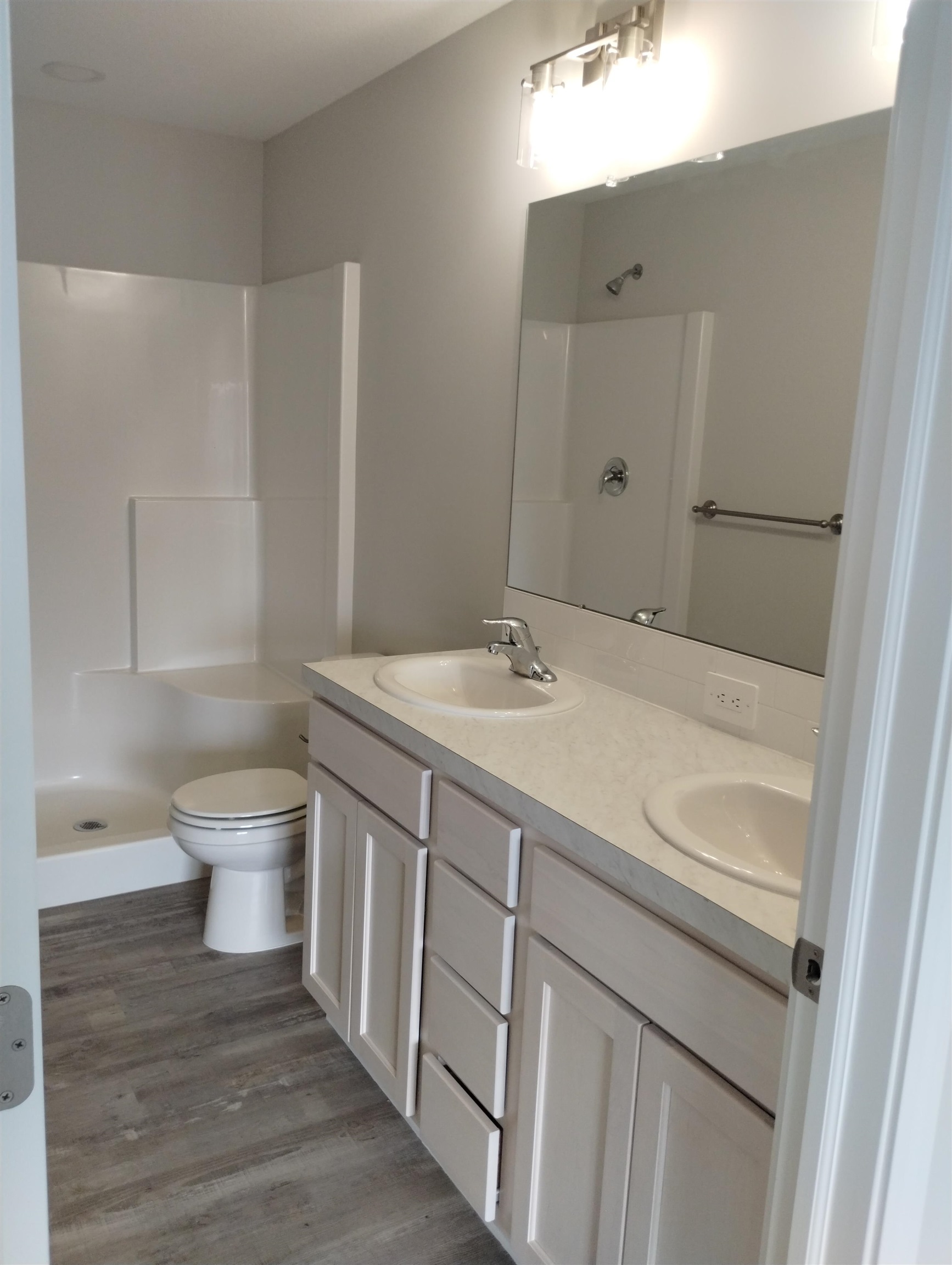 - Master Bedroom: Master Bdrm on Main Level, Split Bedroom Plan, Shower/Master Bedroom, Two Sinks, Laminate Counters