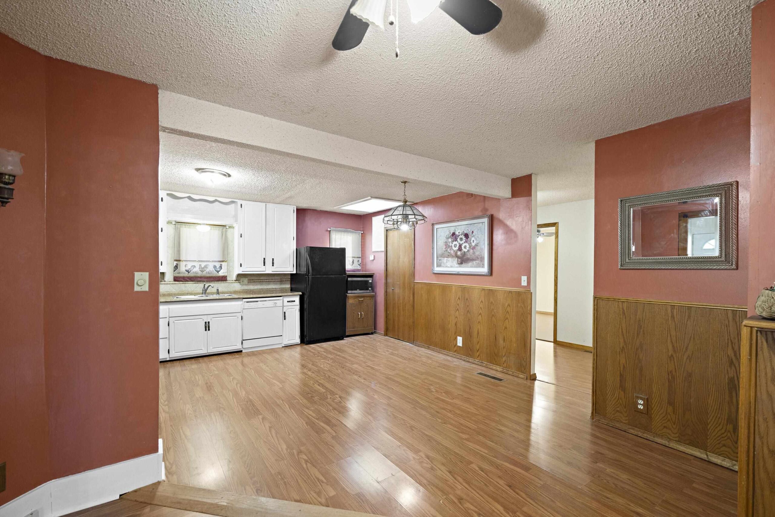 - Description: MOVE IN READY FOUR BEDROOM HOME!!! Make this spacious updated home your new safe haven before it's gone! As you walk up to the inviting front porch the character, quality and updates shine through! Inside the large flex room and living room offer great gathering space and laminate flooring throughout! Off the front room is the first of FOUR bedrooms. The centrally located eat in kitchen has TONS of cabinet and counter space for all your culinary creations! Off the kitchen is the main floor laundry and bathroom. Opposite the kitchen is another bathroom and the second large bedroom. The third and fourth bedroom are on the other side of the kitchen. Newer windows throughout most of the home plus a new roof create energy efficiency. Out the back door the covered deck welcomes evenings spent with friends and family in the private back yard! Beautiful landscaping and a completely fenced back yard truly create an oasis! The detached one car garage offers work space for any hobbyist with convenient alley access! This home packs a punch for anyone looking for space, great updates and loads of CHARM! Show all description