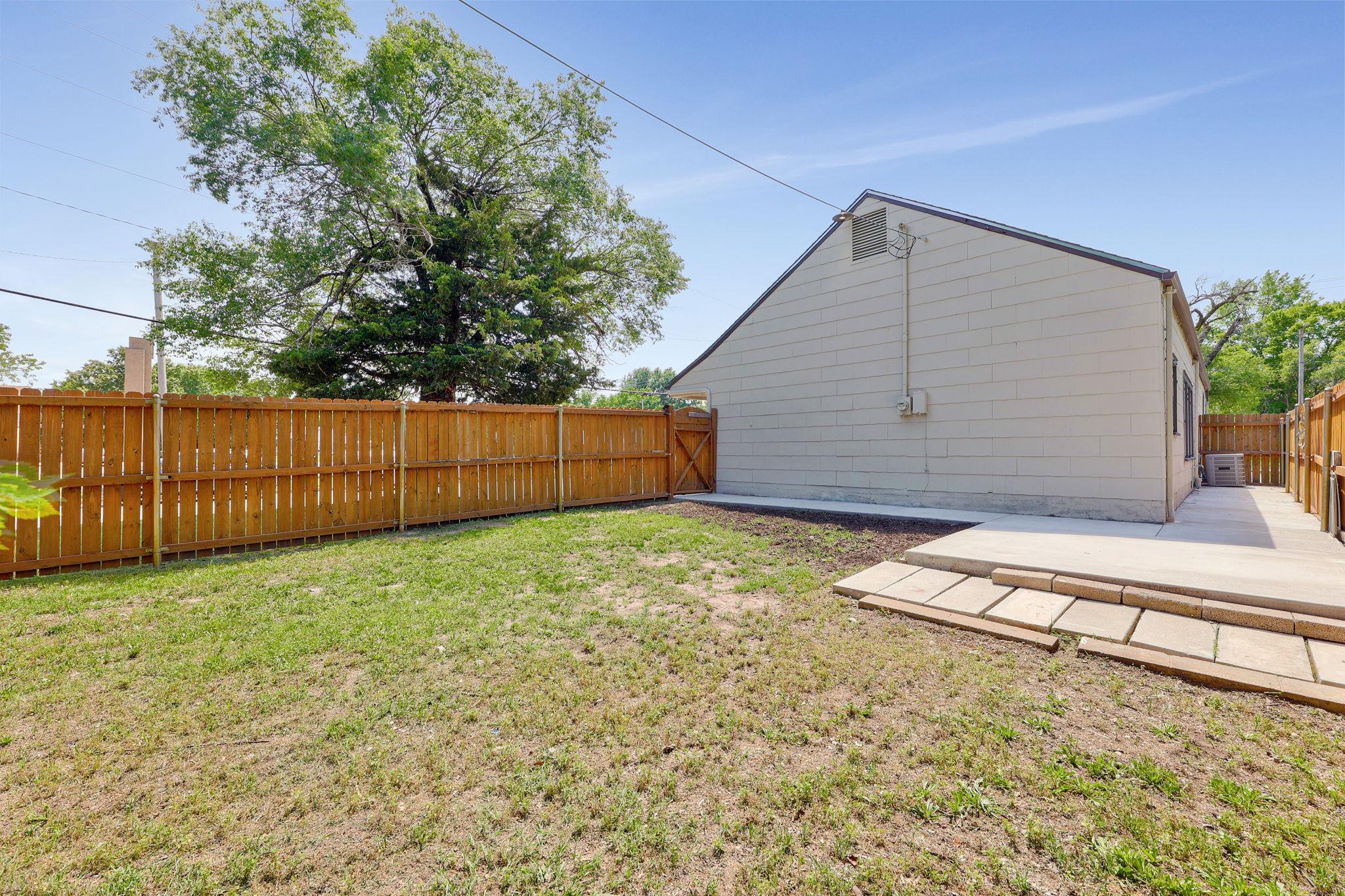 - Description: Corner lot home! House and Garage faces 11th street. New roof Oct/2024. New concrete around the property exterior and inside garage Nov/2024. New exterior paint and light fixtures. New garage entry door. Oversized clean and inviting garage with Wichita flag painted on wall and lots of storage space. New interior paint. Sewer line is cleaned out. Kitchen and bathroom plumbing are repaired. HVAC system has been serviced. New thermostat. New under cabinet lighting. All new light fixtures throughout the house. New motion sensor light fixture in hallway. All doors have new hardware. New backsplash in kitchen and bathroom. Move in ready, well maintained, great location, quiet street in front of the home, lots of parking spaces, close to the Wichita State University, hospitals, shopping, dining, schools and golf course. Beautiful and private patio, fenced yard, great curb appeal, 4 bedrooms, could be 5 bedrooms. 2 large full bathrooms. Show all description