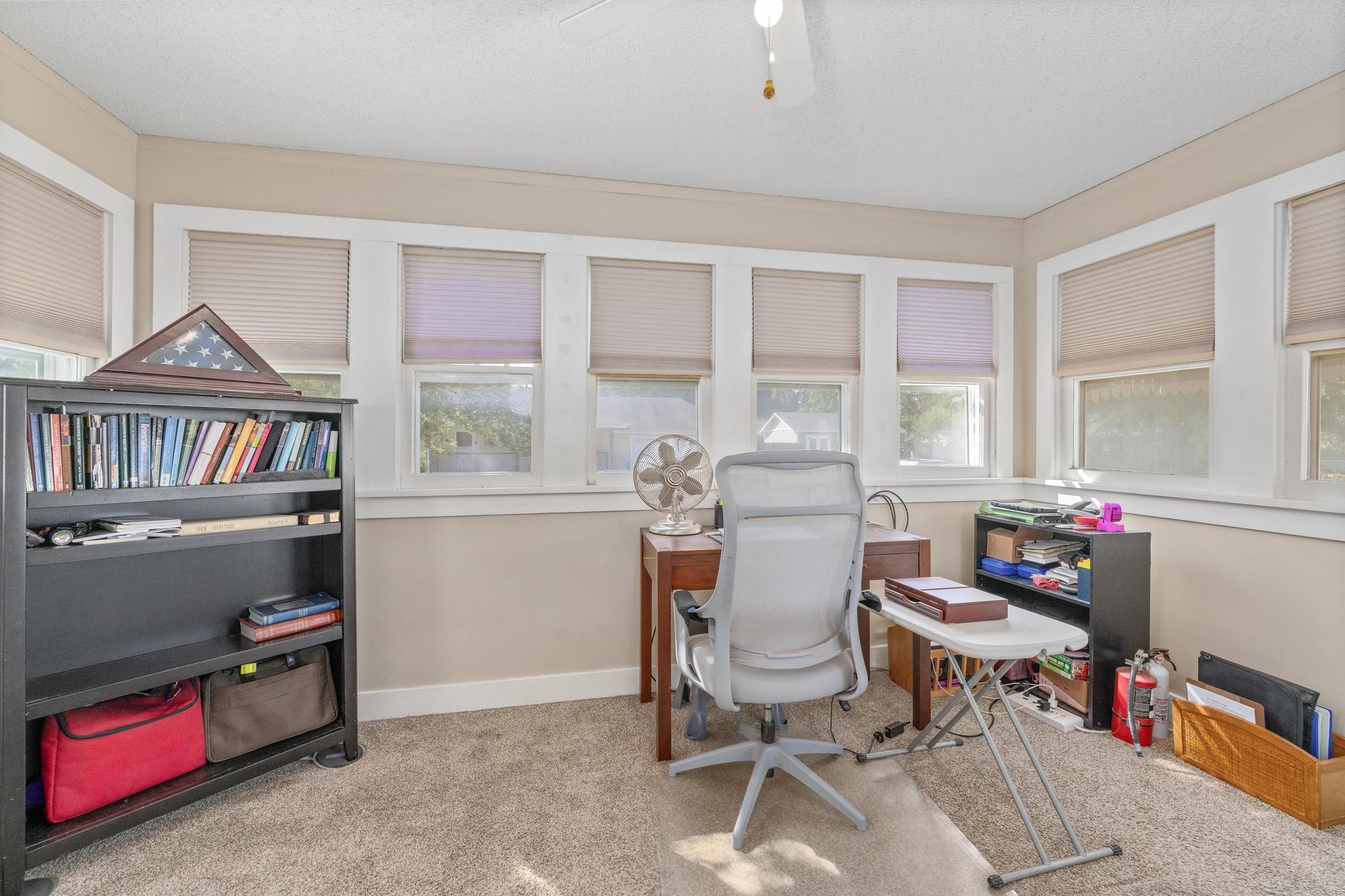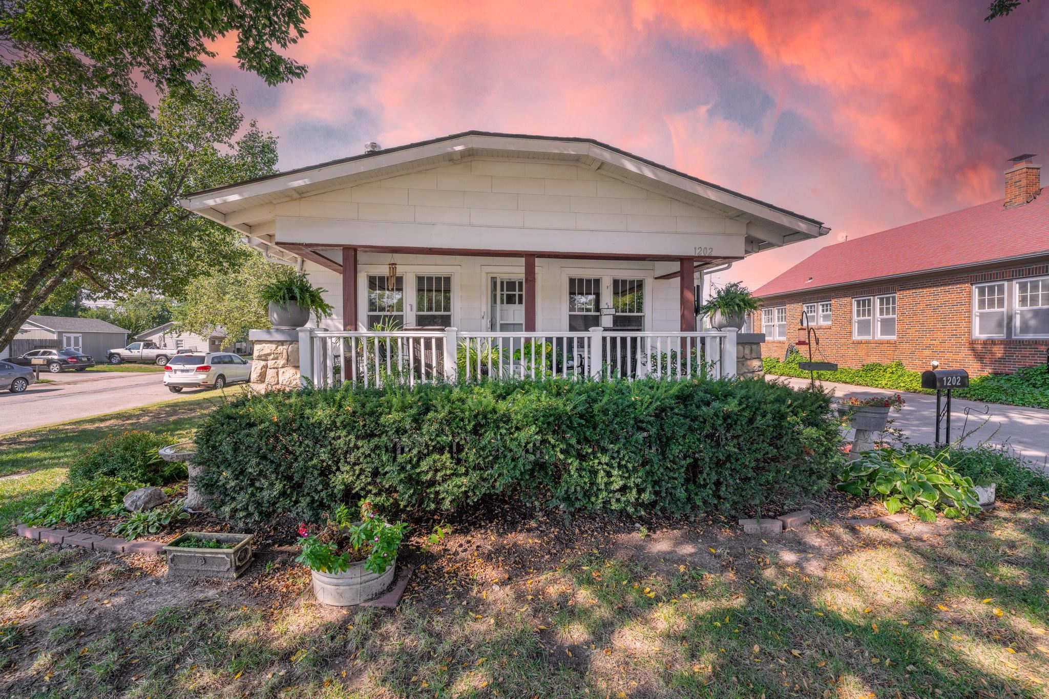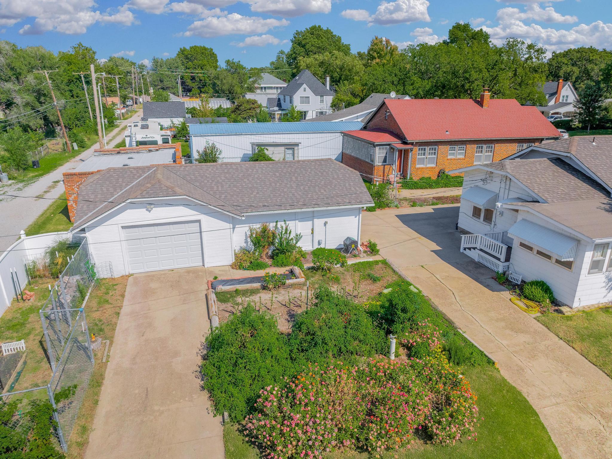 - Description: Charming bungalow on a corner lot in Wellington’s established Woodlawn Addition. The recently rebuilt front porch features low-maintenance Timber Tech decking. Inside, enjoy beautifully refinished original hardwood floors and a functional layout connecting the living room, dining area, and kitchen. All kitchen appliances remain for the new owner’s convenience. A hallway off the kitchen offers a full wall of built-in storage and leads to the back door and a versatile bonus room — ideal as an office, sunroom, or additional bedroom with its own closet. The second hallway includes the laundry area (washer and dryer included), extra closet space, two bedrooms, and a full bath. The basement provides additional living options, including a finished room currently used as a bedroom (with two daylight windows) that could serve as a family or rec room. A second full bathroom and a 6x8 storage room complete the lower level. Outside, you’ll appreciate the drive-through driveway and double detached garages, plus a dedicated garden area. Located just across from Washington Elementary and a short distance to downtown amenities. At owner's request, please only schedule showings for pre-qualified buyers. Show all description