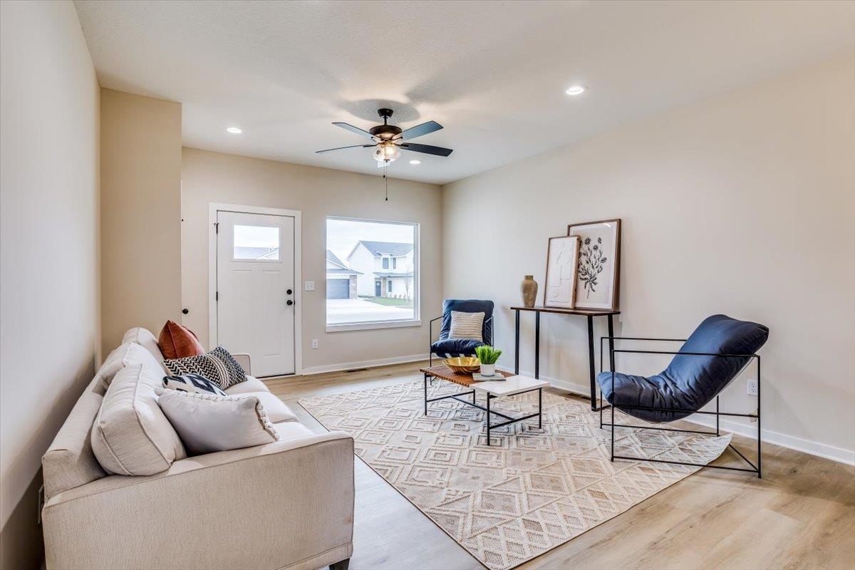 - Description: Spacious five bedroom floor plan in desirable Fox Creek in Maize. "The Chuck" floor plan offers three bedrooms on the main floor and two additional bedrooms in the basement along with large family room area. The neutral decor allows for any color palette you may choose. Interior finishes include Natural Cream wall color with Shelby Oak luxury vinyl throughout the main floor living area. Bedrooms and family room feature Beachcomber High Tide carpet. Kitchen features white cabinetry and quartz countertops and subway tile backsplash. Stainless range, dishwasher and microwave are included. Lawn, well, sprinkler and fence included in sales price. AGENTS GENERAL TAXES HAVE NOT BEEN ASSESSED. PLEASE VERIFY SCHOOL, TAX AND HOA INFORMATION. Show all description