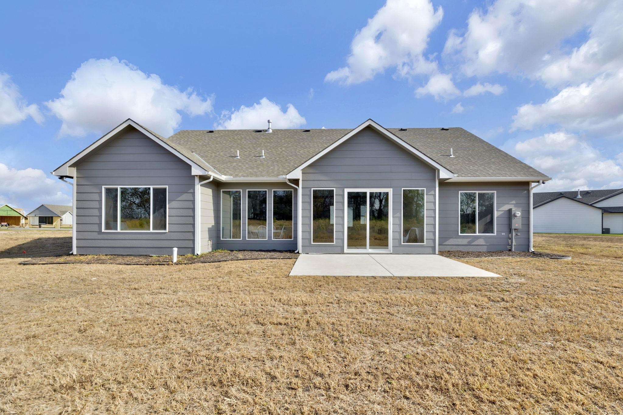 - Description: Move In Ready! True craftmanship shines through in this patio home by Ritchie Building Company located in the desirable Firefly neighborhood located off of 29th St N east of Greenwich. This home features a full brick front elevation and is situated on a private tree lined lot. As you enter the home, you will notice the vaulted ceilings and electric fireplace in the living room which leads to a large sunroom with 12' sliding patio doors. The master suite has a fully tiled shower, water closet, vanity with double sinks and a spacious walk-in closet that doubles as a concrete storm room. There are two additional bedrooms and a guest bath in the home as well. The heart of the home is the kitchen, complete with modern appliances, custom cabinetry, and a large walk-in pantry with plenty of shelving. The three-car garage provides ample storage for vehicles and storage. The patio home maintenance package includes lawn mowing, fertilization, trash service and snow removal as needed. School, tax/HOA information, dimensions, and features deemed reliable, but not guaranteed. All information subject to change by builder and/or developer without prior notice. Specials have not been spread yet so yearly amount above is an engineer's estimate. The total specials are also an estimate of full payout excluding interest. Show all description