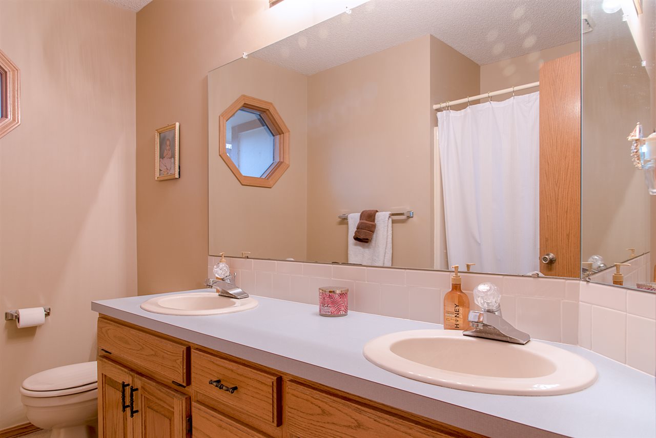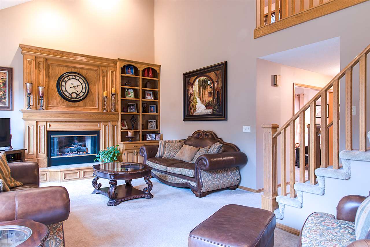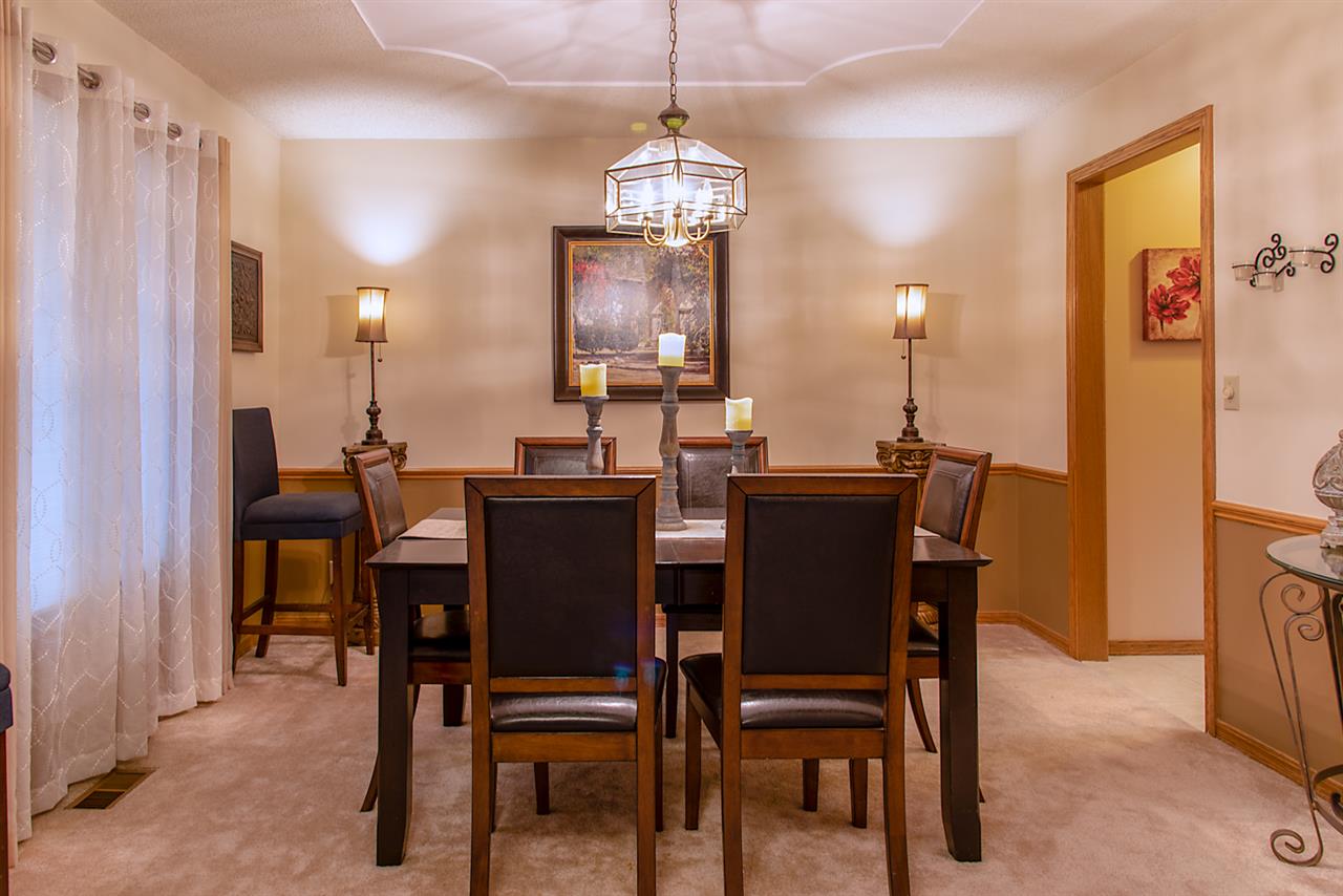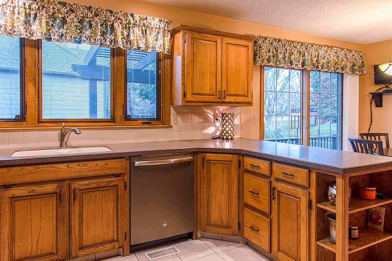 - Description: Just beyond the COVERED FRONT PORCH, your foyer greets you with a formal dining room to one side, and home office (or formal living room) to the other. Come on in to your spacious living room which offers vaulted ceiling open to the upper-level, built-ins, fireplace, and a wall of windows which offers a peaceful VIEW OF THE LAKE and walking path. There is a guest powder room, eating space in the kitchen - along with stainless appliances, including a new dishwasher - and solid surface countertops. MAIN FLOOR LAUNDRY. On the upper level is the master bedroom with double closets, AND large en suite master bath. Three additional bedrooms and a full bath (with double vanity) finishes off the upper level. Basement features bedroom number five (currently being used as a home gym) and third full bath, along with a large family room, ample storage, and workshop with cedar closet. Outside you'll find a large deck - some of which is partially covered by a pergola, fenced yard, and a gate to the walking path to neighborhood lake, pool, and clubhouse! Newer roof, HVAC, & exterior paint; and some windows have been replaced. Show all description