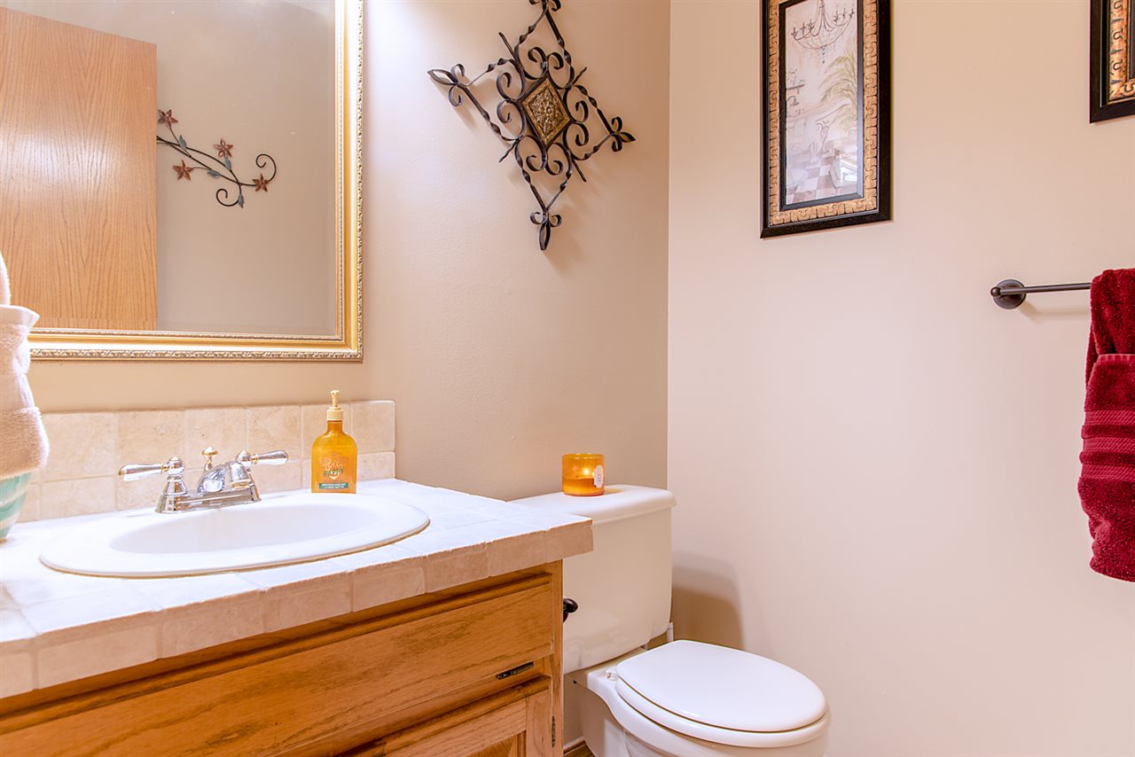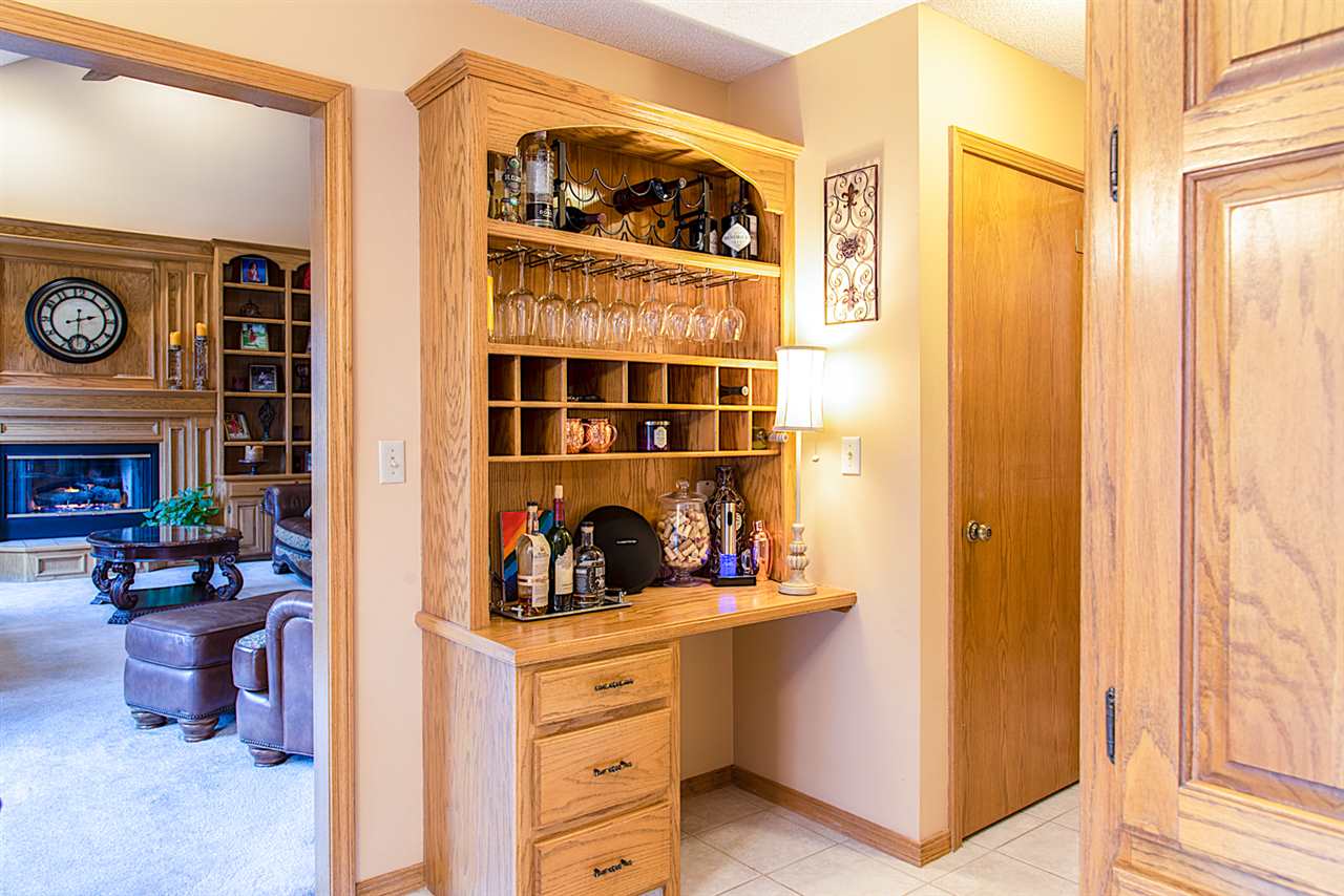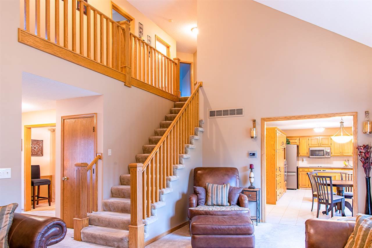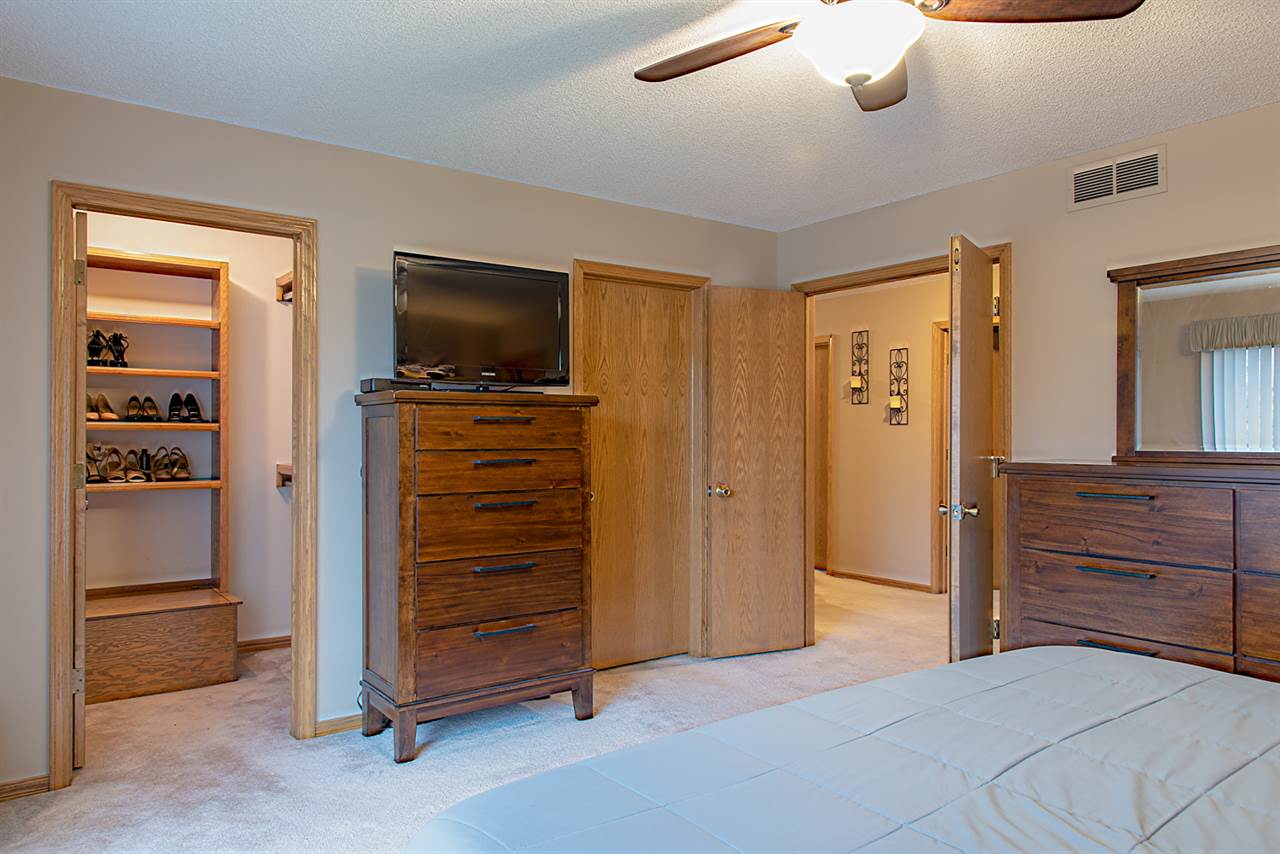 - Description: Just beyond the COVERED FRONT PORCH, your foyer greets you with a formal dining room to one side, and home office (or formal living room) to the other. Come on in to your spacious living room which offers vaulted ceiling open to the upper-level, built-ins, fireplace, and a wall of windows which offers a peaceful VIEW OF THE LAKE and walking path. There is a guest powder room, eating space in the kitchen - along with stainless appliances, including a new dishwasher - and solid surface countertops. MAIN FLOOR LAUNDRY. On the upper level is the master bedroom with double closets, AND large en suite master bath. Three additional bedrooms and a full bath (with double vanity) finishes off the upper level. Basement features bedroom number five (currently being used as a home gym) and third full bath, along with a large family room, ample storage, and workshop with cedar closet. Outside you'll find a large deck - some of which is partially covered by a pergola, fenced yard, and a gate to the walking path to neighborhood lake, pool, and clubhouse! Newer roof, HVAC, & exterior paint; and some windows have been replaced. Show all description