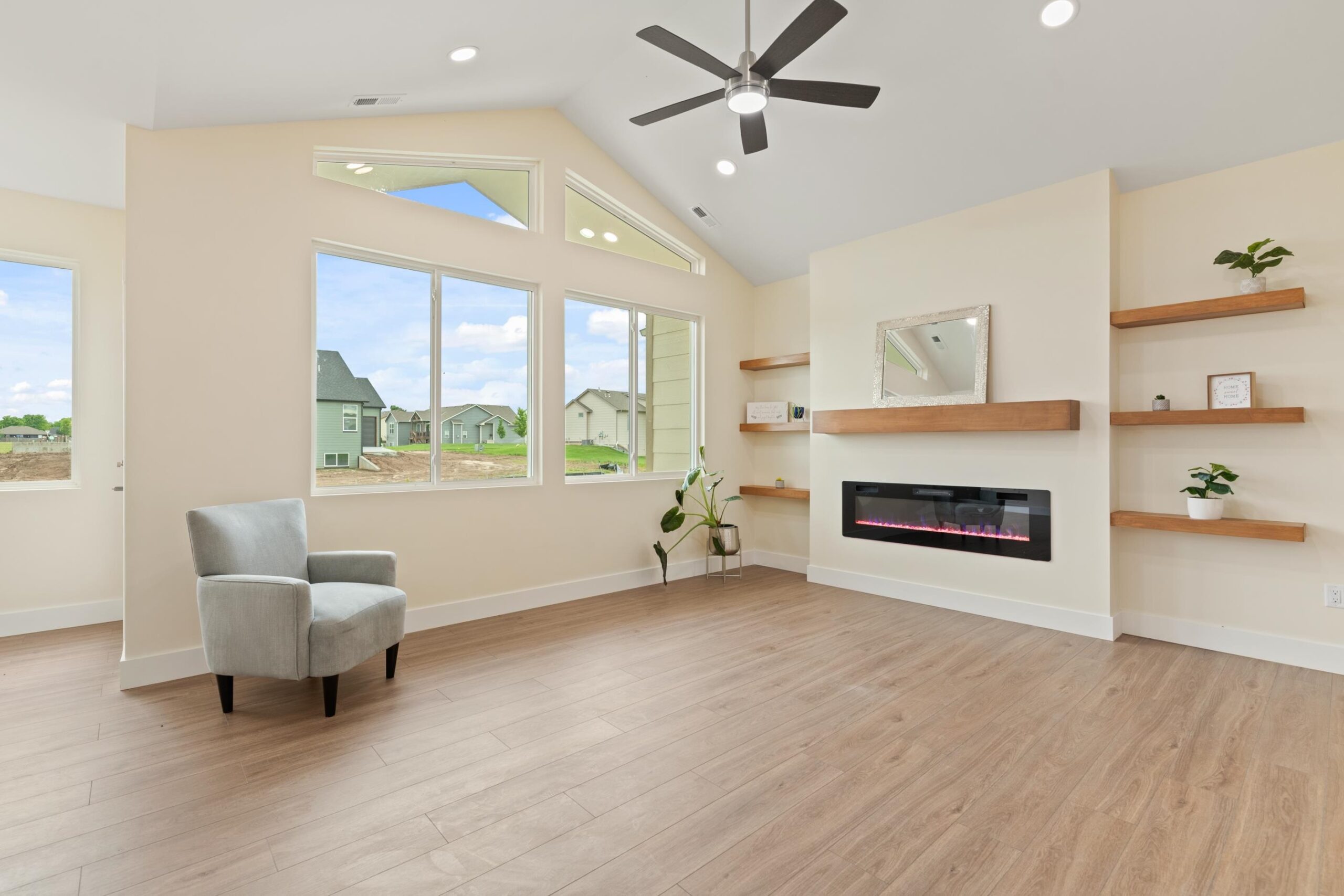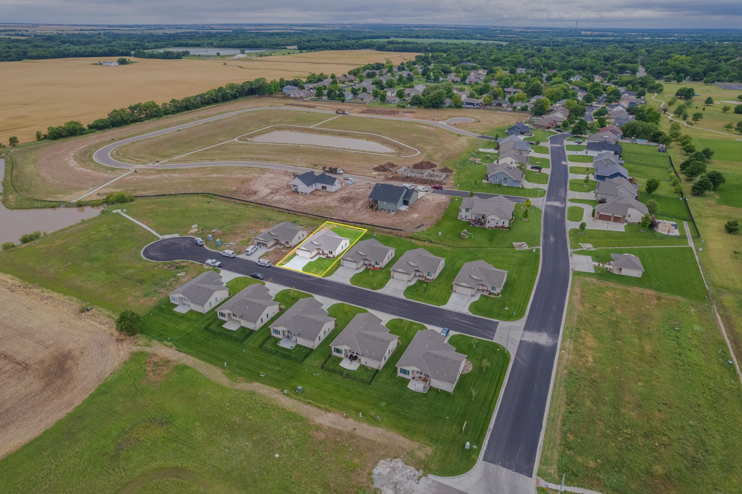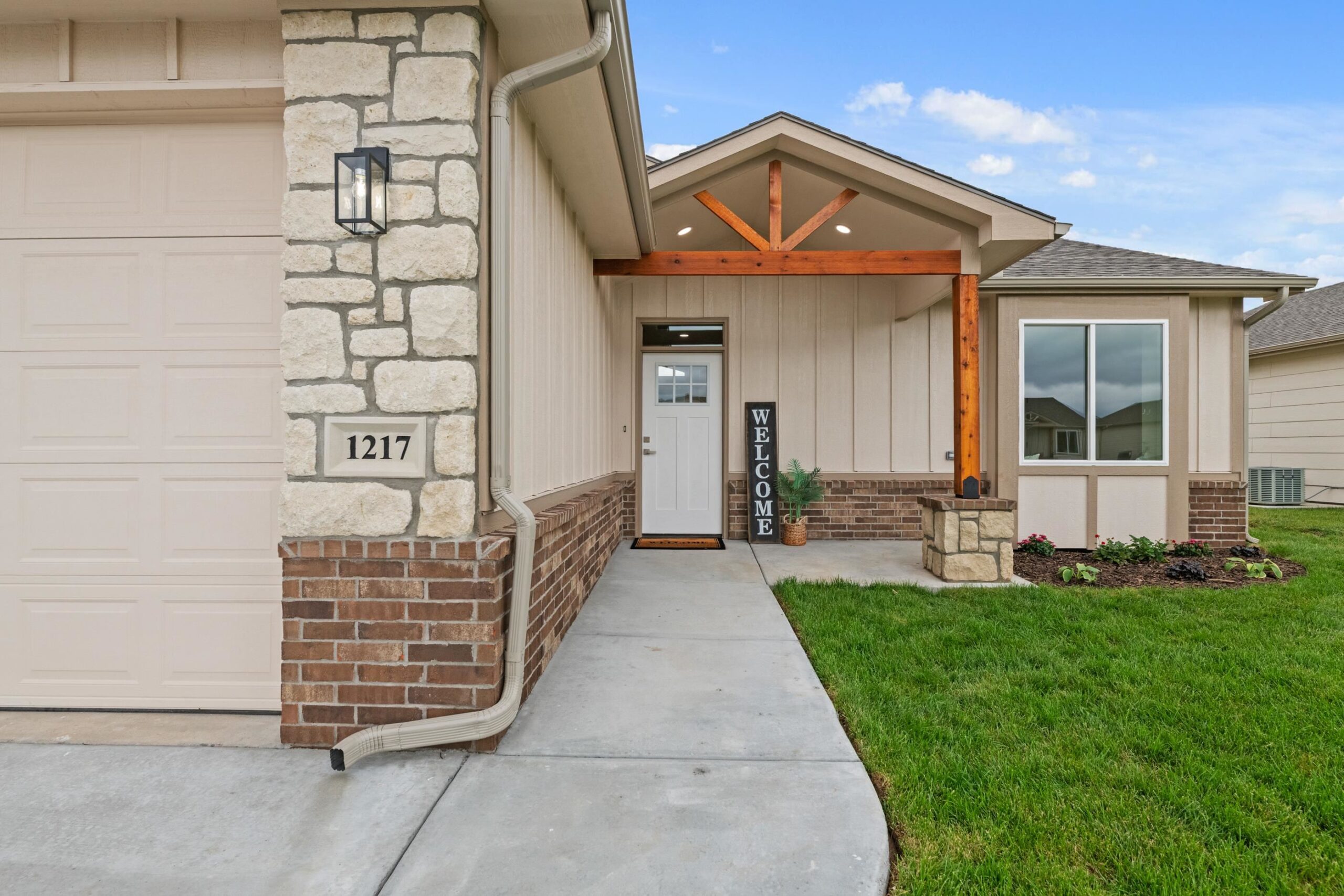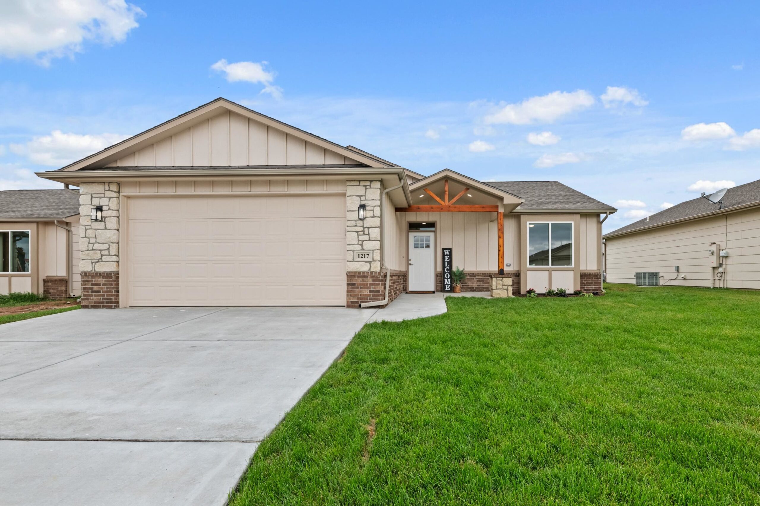 - Description: Step into effortless living with this brand-new 2-bedroom, 2-bath home that pairs clean, modern design with true Kansas practicality. The bright, open kitchen features stunning quartz countertops and plenty of prep space — ideal for weekday meals or hosting friends — while durable luxury vinyl plank runs throughout for beautiful, low-maintenance floors. Unwind in the spacious primary suite with a private ensuite that feels quietly luxurious. Need extra room for projects or seasonal storage? The climate-controlled garage gives you year-round workshop space and comfortable entertaining options. And because this is Kansas, a concrete storm shelter off the garage adds a critical layer of safety and peace of mind. Outside, maintenance-free exterior means more weekends relaxing and less yardwork. Nestled in a peaceful small town, you’ll enjoy the calm and community while still being only a short drive from big-city shopping, dining, and services. Perfect for anyone seeking comfort, style, and ease of living — this home checks all the boxes. Show all description