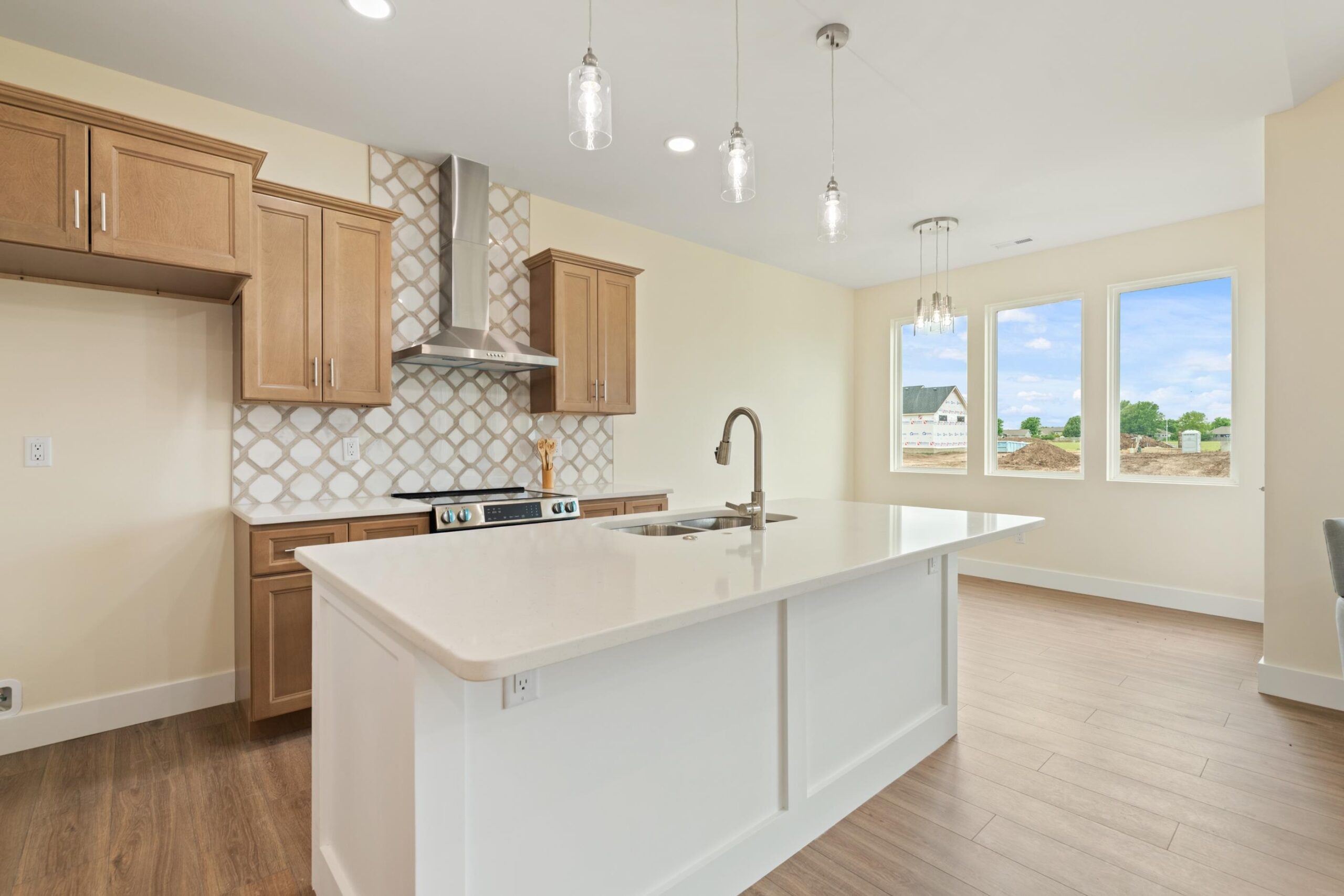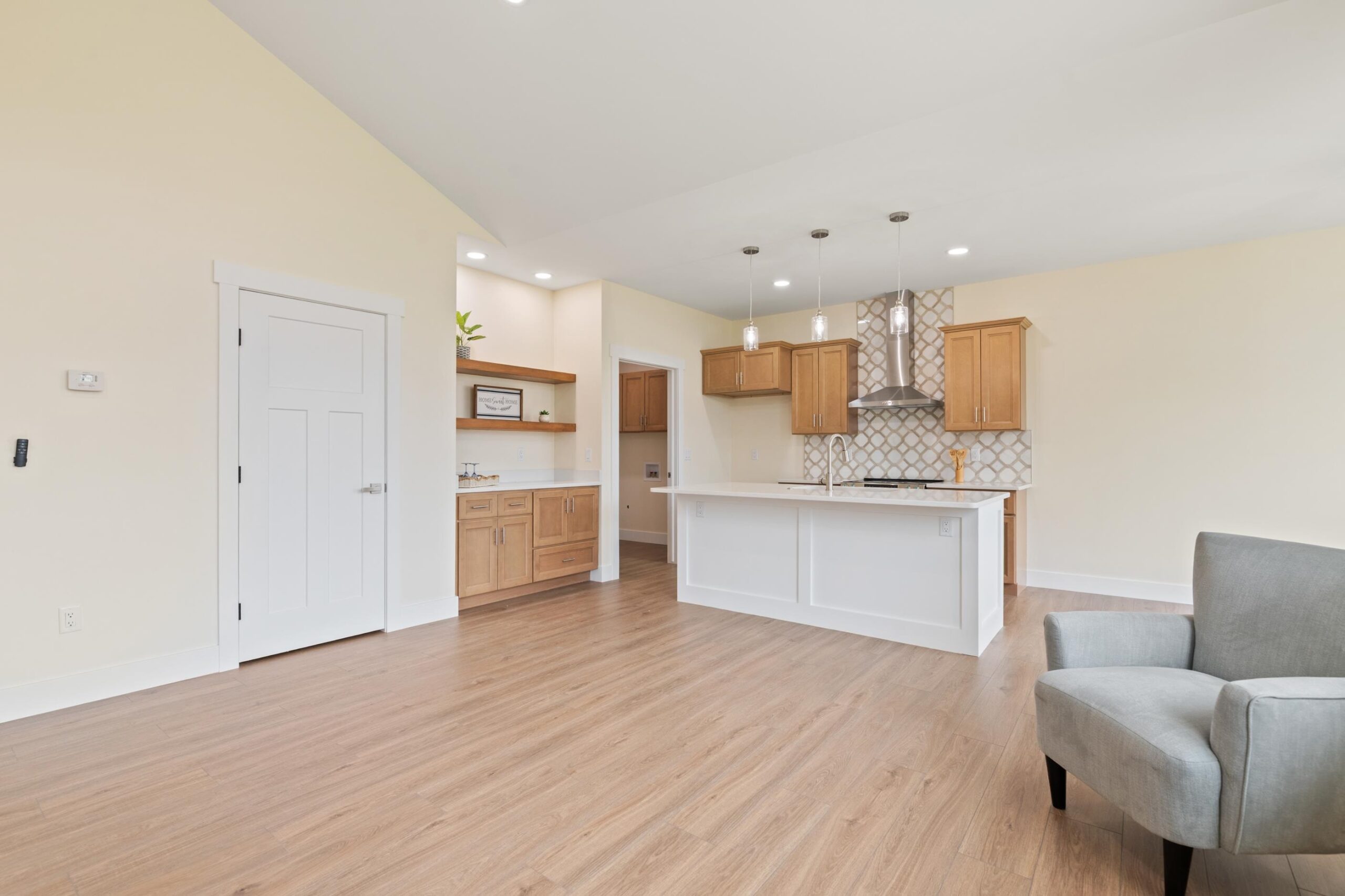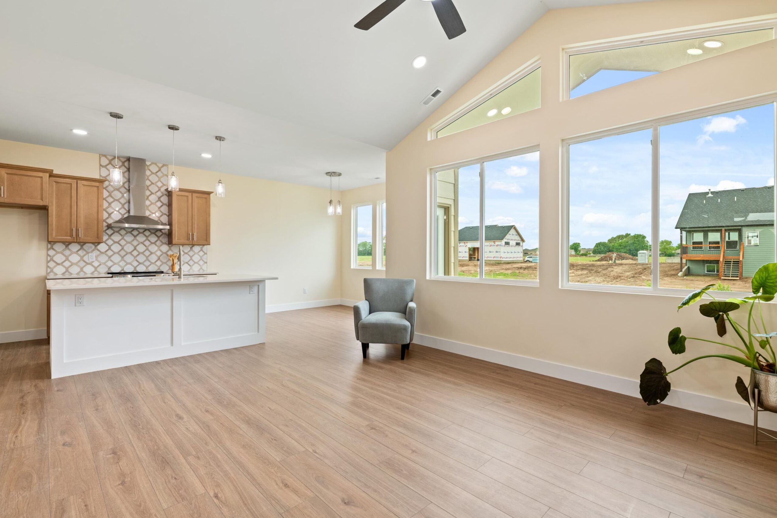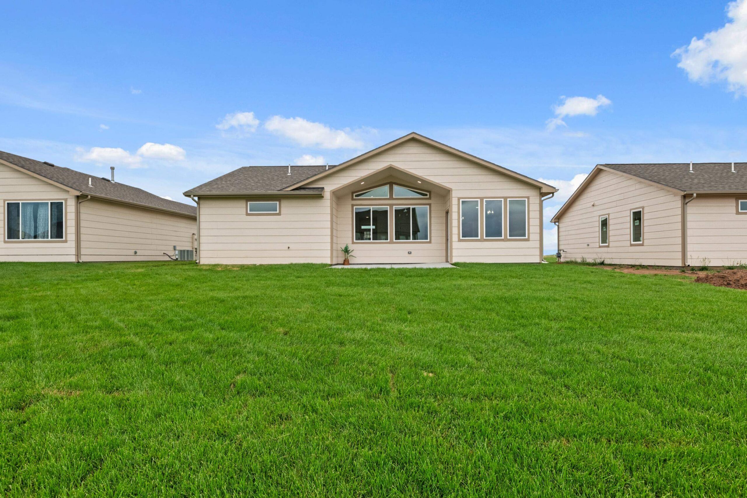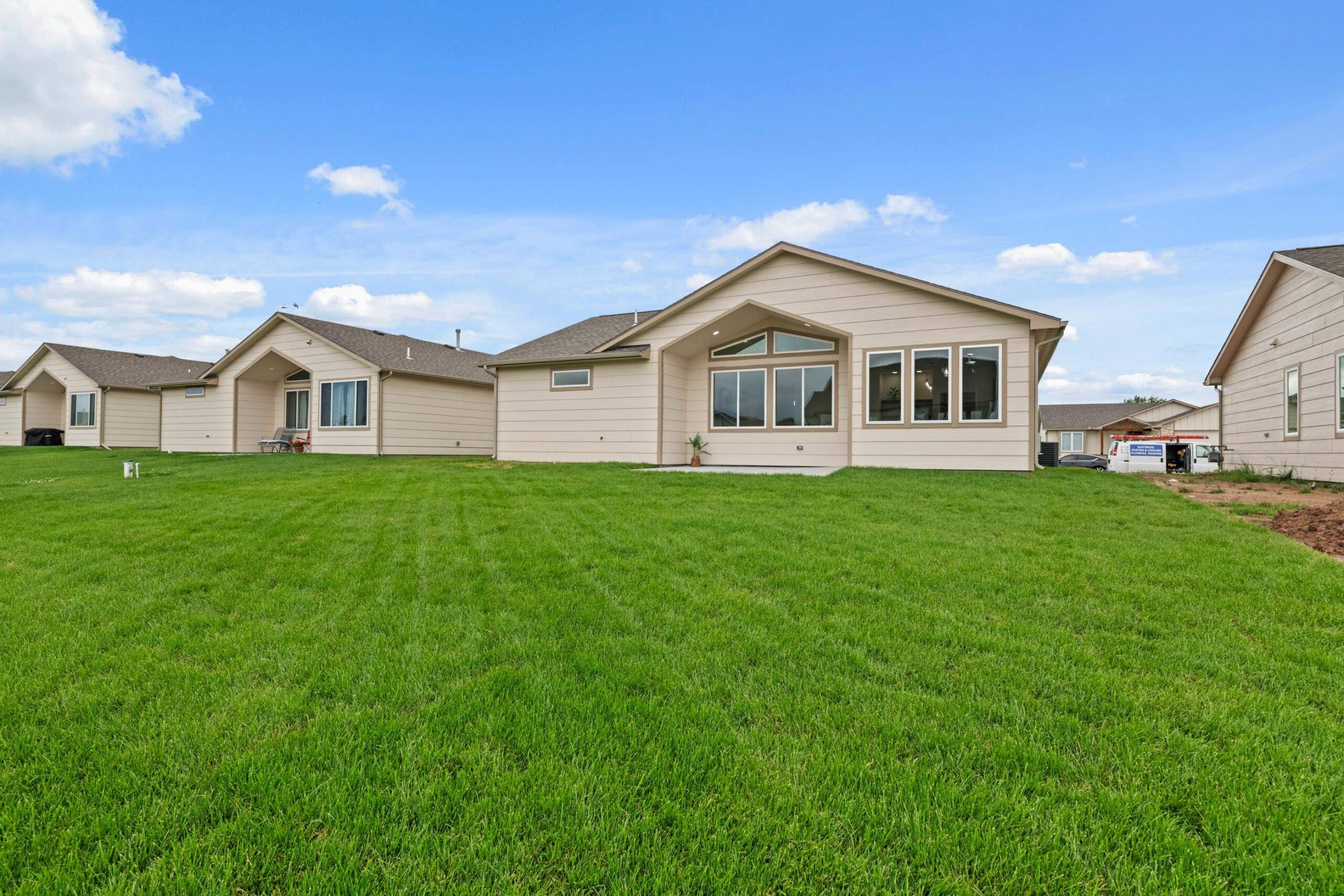 - Description: Step into effortless living with this brand-new 2-bedroom, 2-bath home that pairs clean, modern design with true Kansas practicality. The bright, open kitchen features stunning quartz countertops and plenty of prep space — ideal for weekday meals or hosting friends — while durable luxury vinyl plank runs throughout for beautiful, low-maintenance floors. Unwind in the spacious primary suite with a private ensuite that feels quietly luxurious. Need extra room for projects or seasonal storage? The climate-controlled garage gives you year-round workshop space and comfortable entertaining options. And because this is Kansas, a concrete storm shelter off the garage adds a critical layer of safety and peace of mind. Outside, maintenance-free exterior means more weekends relaxing and less yardwork. Nestled in a peaceful small town, you’ll enjoy the calm and community while still being only a short drive from big-city shopping, dining, and services. Perfect for anyone seeking comfort, style, and ease of living — this home checks all the boxes. Show all description
