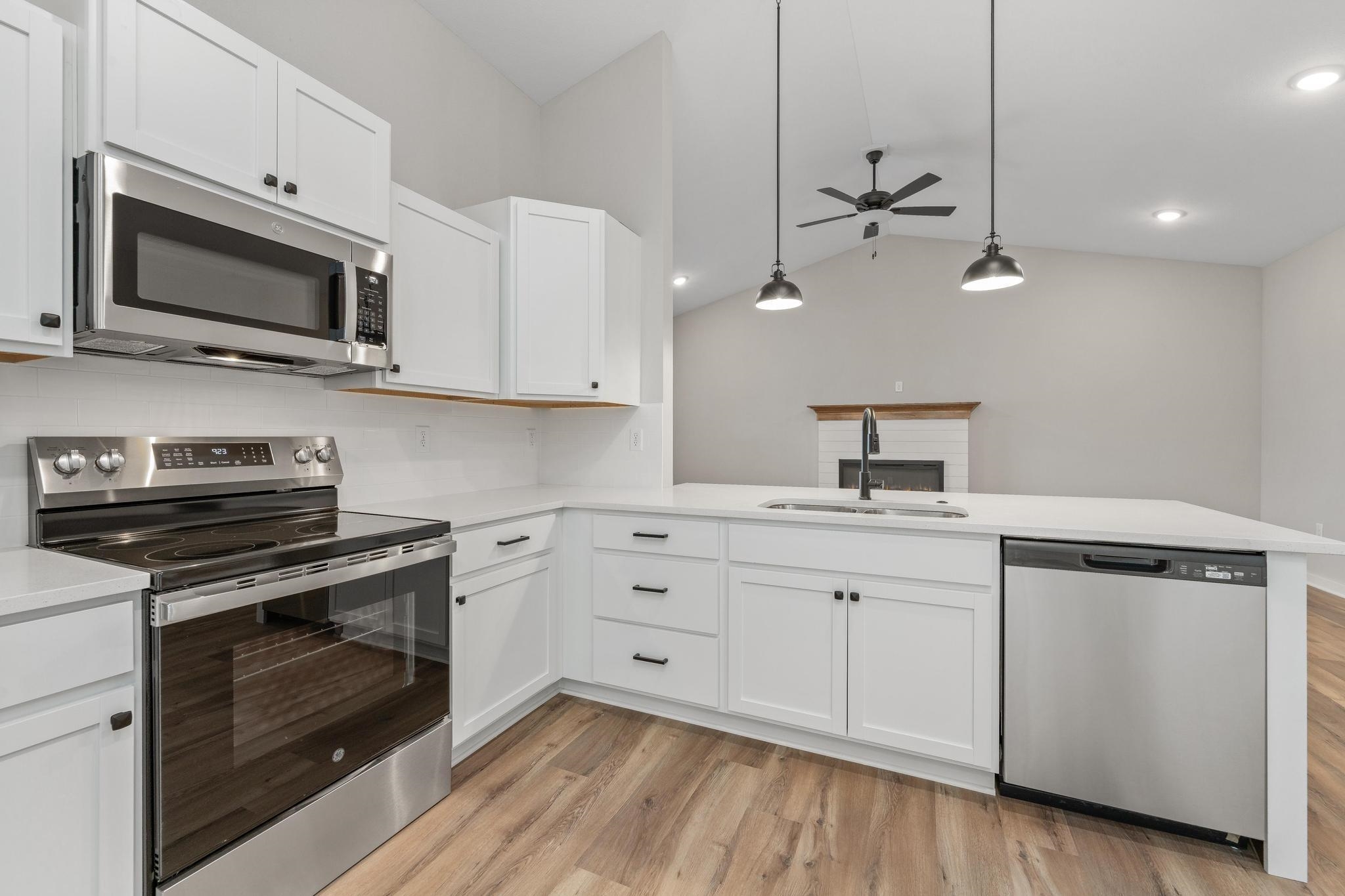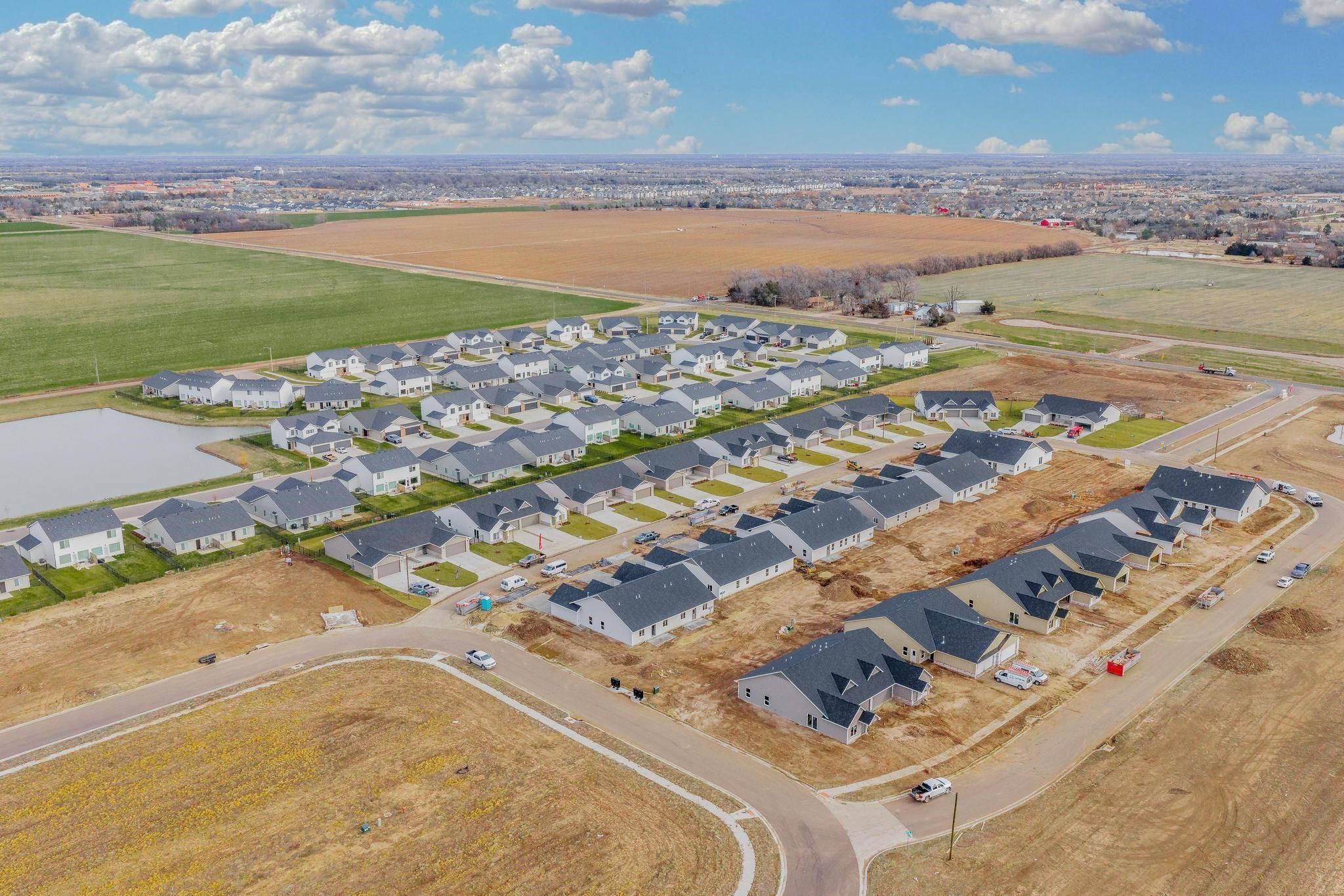 - Description: Brand new twin home featuring "The Sunflower" plan. New Year's Special Deal! -- Seller will pay $5000 towards buyer's closing costs AND pay 1 Full Year of HOA dues..That's a savings of $180 per month for 2026!! Over 1400 sq. ft. with 3 bedrooms, 2 baths and a 2-car garage per side. Spacious living room with vaulted ceilings, and an electric fireplace in the living room. The modern kitchen offers a large eating bar with quartz countertops, stainless steel appliances, a pantry, and an adjacent dining area—perfect for entertaining. The primary suite boasts a walk-in closet, double vanities with quartz countertops, and a walk-in shower. Step outside to enjoy your private 6x8 concrete patio and fully fenced yard, complete with a sprinkler system. The attached garage includes a convenient EV charger. An HOA is currently being established and will cover lawn mowing, irrigation, trash service, and access to a community dog park—all for a low monthly fee. General and special taxes are not fully assessed; specials are estimated at approximately $224/month. Choose from three designed floor plans in The Heights at Maize—a growing community where comfort meets convenience. All information is deemed reliable but not guaranteed. Show all description
